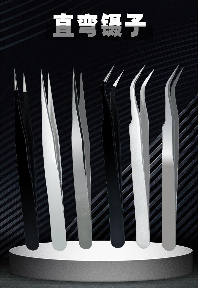 Pinzas multifuncionales con funda de acero inoxidable, pinzas de codo puntiagudas con funda de goma, herramienta de reparación antiestática, clip antideslizante