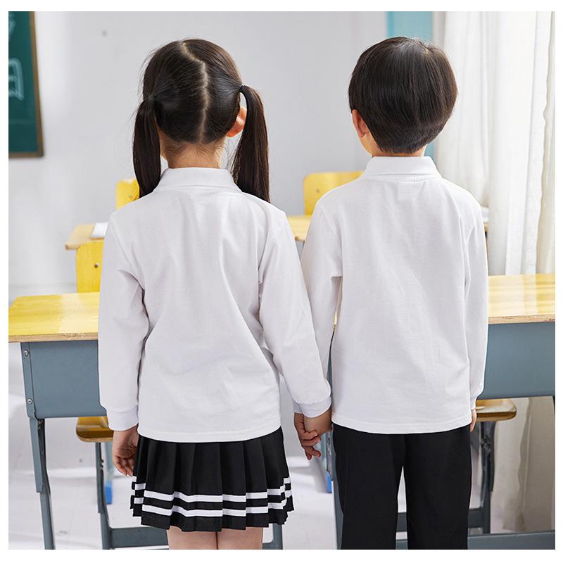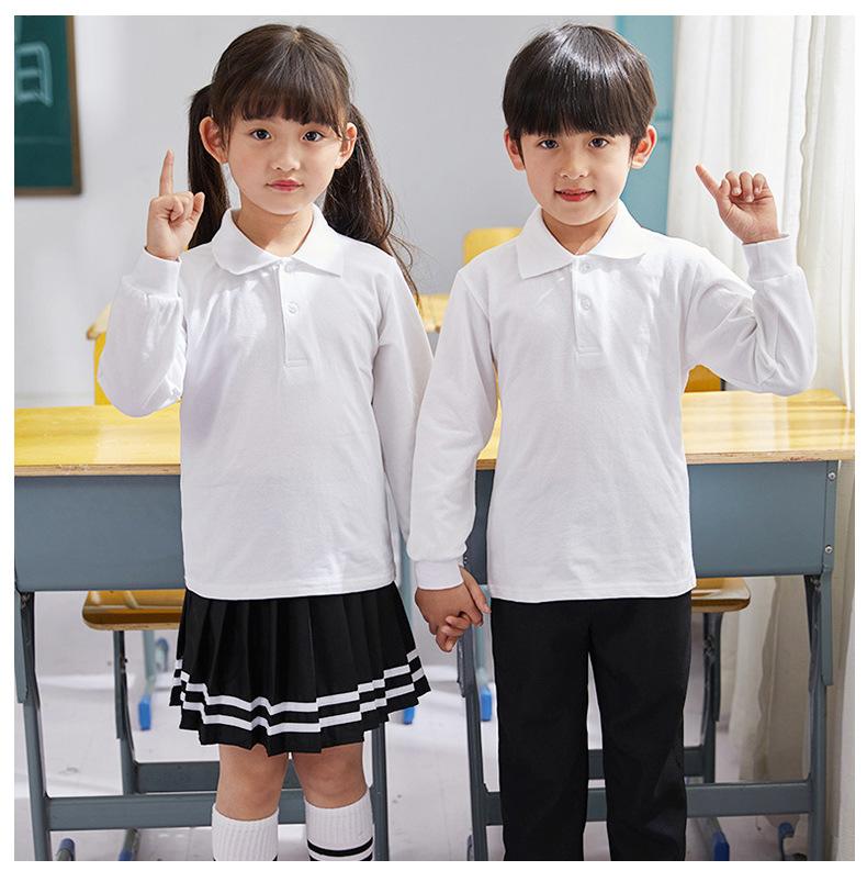 Camisa polo para niño, camiseta de manga larga, uniforme escolar de algodón para niño, ropa de jardín con solapa para niña, camisa blanca de fondo, un envío