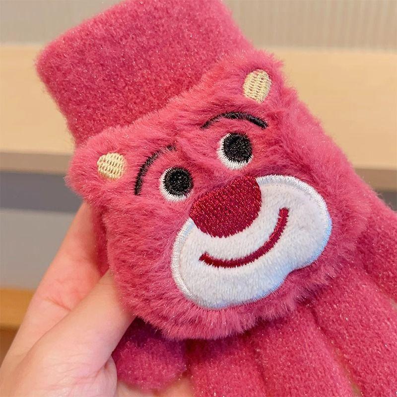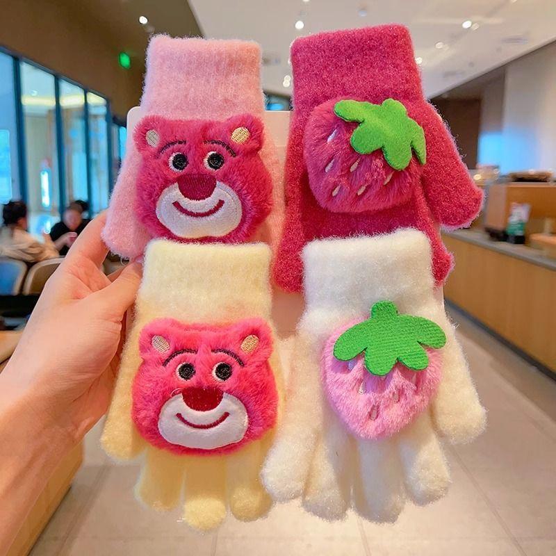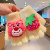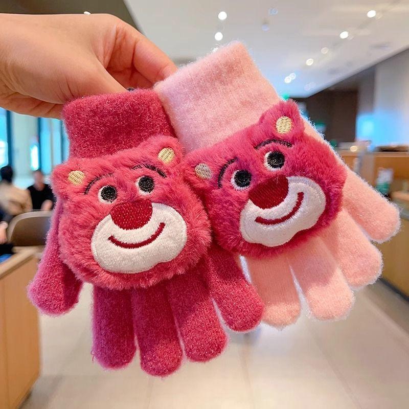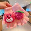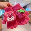 Guantes de oso de fresa con dibujos animados para niños y niñas, guantes gruesos de cinco dedos, guantes cálidos de invierno para bebés