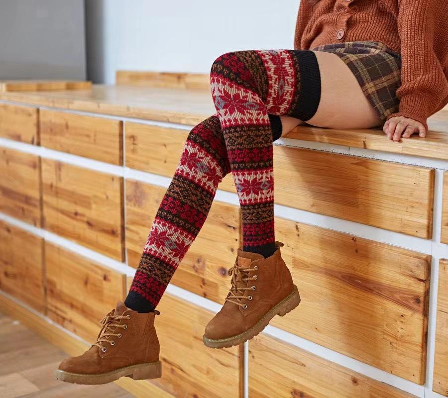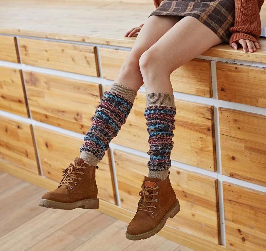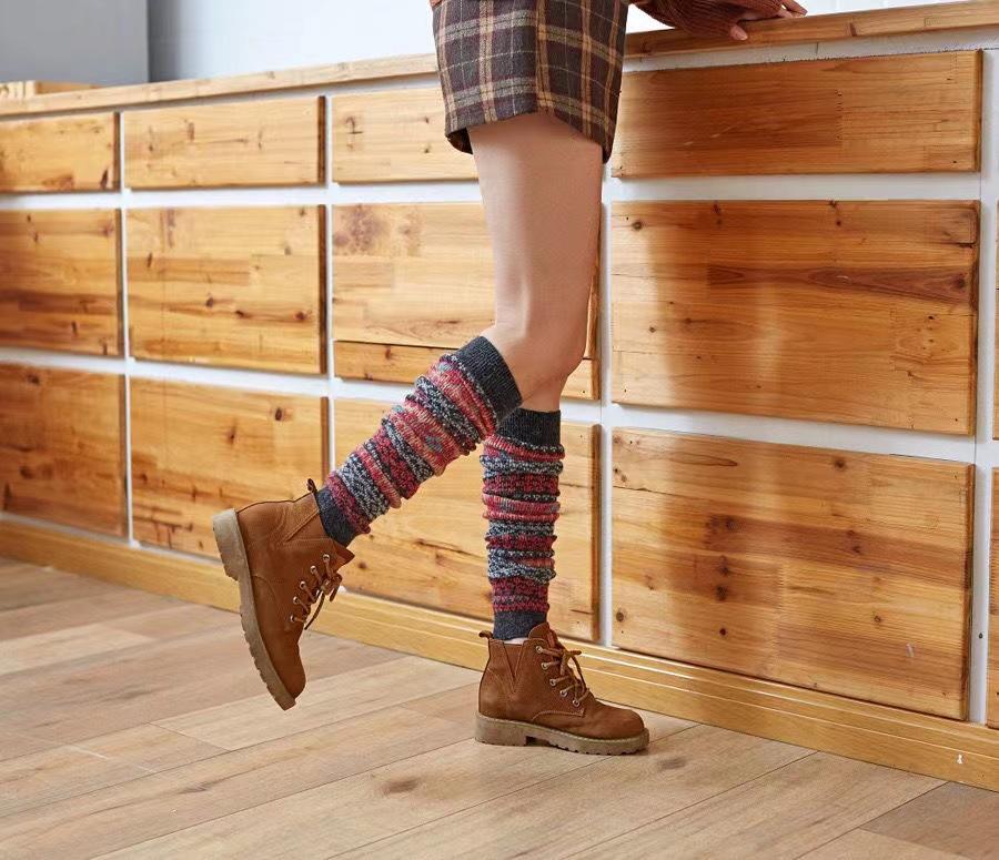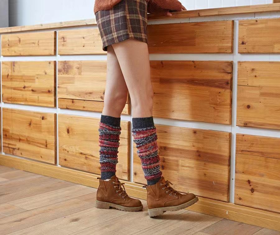 Calcetines hasta la rodilla de lana de conejo para otoño e invierno, calcetines japoneses para las piernas, calcetines hasta la rodilla de tiro alto para mujer, calcetines cuadrados para bailar, ropa exterior