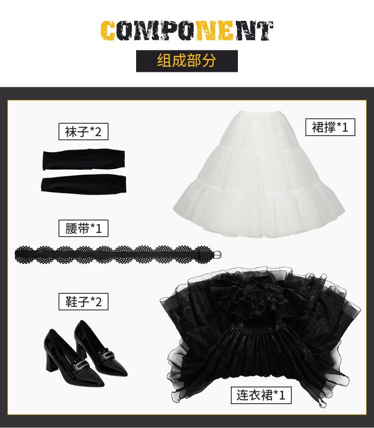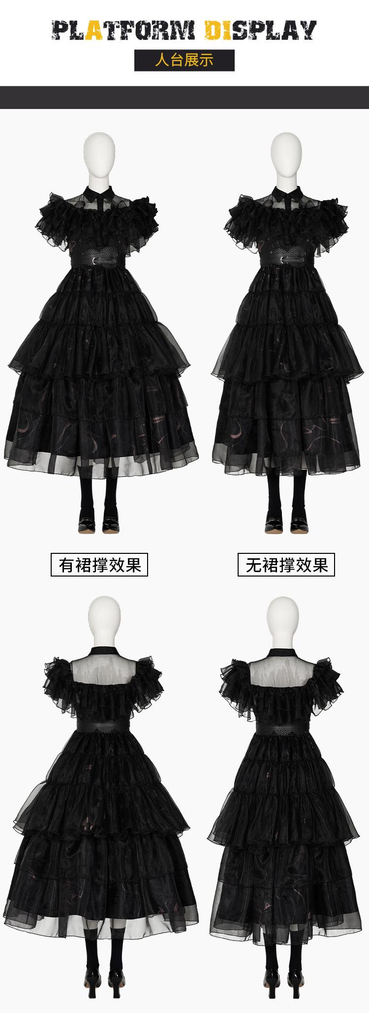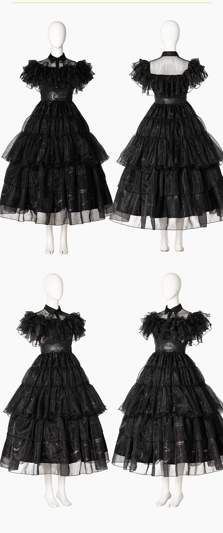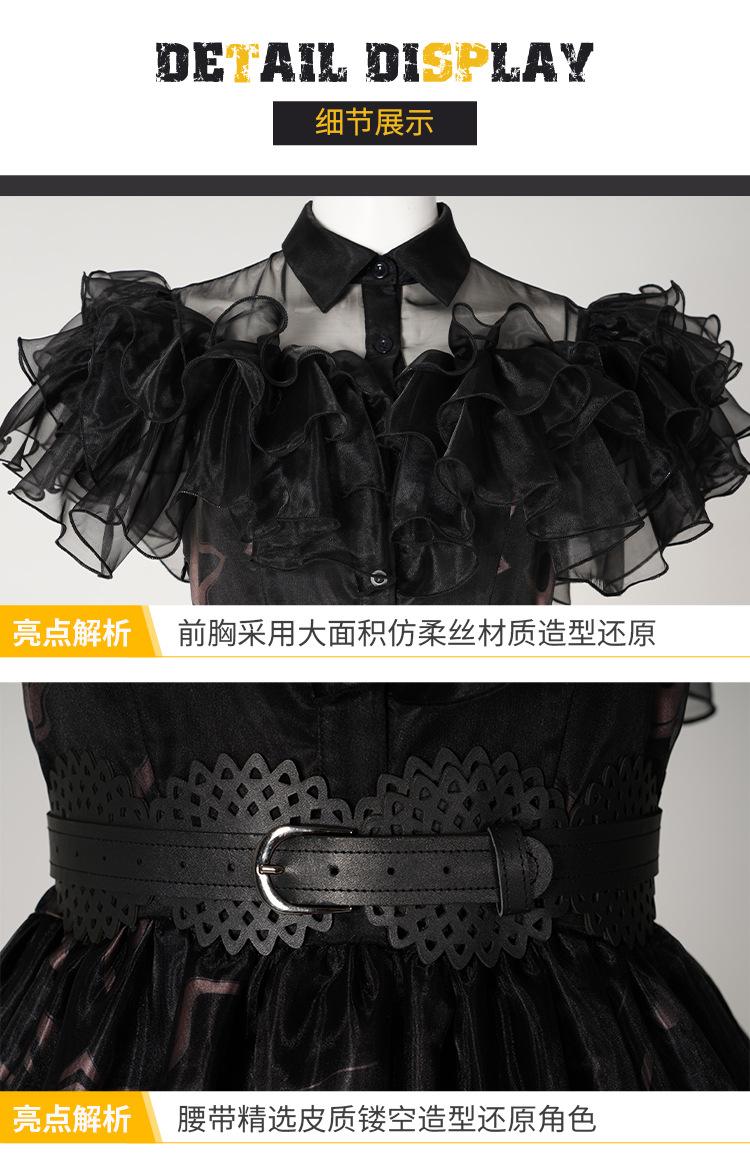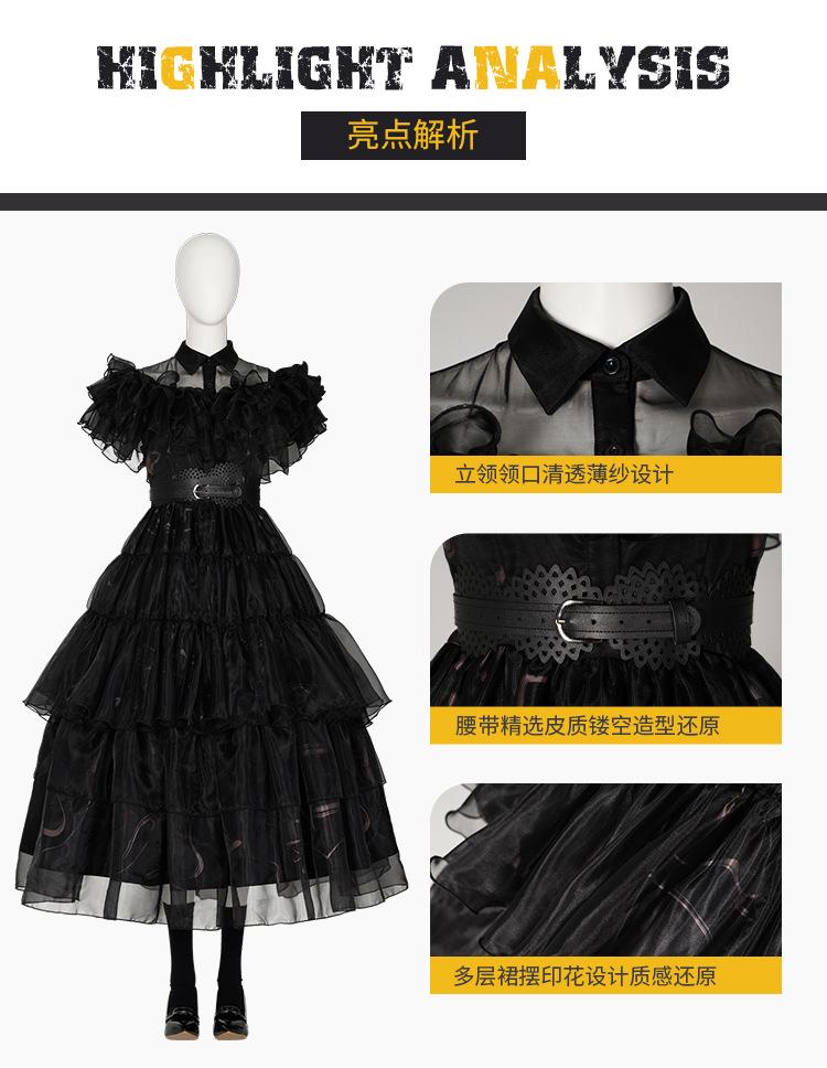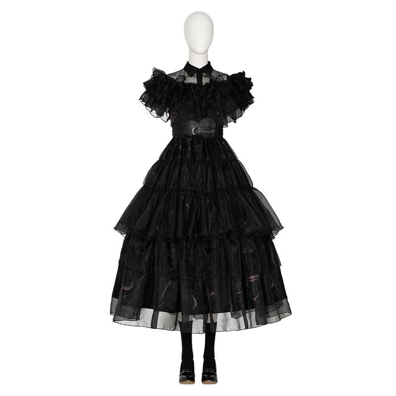 Cosplay de Halloween Vestido Largo Vestido de Gasa Negro Horror Miércoles Uniforme Escolar Cosplay Vestido de Mujer