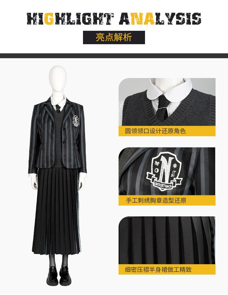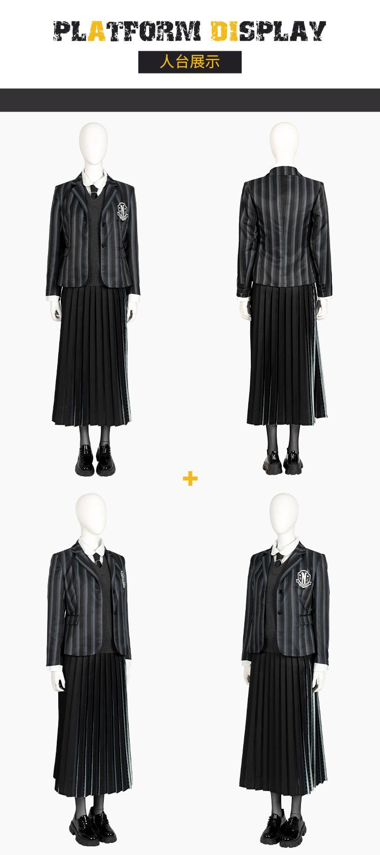 Wednesday school uniform set (full set without shoes and socks), Wednesday dress, Wednesday dress skirt (skirt...