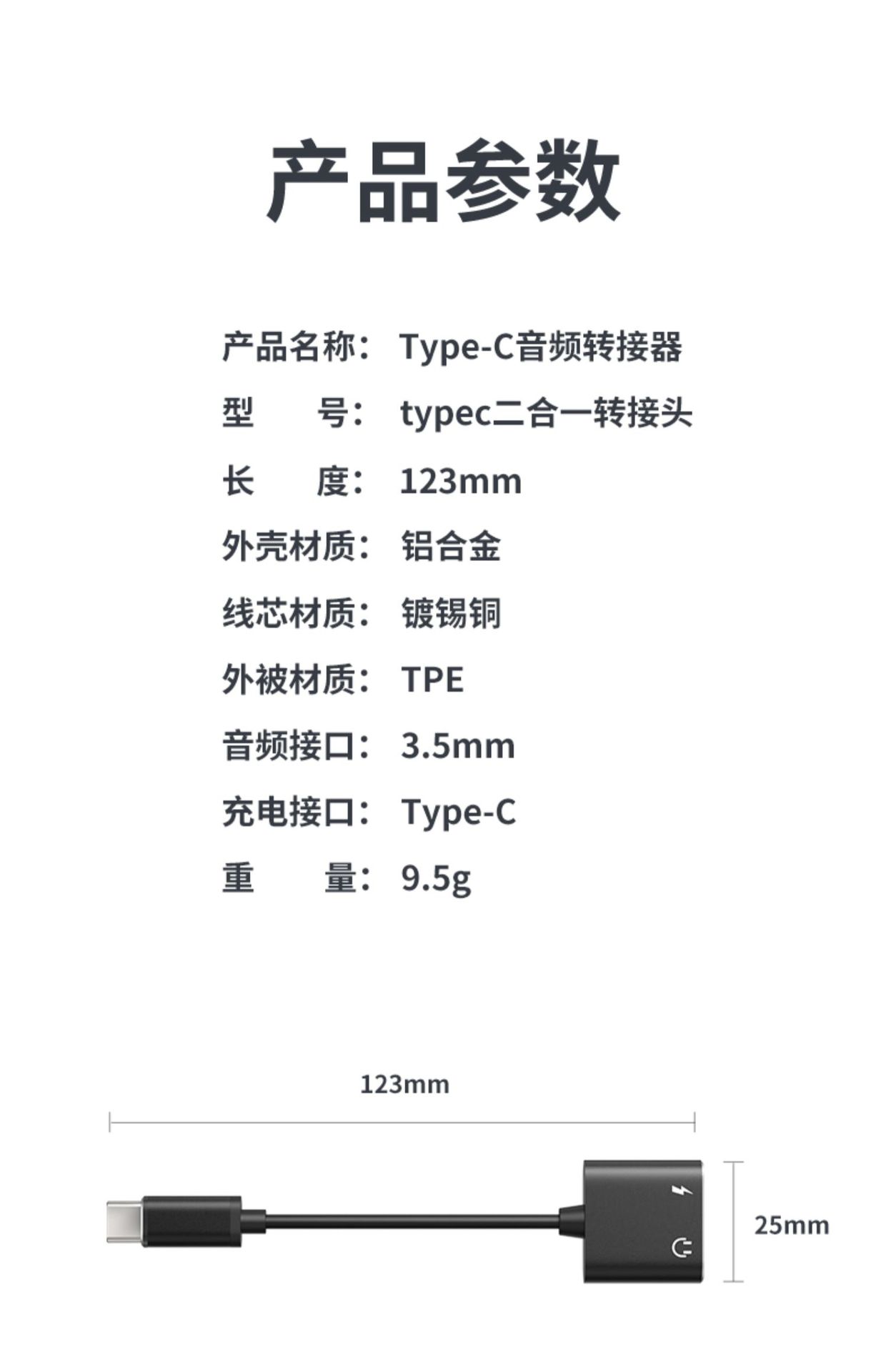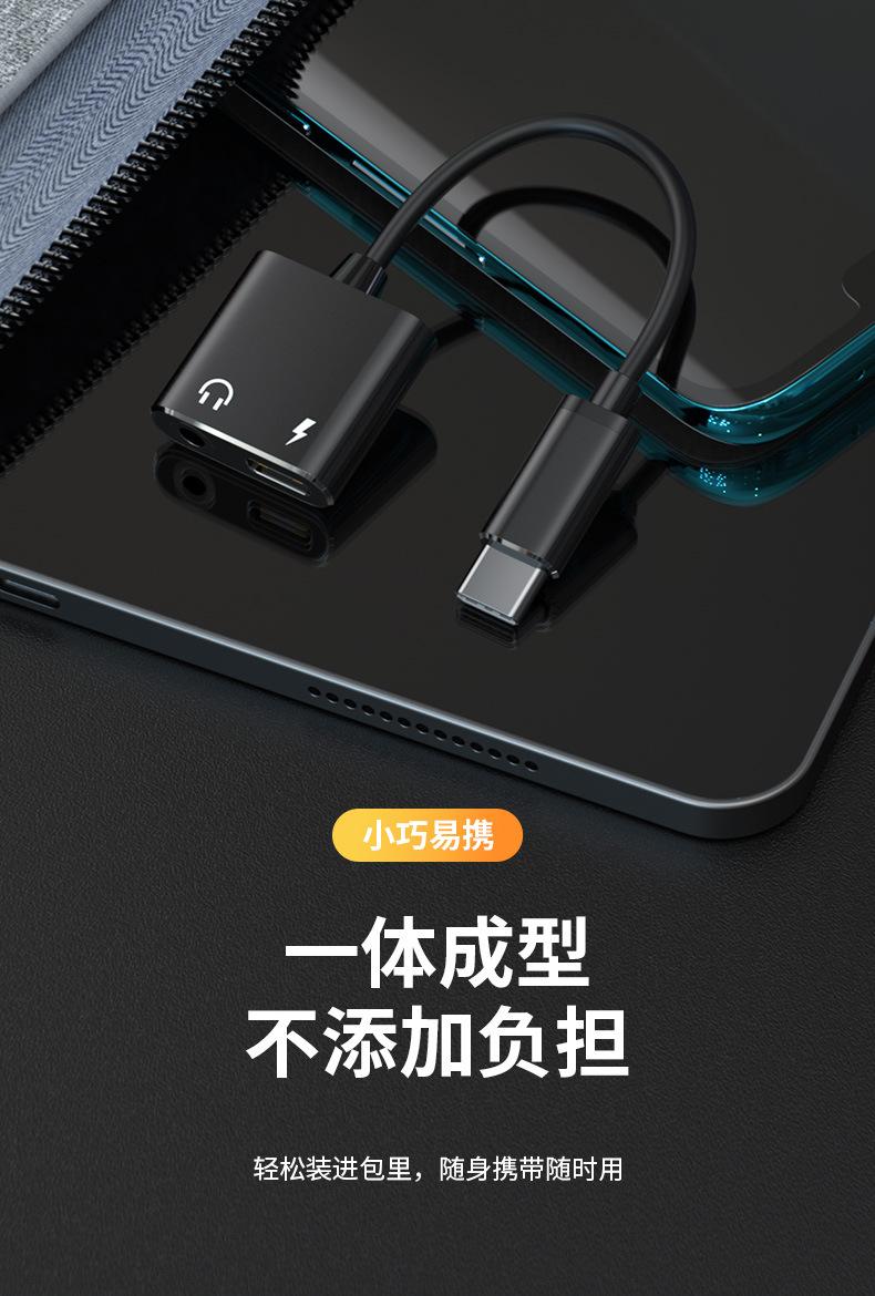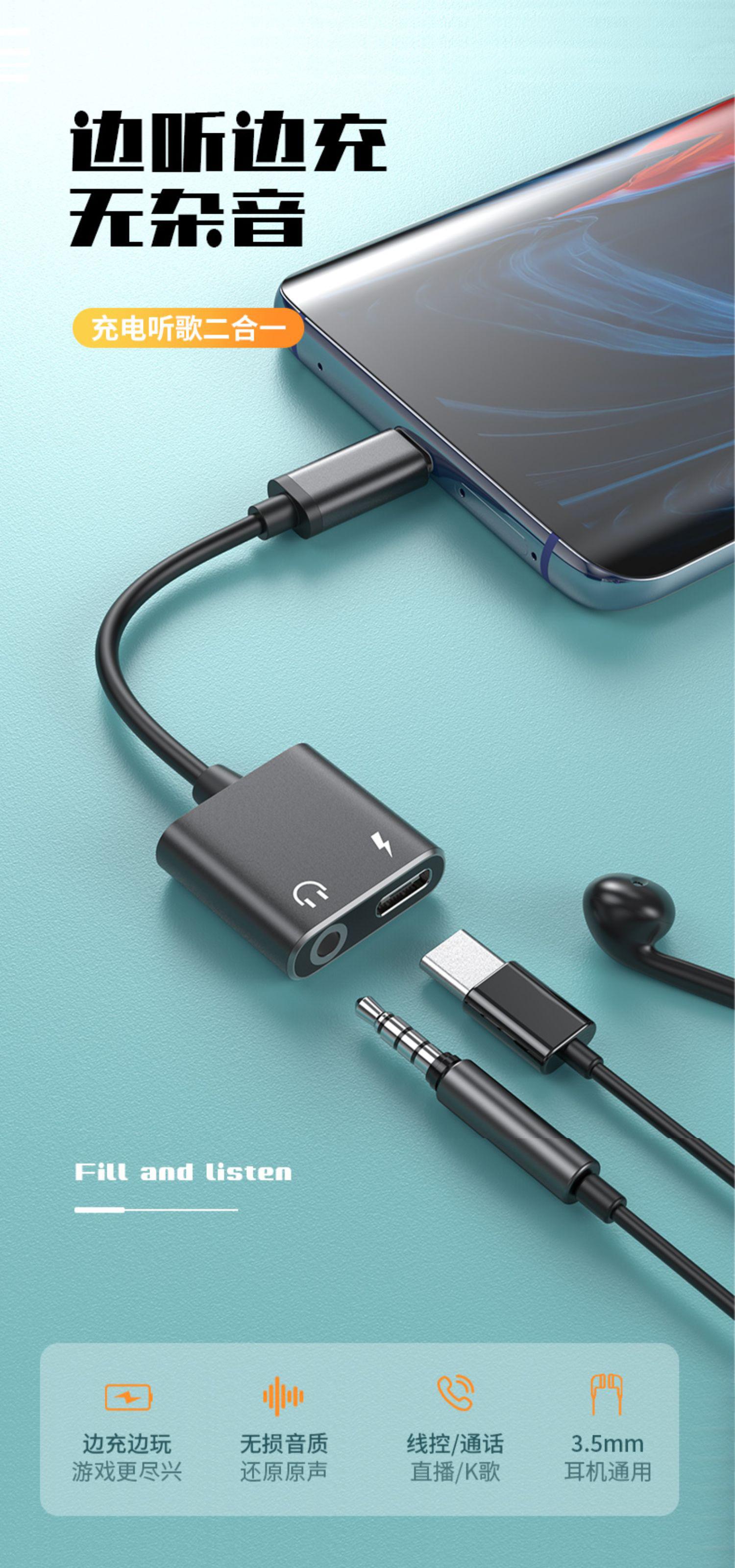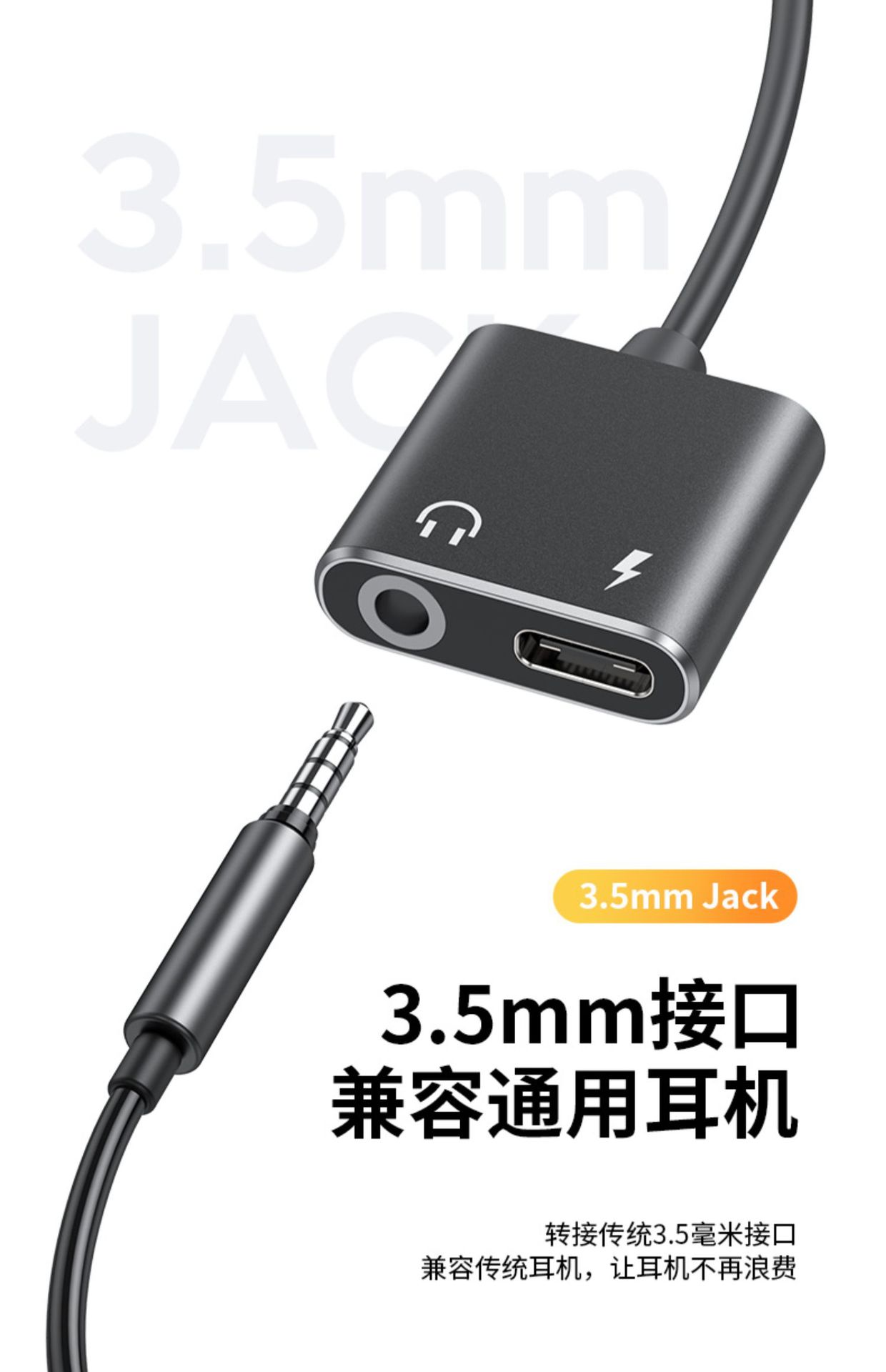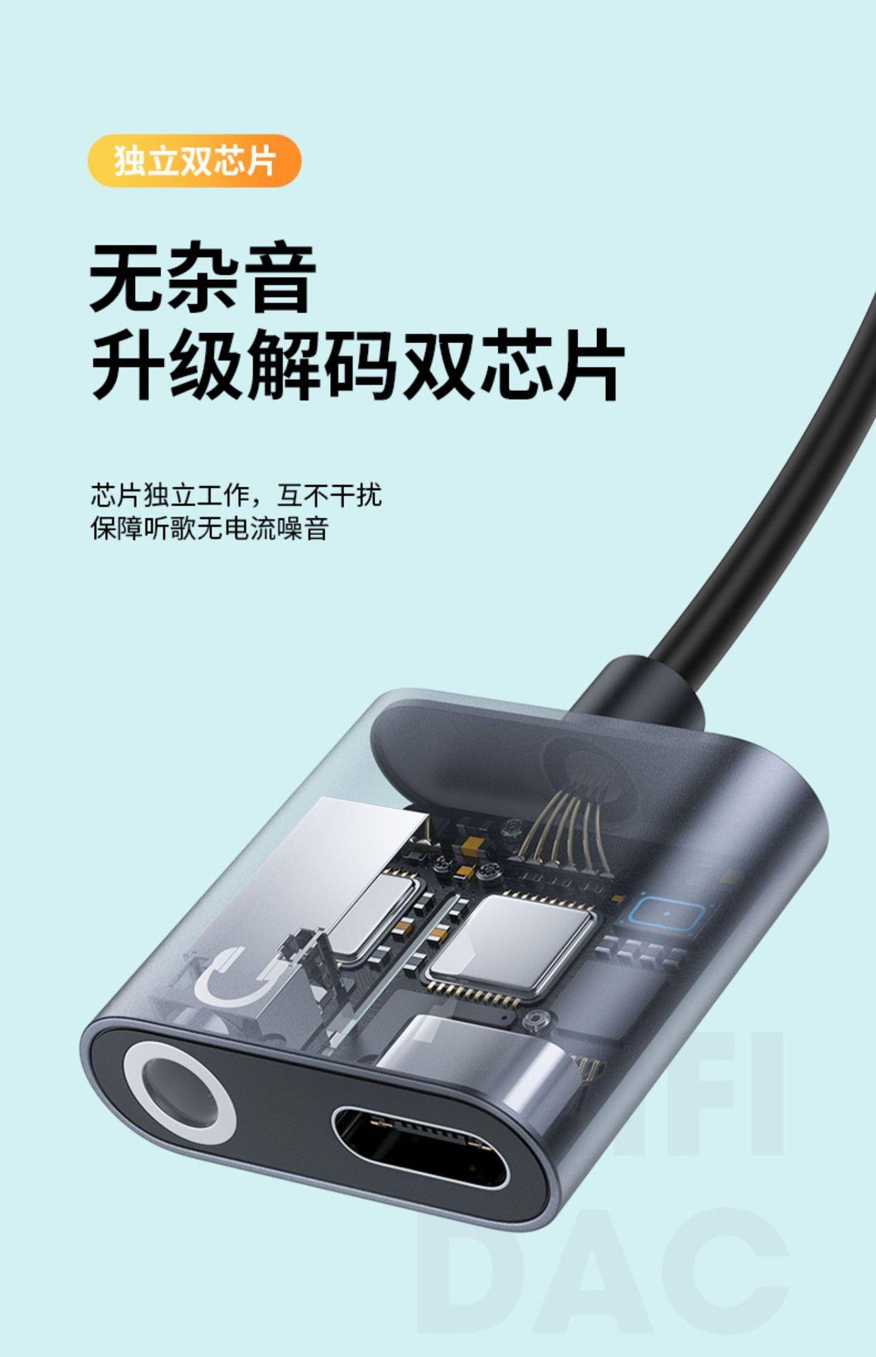 Cable Adaptador de Audio Digital para Teléfono Móvil Tipo C Dos en Uno 3.5 mm para Carga, Escuchar Música Adecuado para Audífonos Apple 15