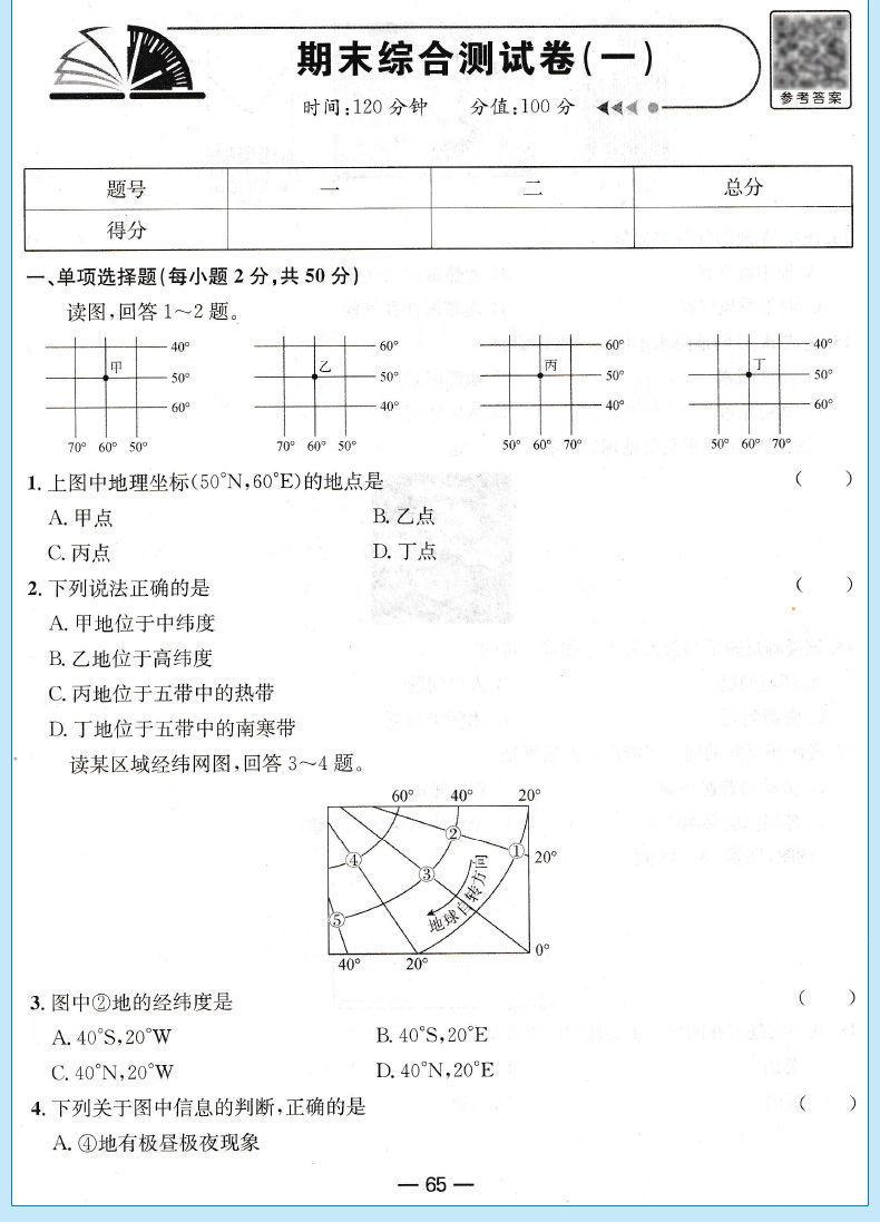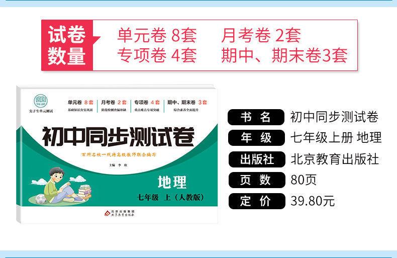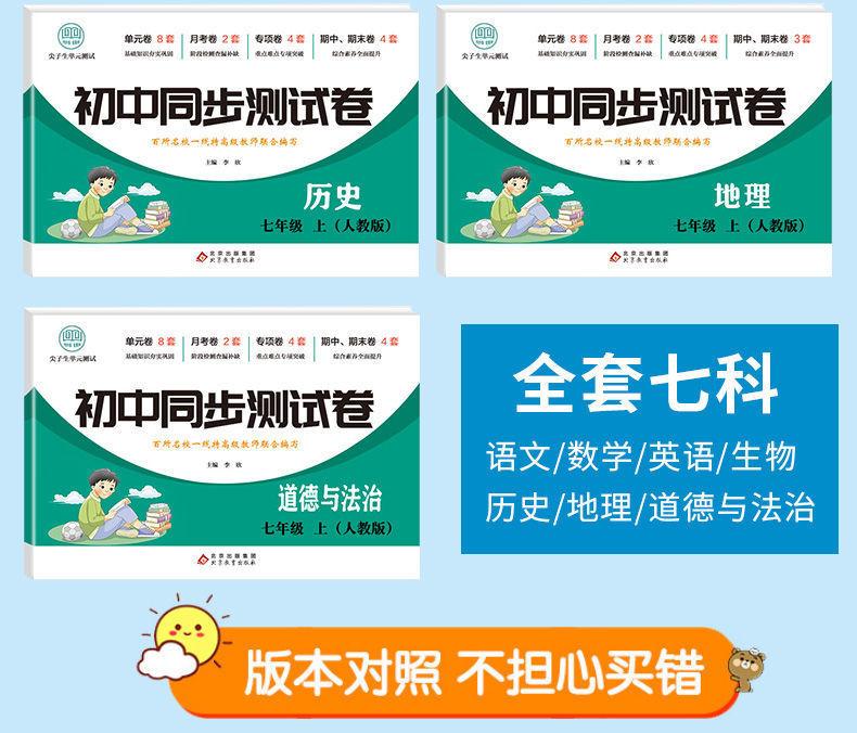 Edición de Educación del Pueblo Matemáticas Chinas Inglés Biogeografía Historia Moral y Estado de Derecho Examen para 7º grado