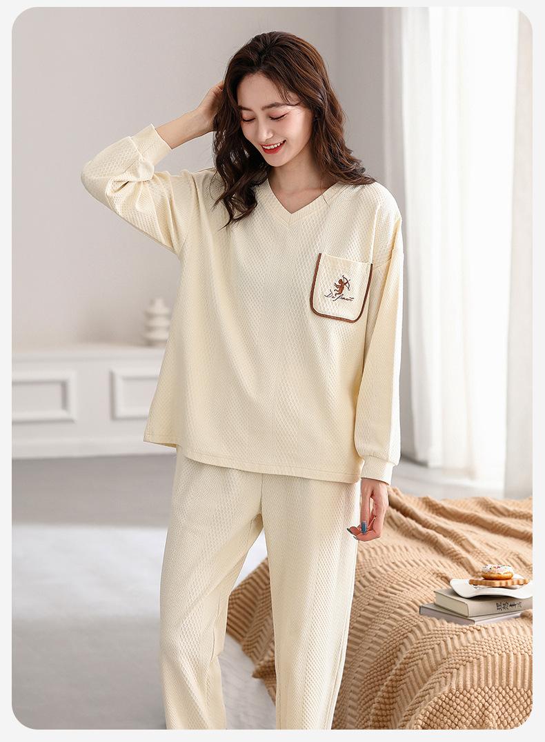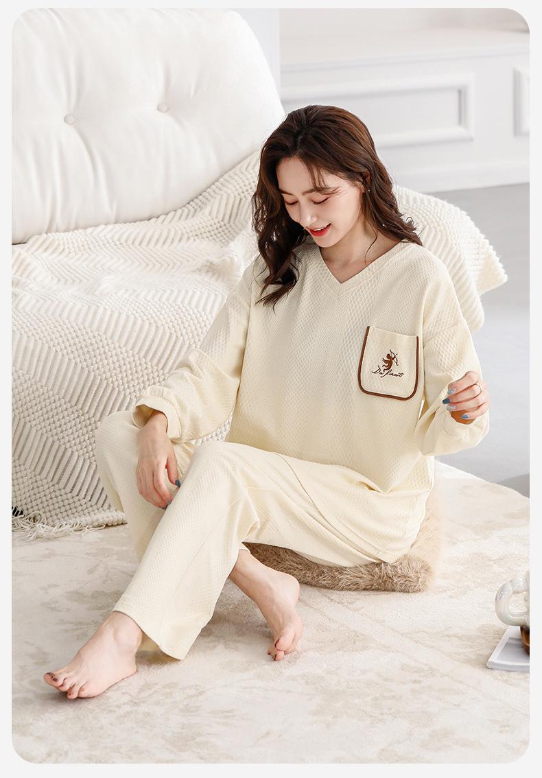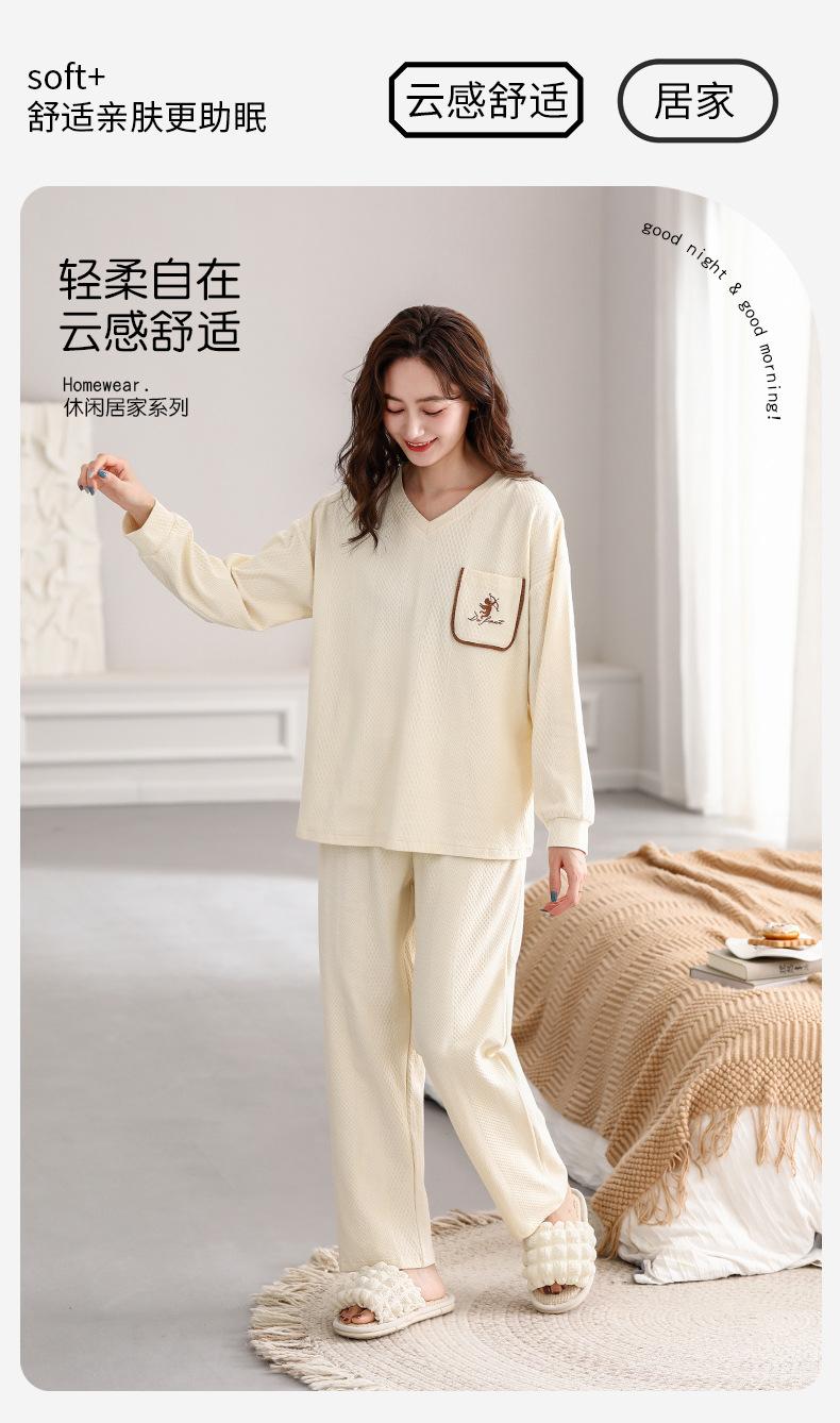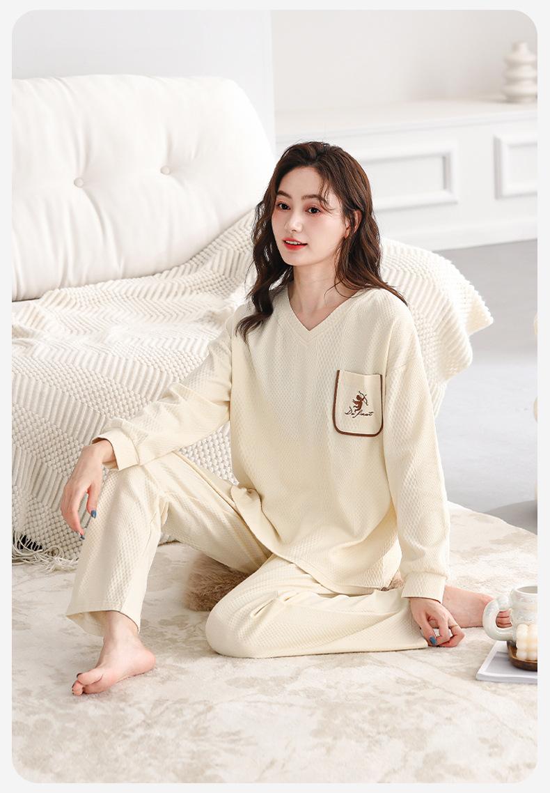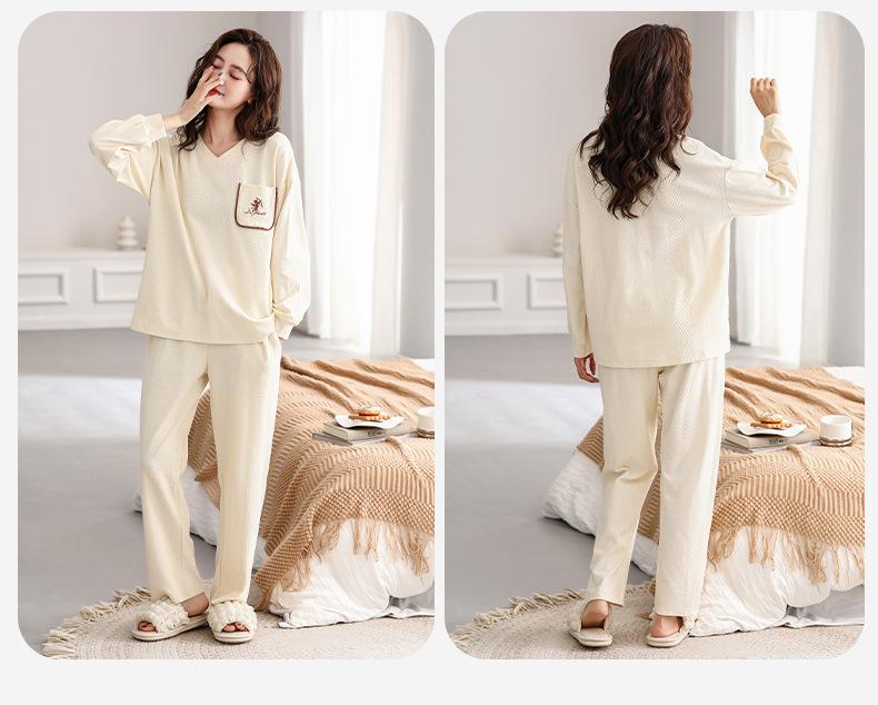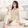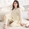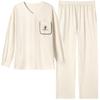 Pijamas de mujer de primavera y otoño de algodón puro, traje de manga larga de primavera y verano para mujer, ropa de hogar al aire libre de alta calidad en beige fino