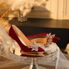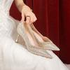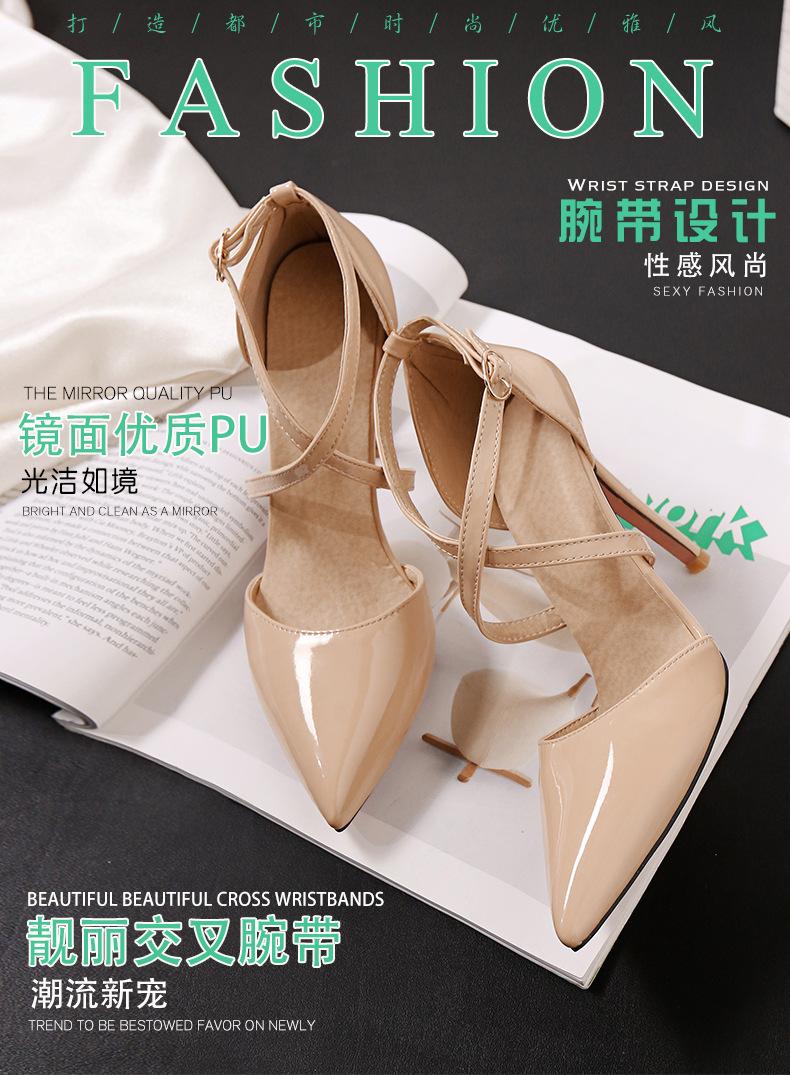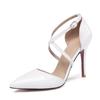 Zapatos de Boda Blancos Tacón de Aguja Correa Cruzada Huecos Novia Dama de Honor Tacones Altos Zapatos de una Capa Cuero Patentado Transfronterizo Talla Súper Grande Zapatos de Mujer