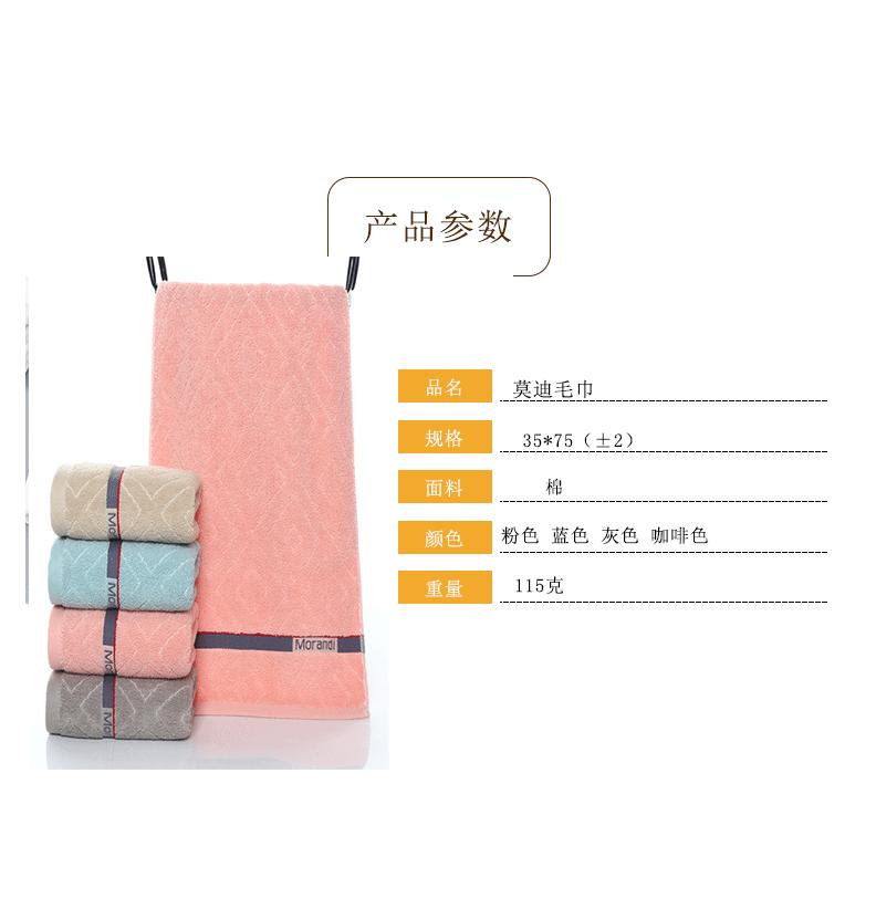 Podemos personalizar el tamaño según los requisitos del cliente, bordar el logotipo según sus necesidades y empaquetarlo según sus necesidades. Contamos con planta de producción propia. El tamaño de la toalla es de 35 x 75 cm (±2), pesa 115 g, tiene 32 hebras por un lado y 14 por el otro, y está disponible en cuatro colores.