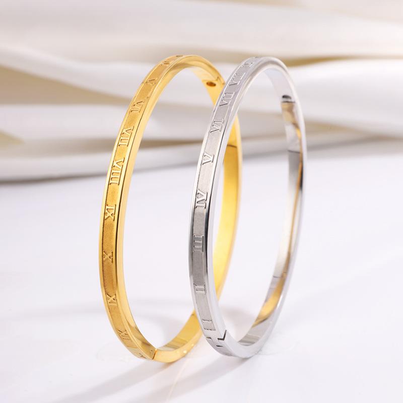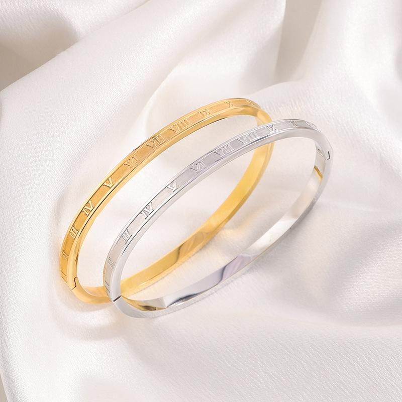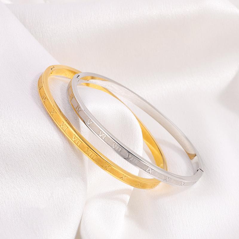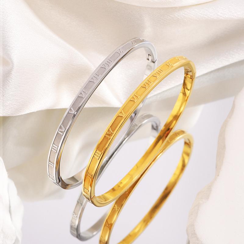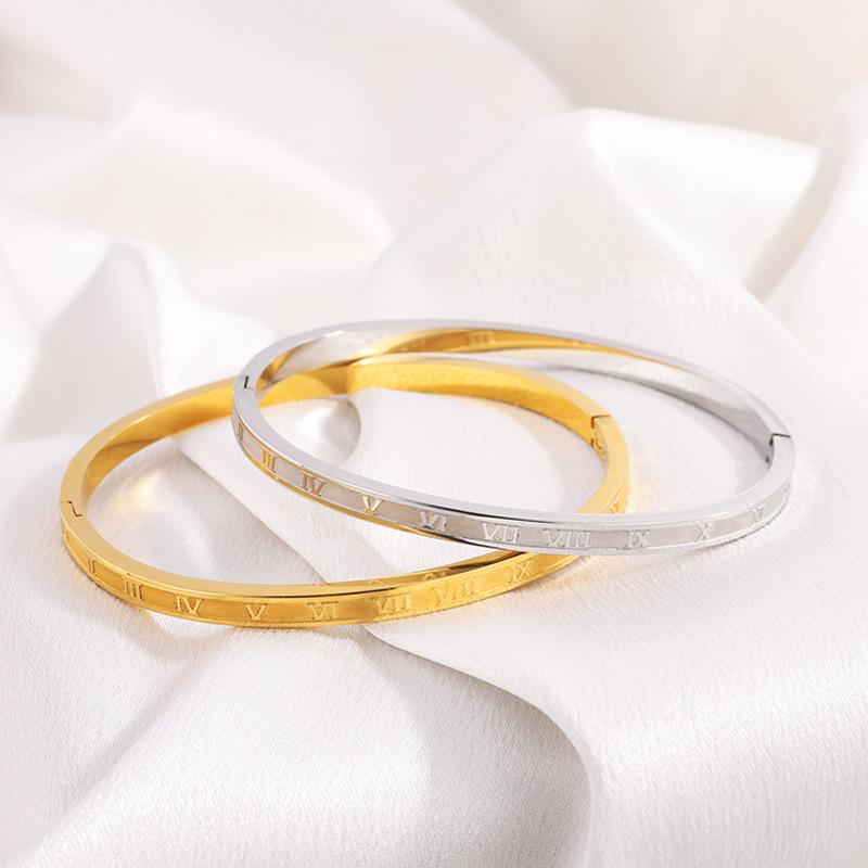 Pulsera de Acero de Titanio Retro Versátil Fina Romana Oro Real de 18K Pulsera de Moda de Alto Nivel para Niña