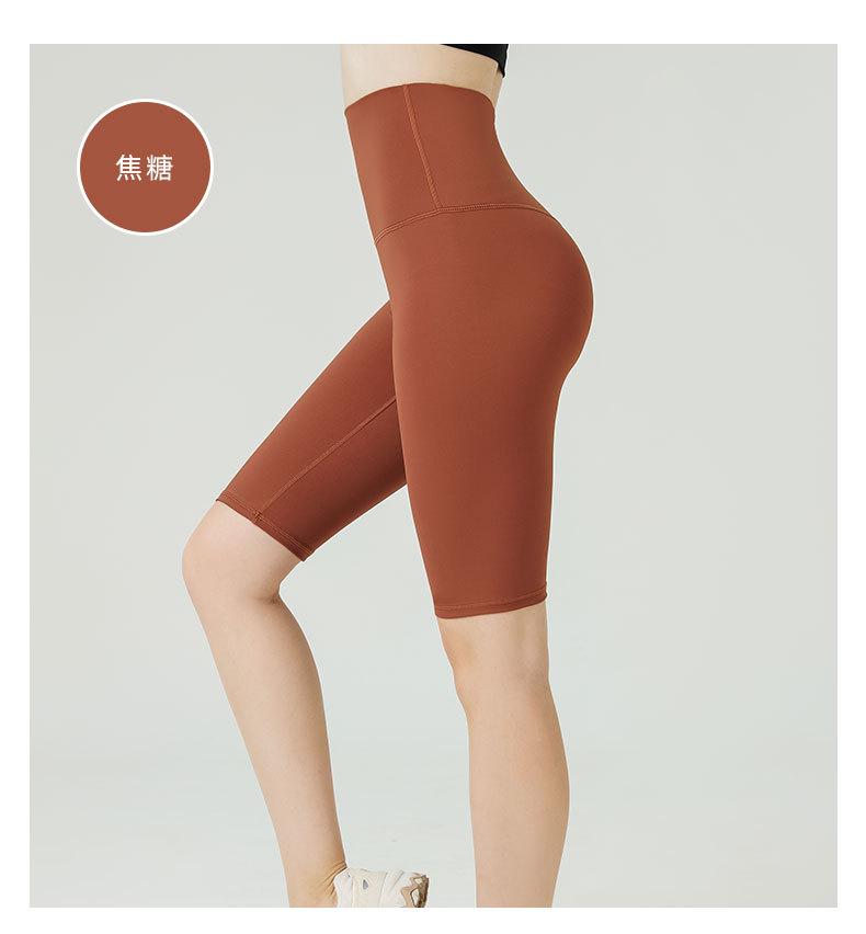 Pantalones cortos de yoga ajustados de cintura alta color melocotón, de verano, sin vergüenza, estilo transfronterizo europeo y americano.