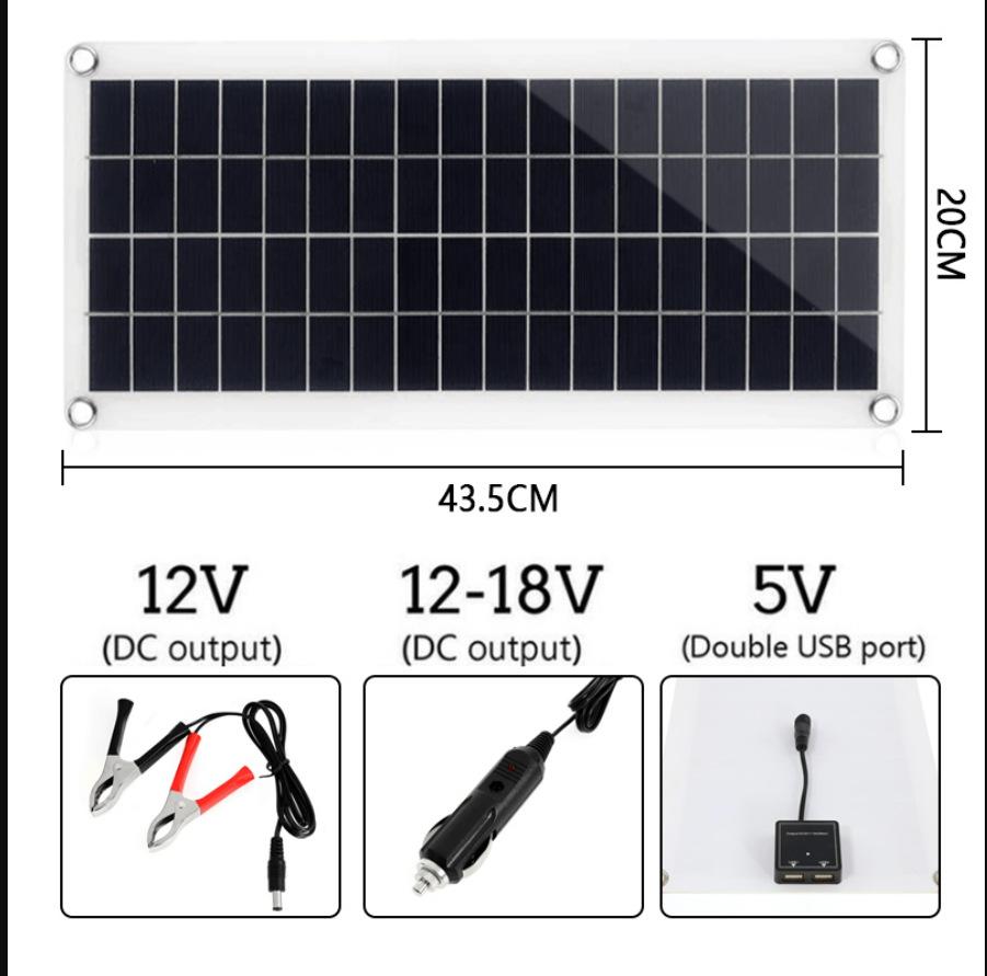 Kit de panel solar de 300 W, panel solar USB con controlador, apto para teléfono móvil, RV y coche.