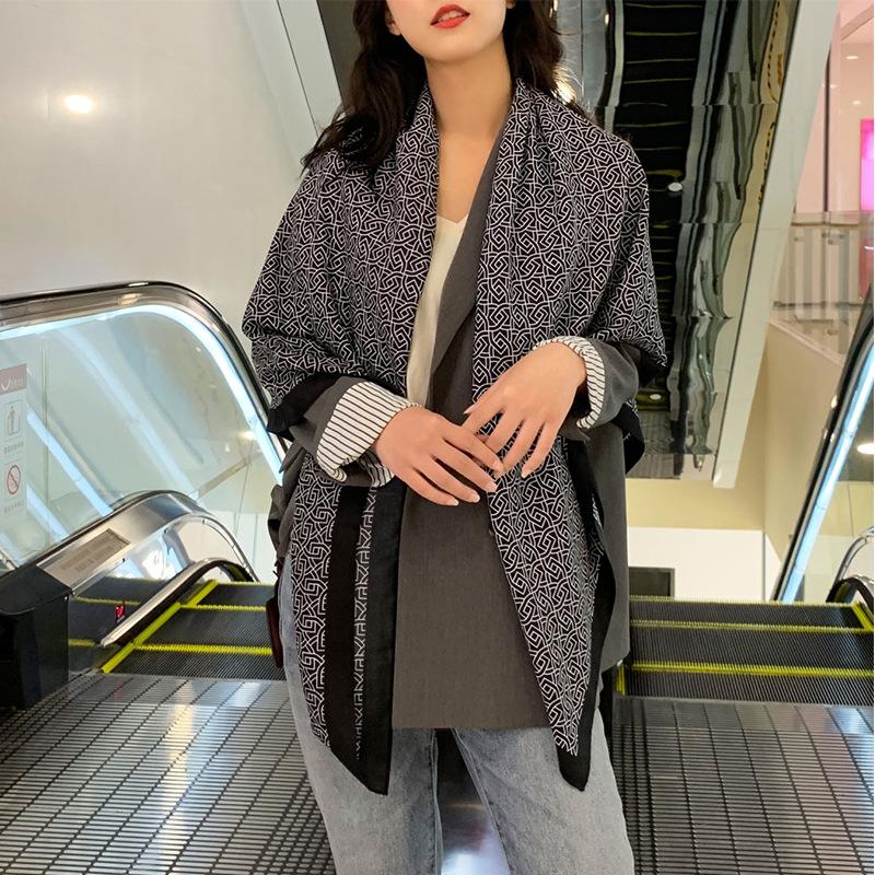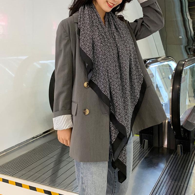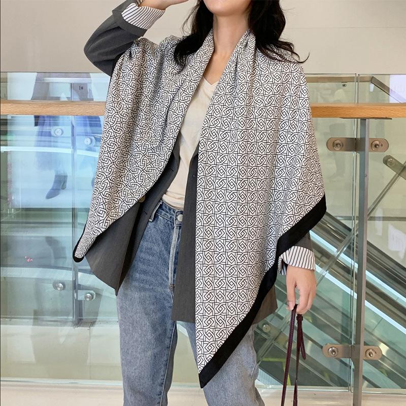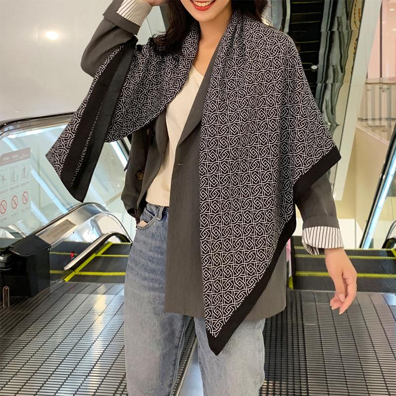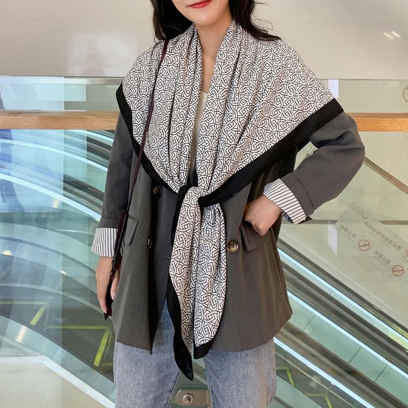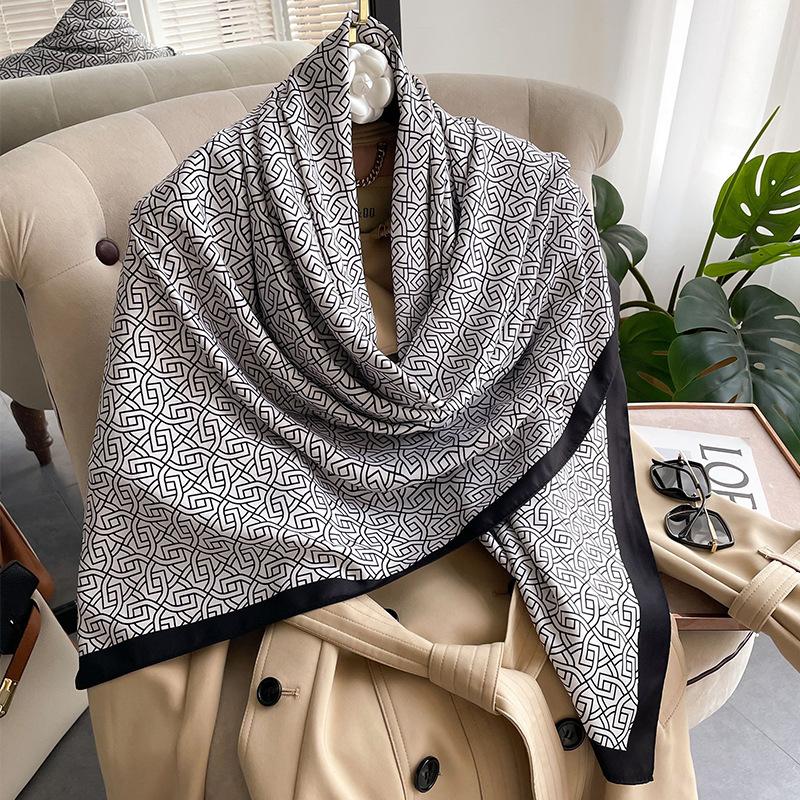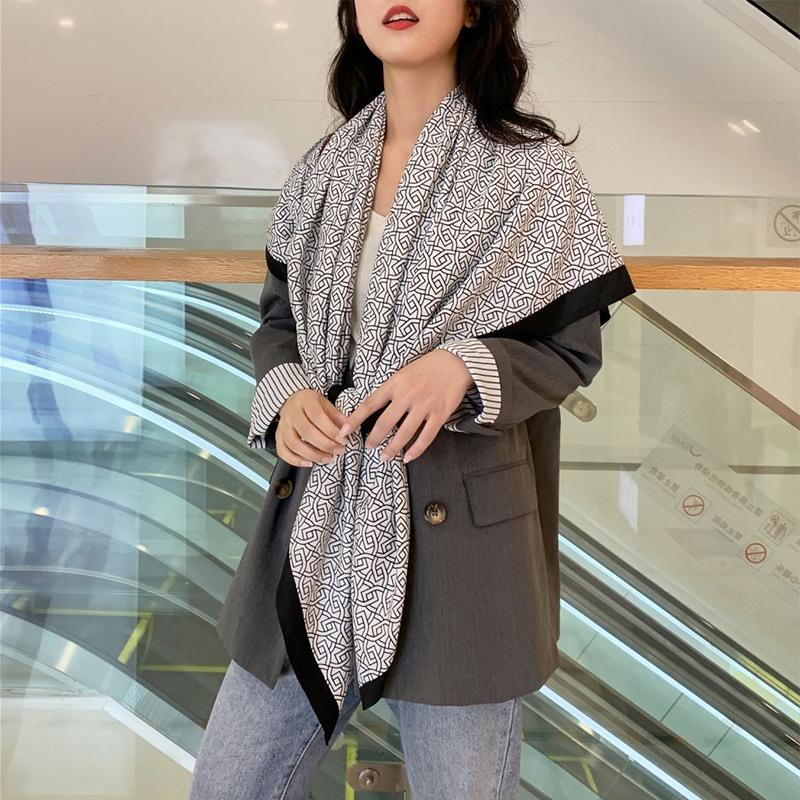 Chal de viaje Joker de moda de primavera y otoño con protección solar y aire acondicionado, estampado geométrico en blanco y negro, sarga de 130 x 130 cm, cuadrado grande para mujer