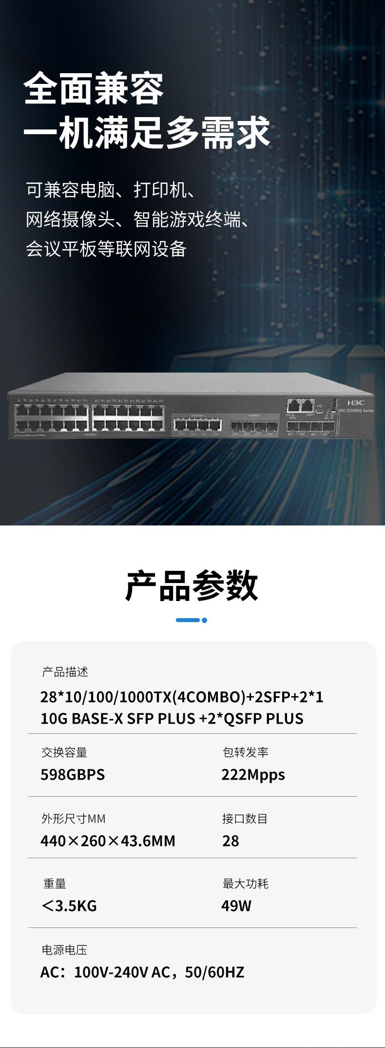 Conmutador H3C LS-5500V2-34S-EI, conmutador de red empresarial de tres niveles y 28 gigabits para salas de reuniones
