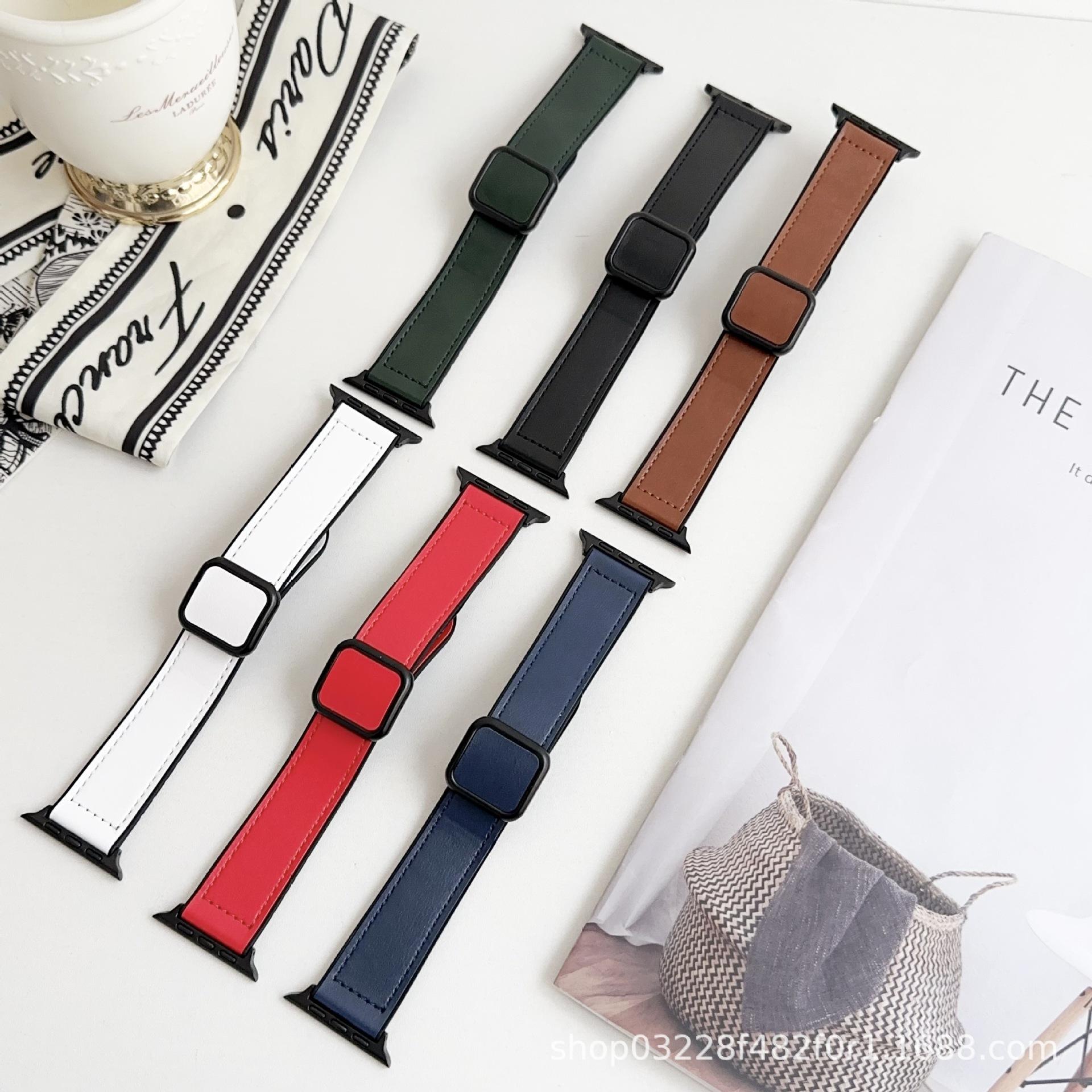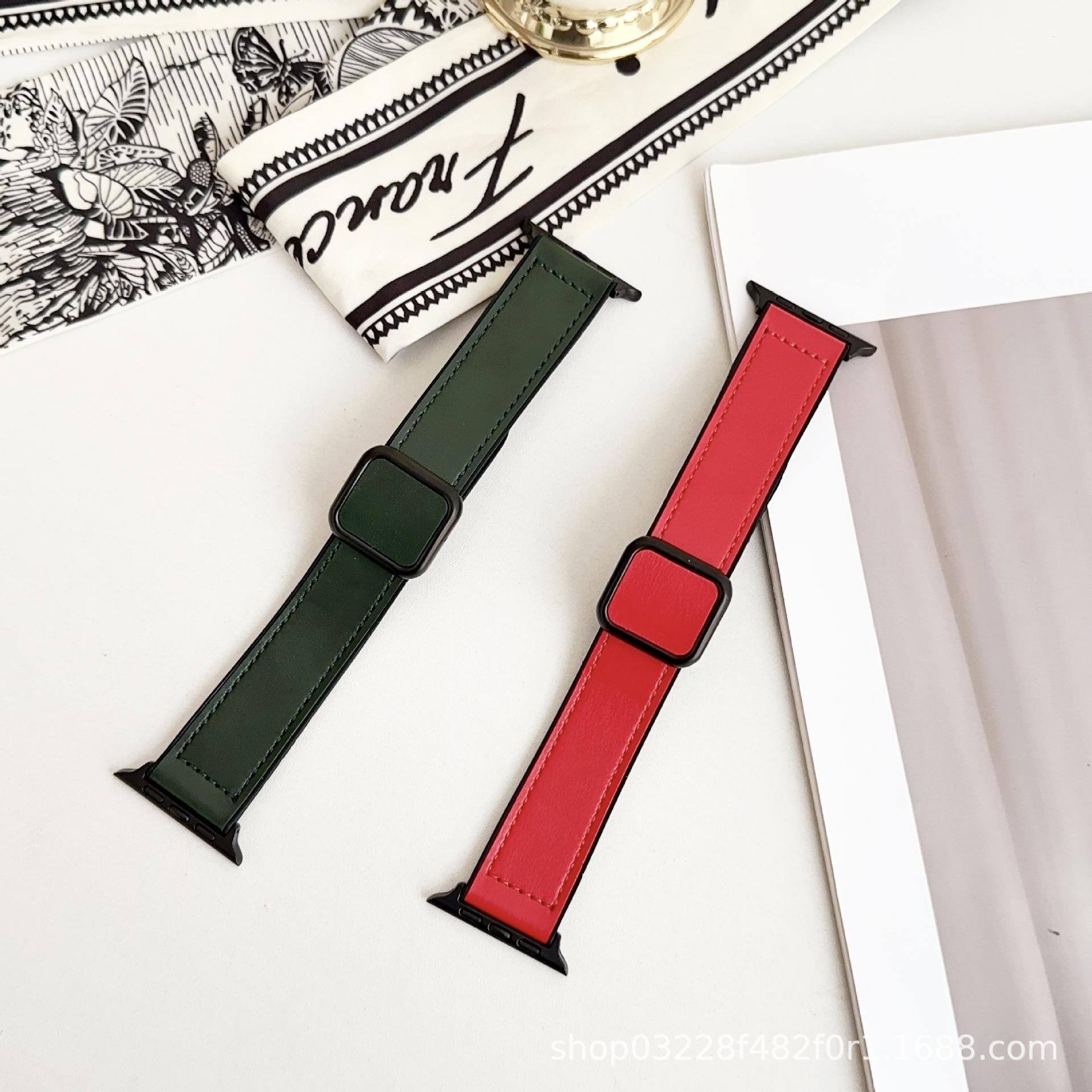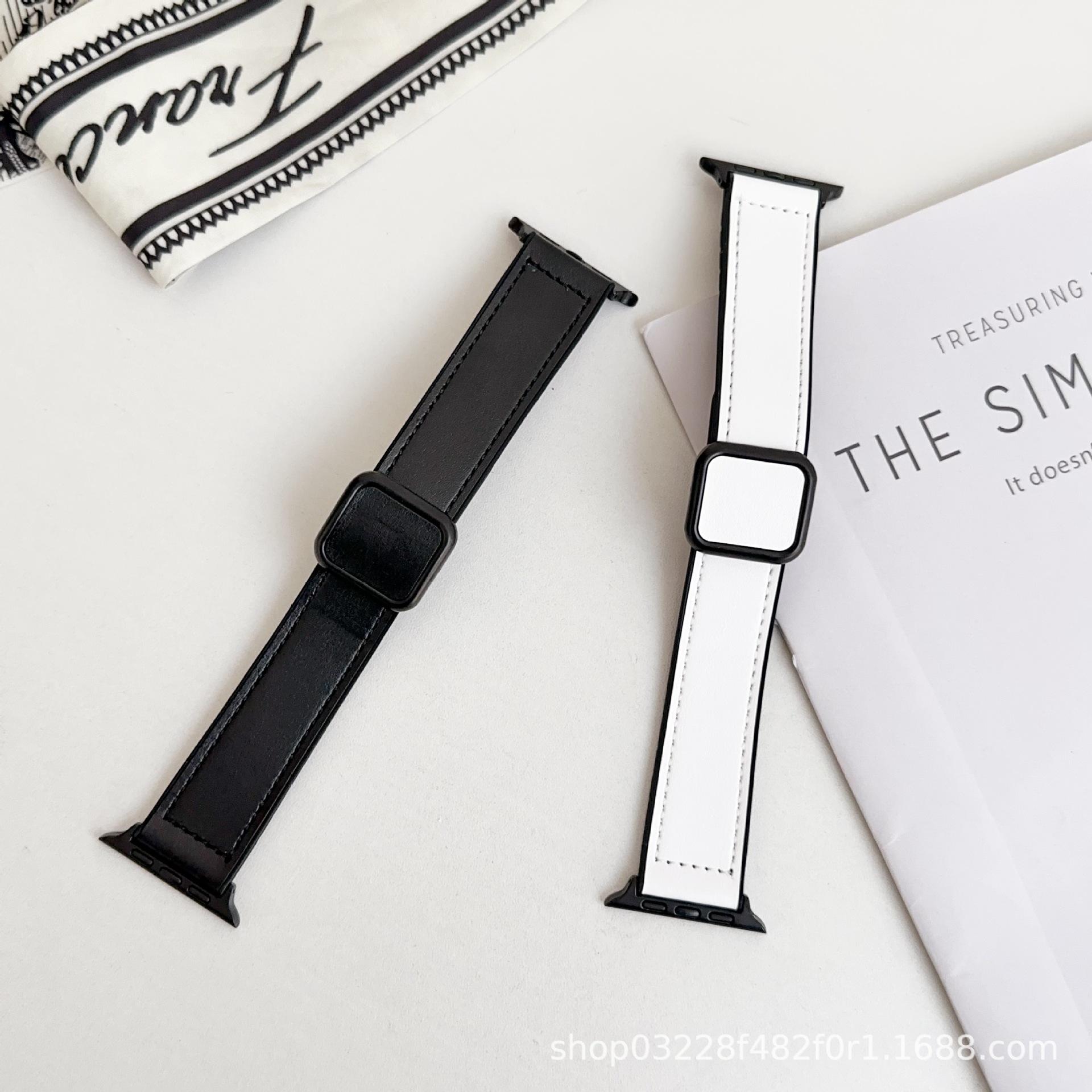Punto de venta del producto: Silicona impermeable y suave, más la textura del cuero, es una combinación perfecta. Emparejado con la hebilla cuadrada magnética, es conveniente y simple. Un estilo imprescindible en las tiendas