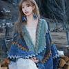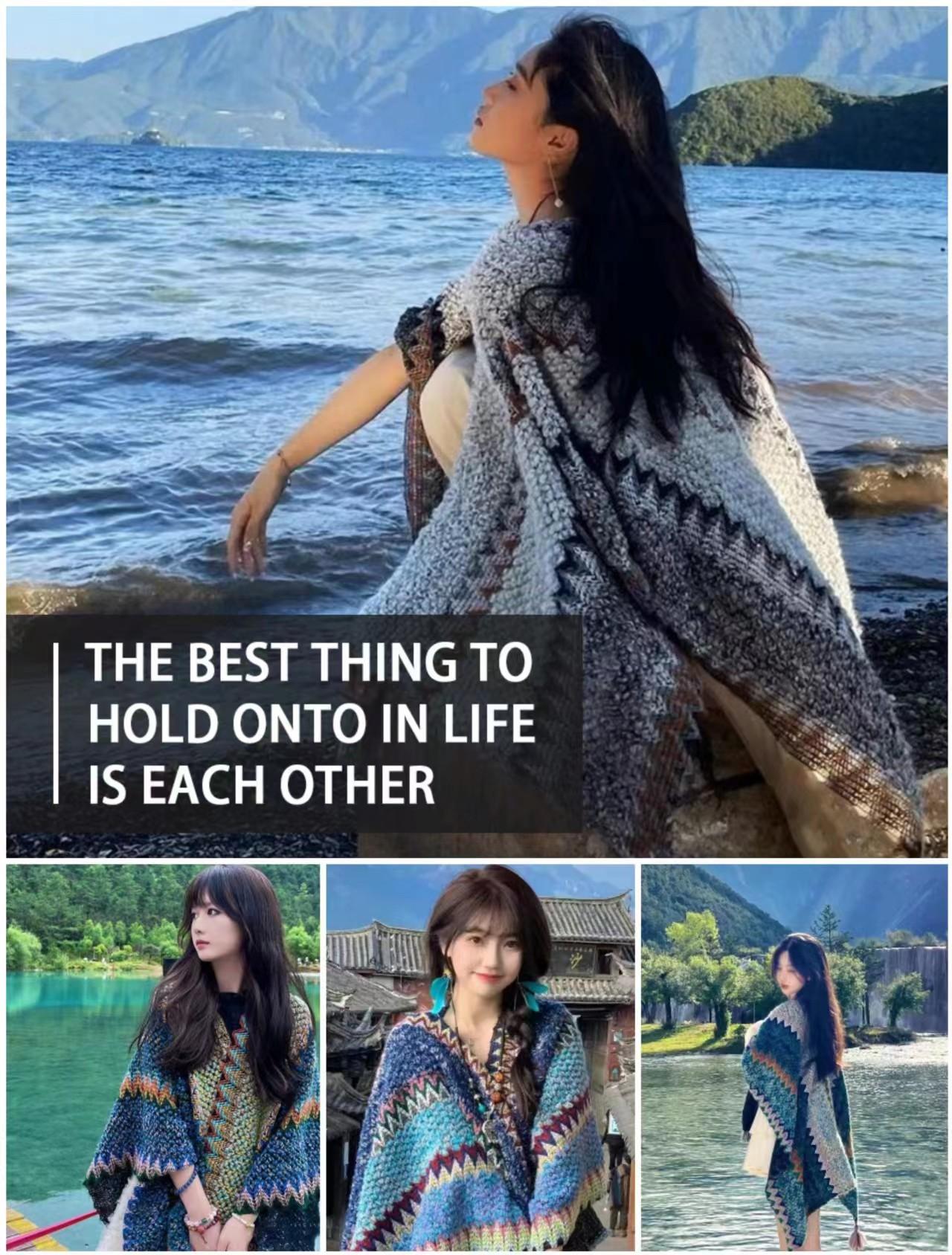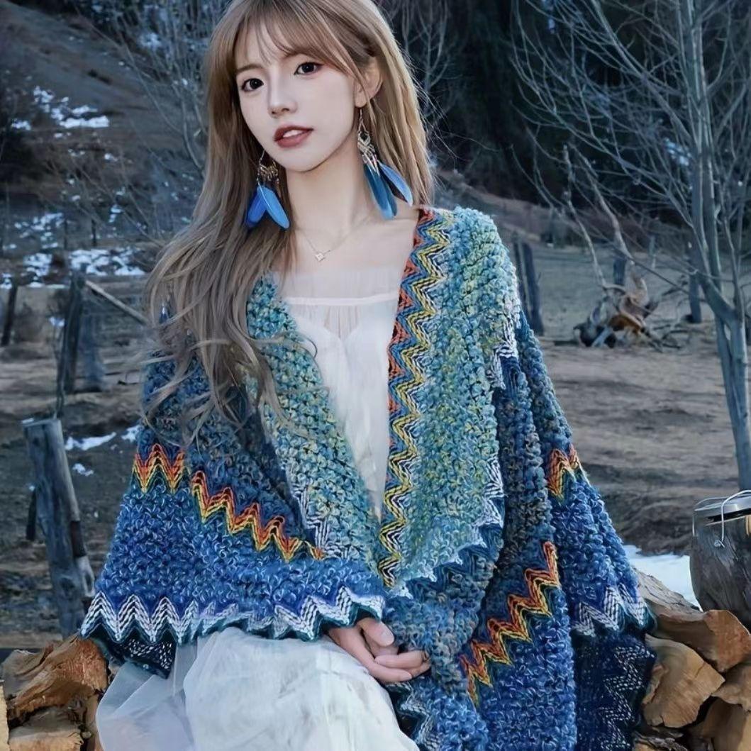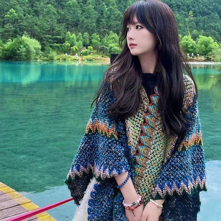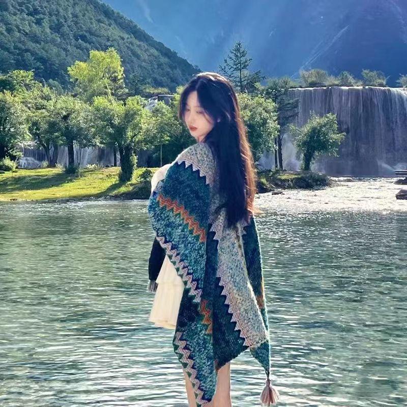 Chal Estilo Étnico Yunnan Chal para Mujer Manta Tejida Cálida Empalmada Capa Exterior Estilo Vacacional Dali Xizang