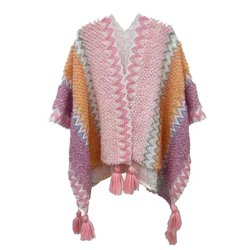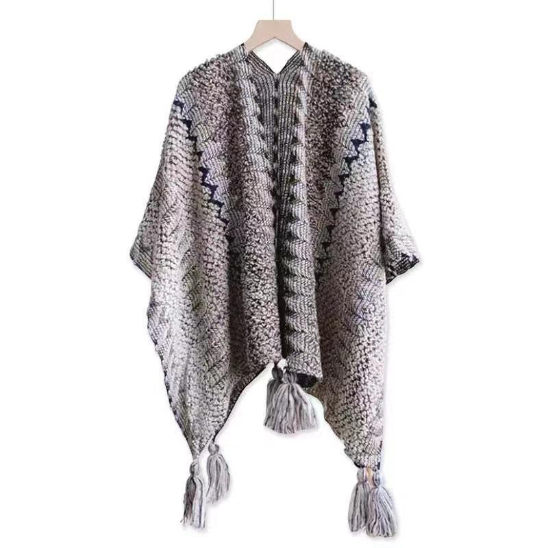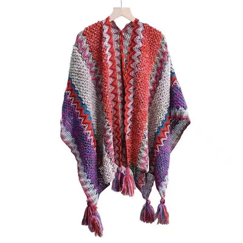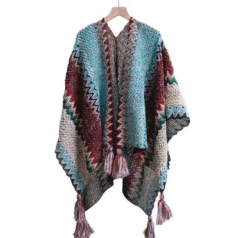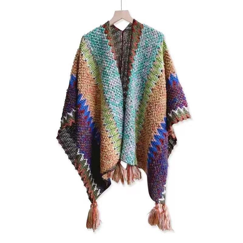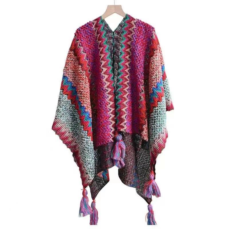 Chal Estilo Étnico Yunnan Chal para Mujer Manta Tejida Cálida Empalmada Capa Exterior Estilo Vacacional Dali Xizang