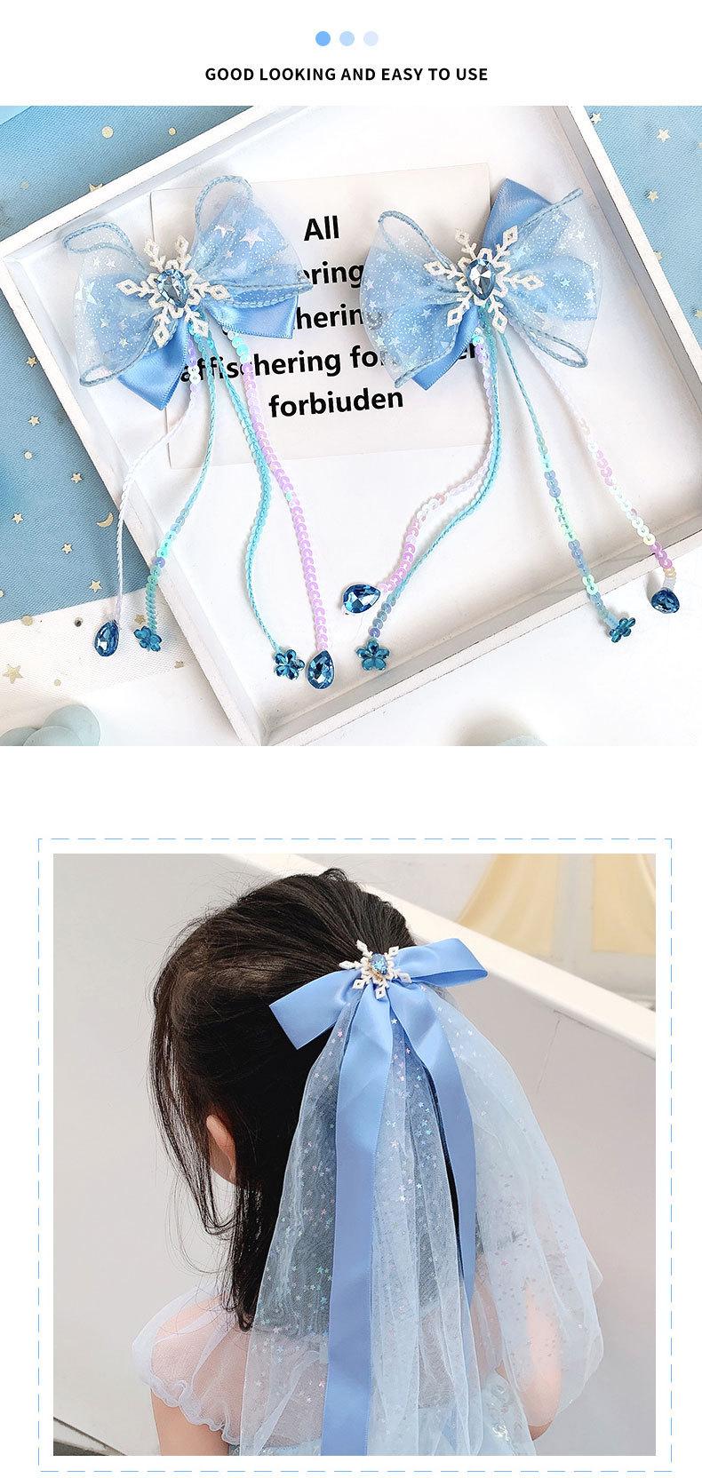 Snowflake Bow Pair, Bowknot yarn single clip, Snowflake Big Bow Long Ribbon Hairpin, Jewel Bow Ribbon Hairpin,...