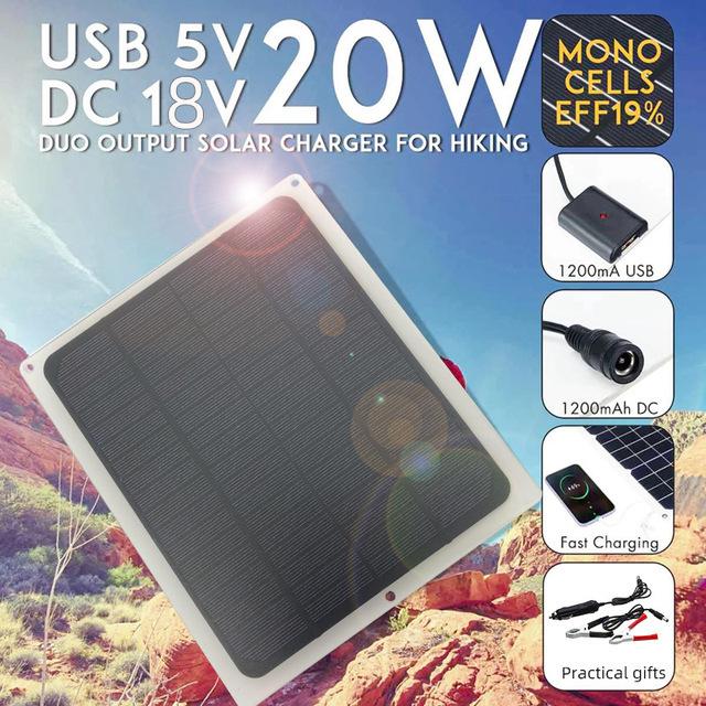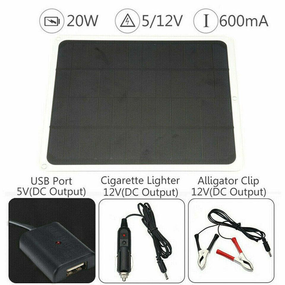 Panel solar monocristalino de 20 W, kit de cargador de batería de 12 V, panel solar de 5,5 W