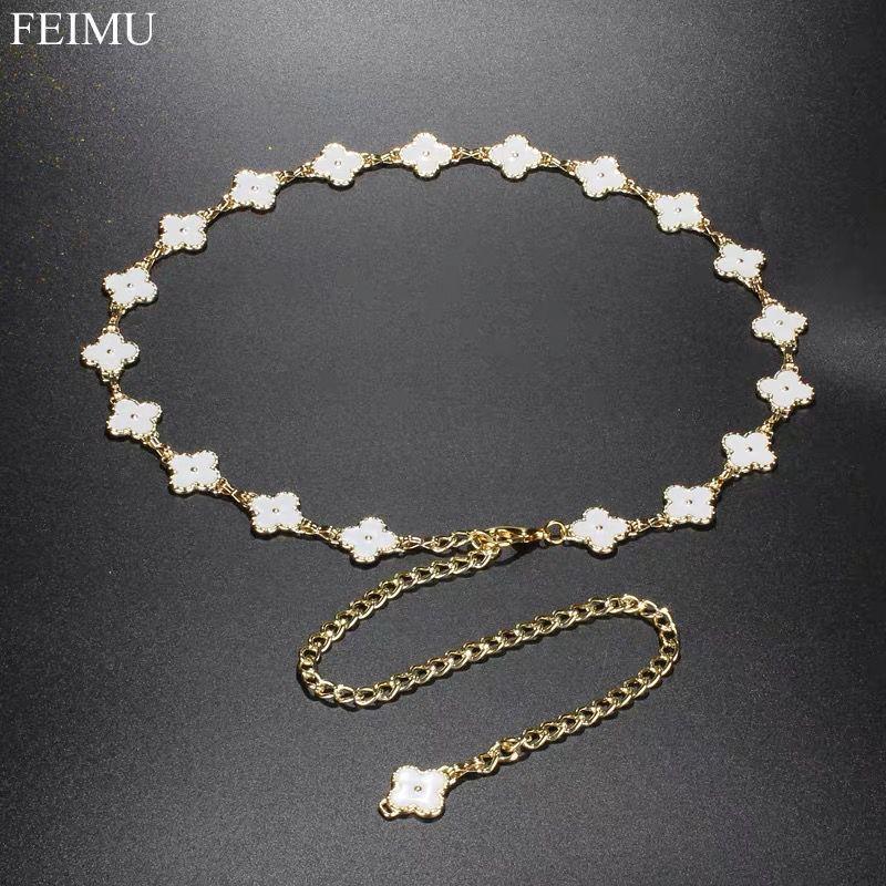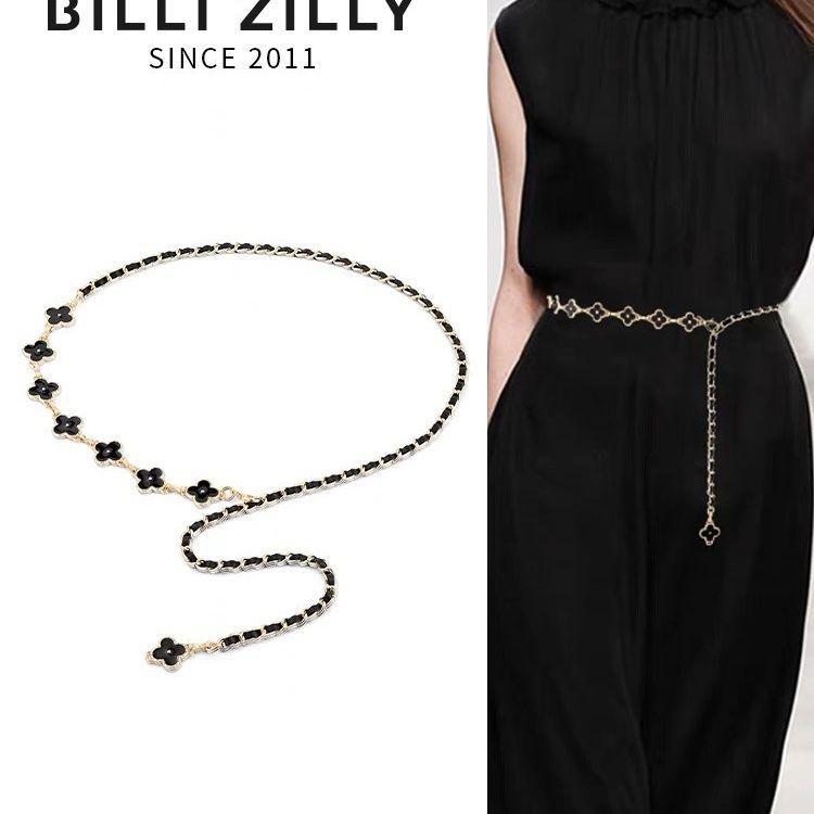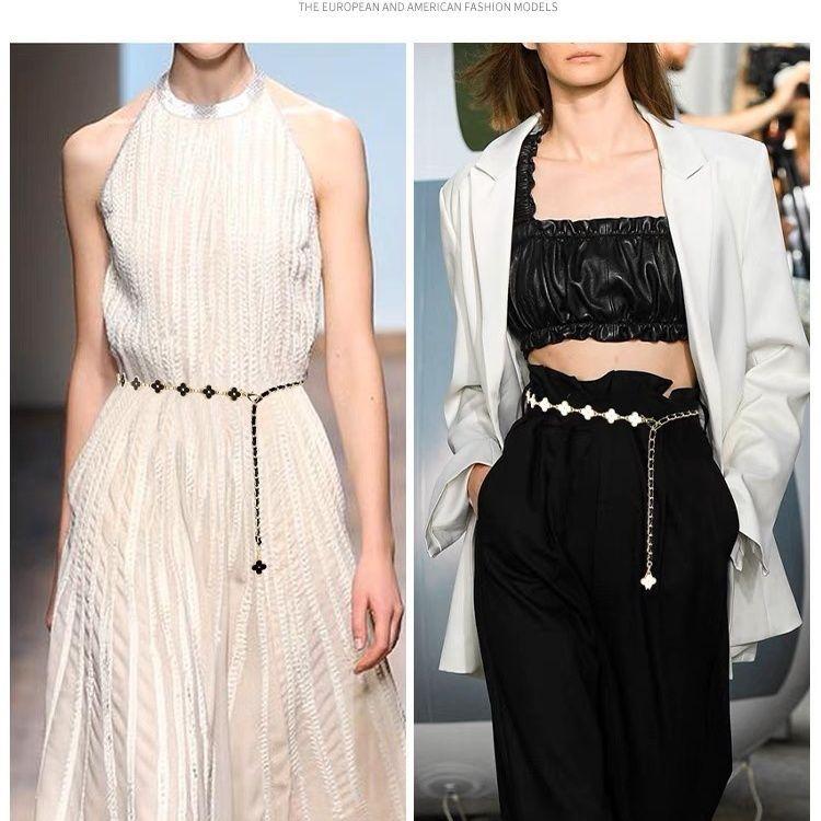 Cadena de cintura de metal con trébol, accesorios, cinturón fino, cadena decorativa para falda y pantalones de mujer, moda de doble cara, combina con todo, moda ins