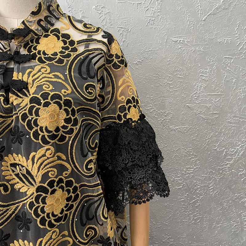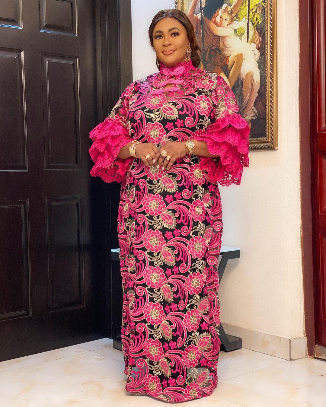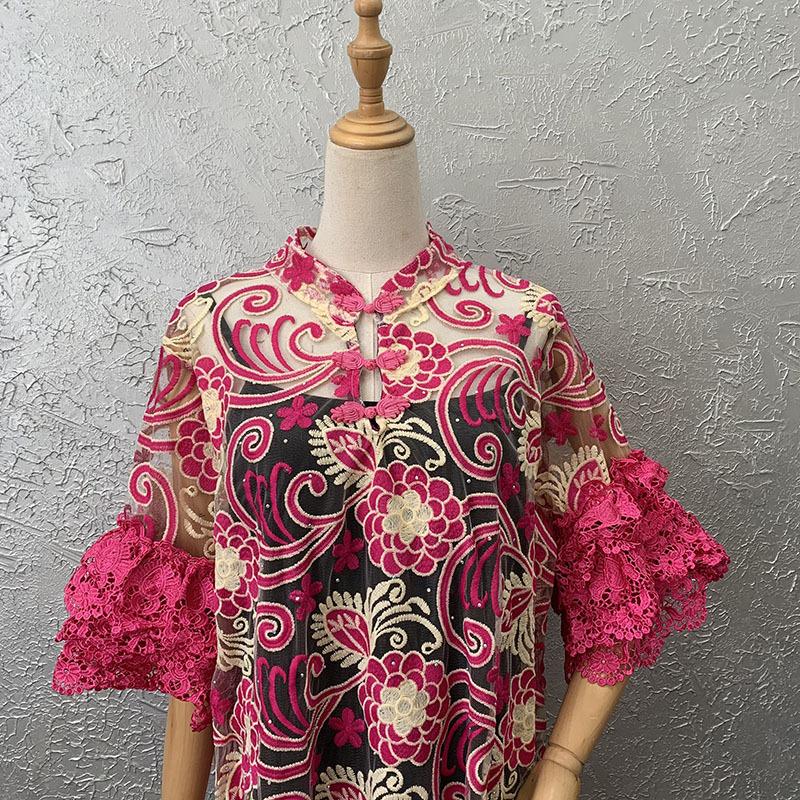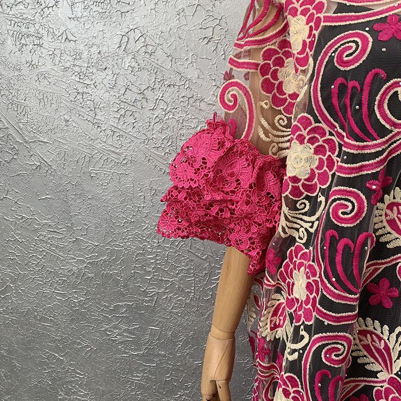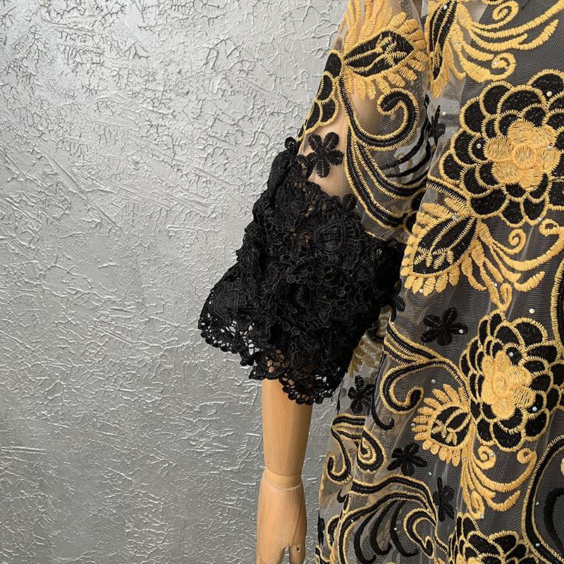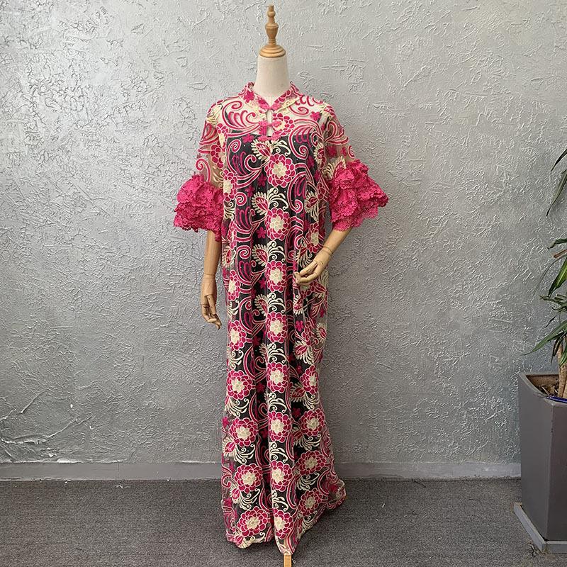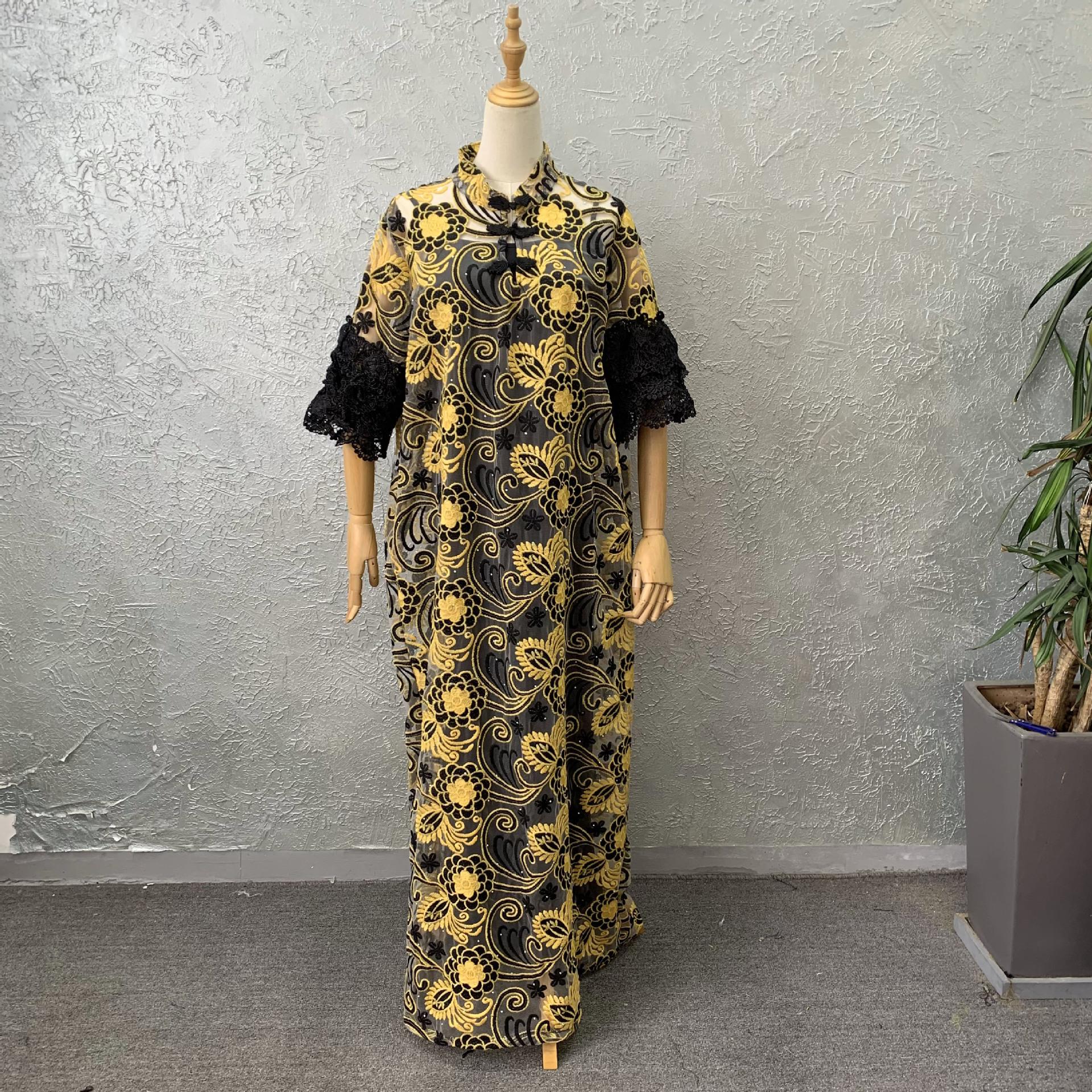 Vestido de encaje africano para mujer, elegante vestido largo holgado con mangas abullonadas bordadas, suministro transfronterizo.