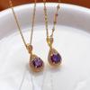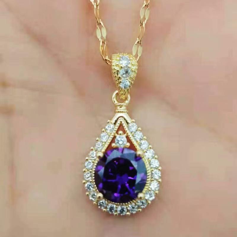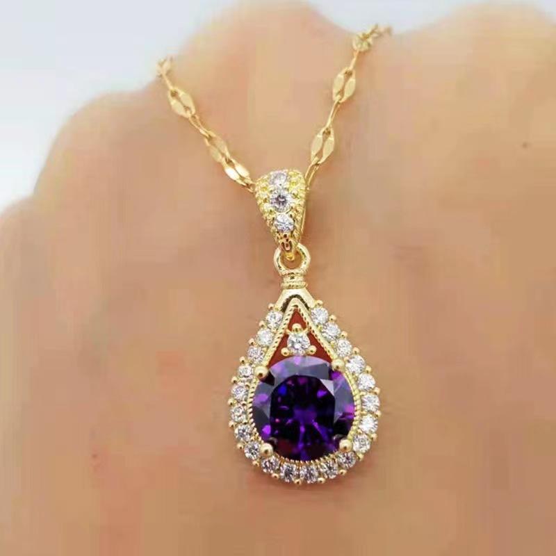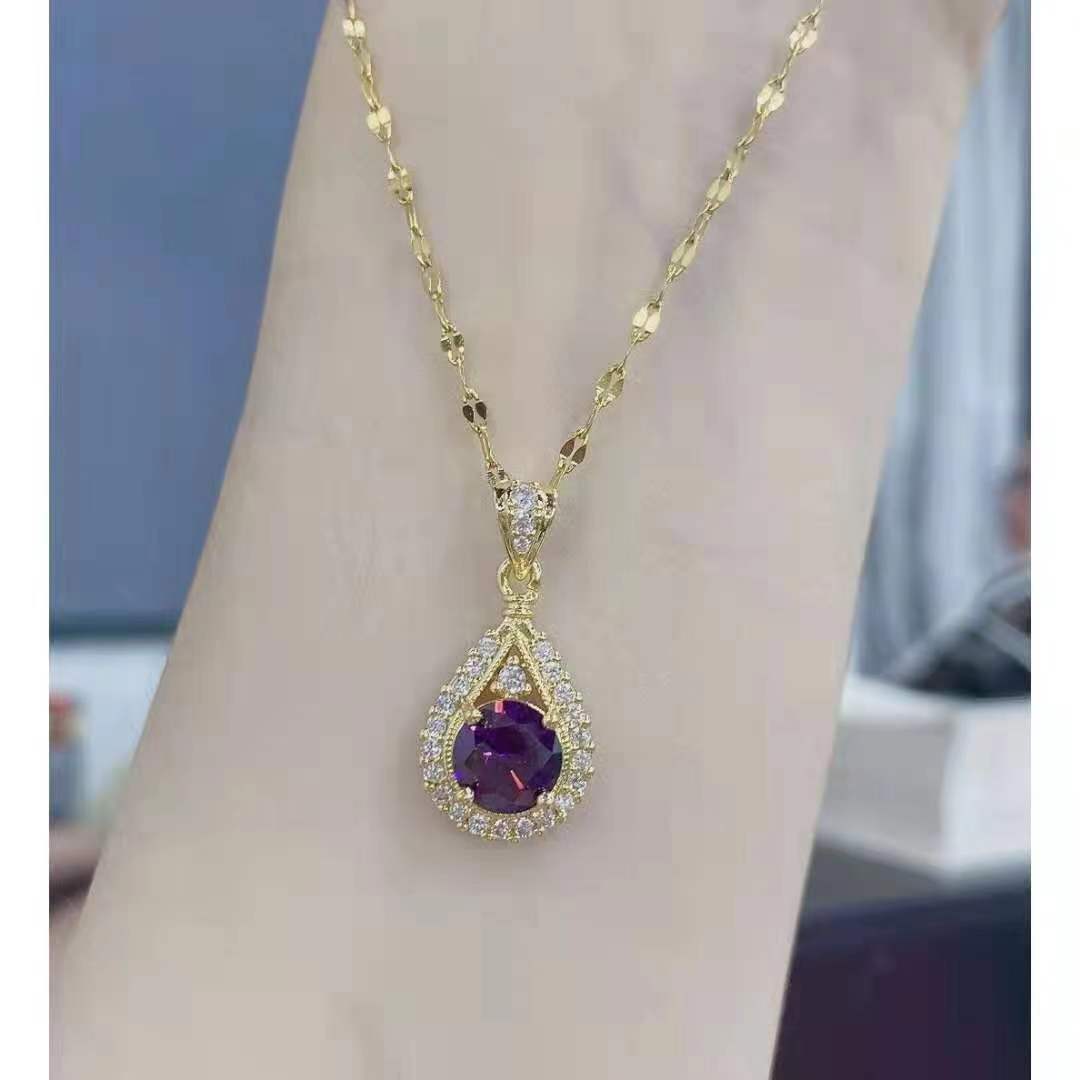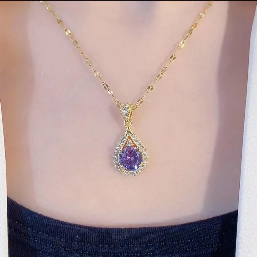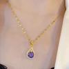 Nuevo collar de acero y titanio en forma de gota 2023 para mujer, amatista, cadena de clavícula de alta gama, colgante simple, joyería