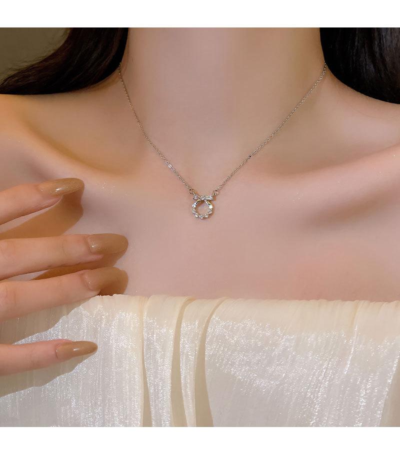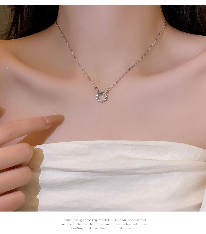 Nuevo collar de acero de titanio con circonita de lazo 2023 para mujer, accesorios de collar de clavícula sencillos de alta gama de lujo ligero