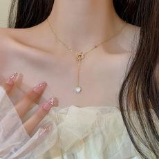 Collar coreano retro de nácar con forma de corazón para mujer, estilo ins, de alta gama, simple, cadena de clavícula de acero de titanio, accesorios versátiles de celebridad de internet