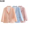 Chaqueta elegante de primavera y otoño para mujer, estilo europeo y americano, combina con todo, cuello en V, manga larga, solapa hueca y ajustada.