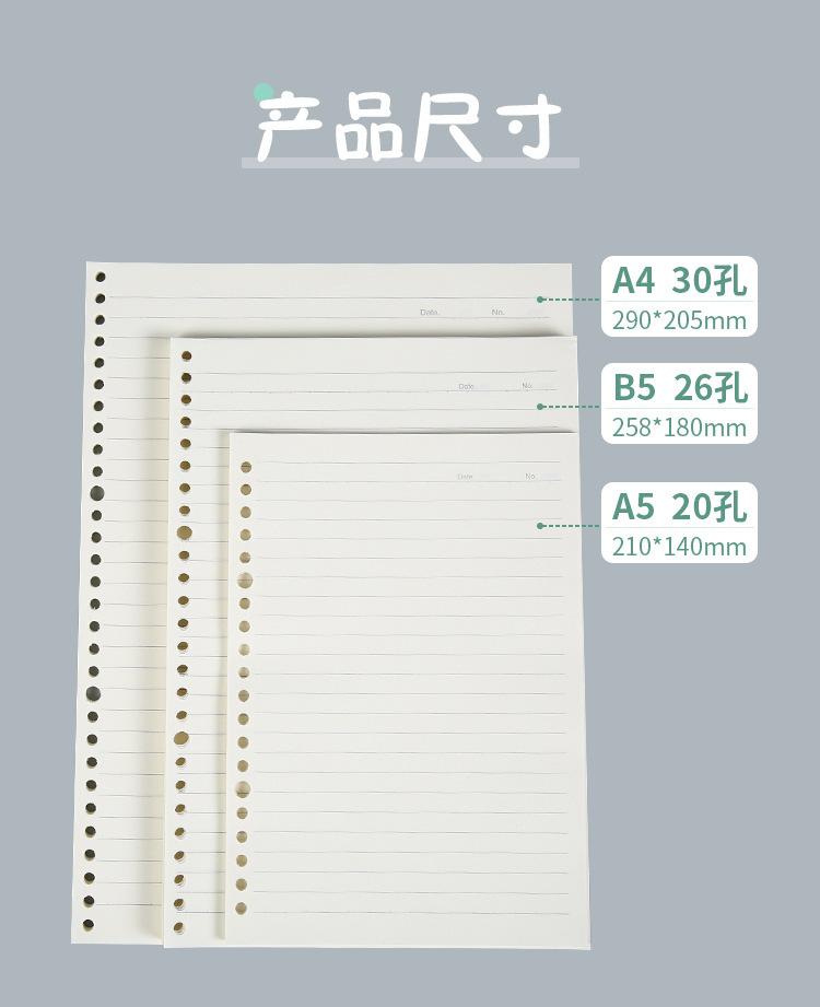 Nuevo núcleo interior de libro de hojas sueltas A4 Connell, papel en blanco de 26 agujeros, página interior A5, recambio de libro de hojas sueltas B5 sencillo para estudiantes