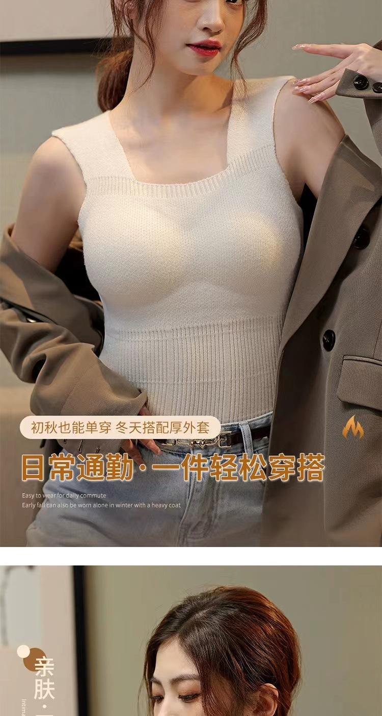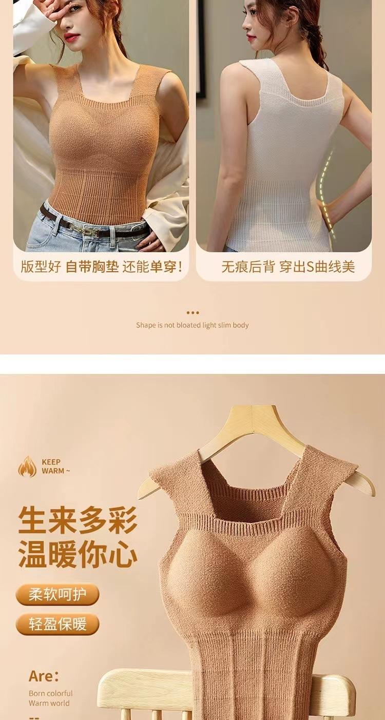 Nueva camiseta térmica de otoño e invierno para mujer, chaleco ajustado con cuello en V y almohadilla para el pecho, ropa interior y exterior, ropa interior térmica para mujer