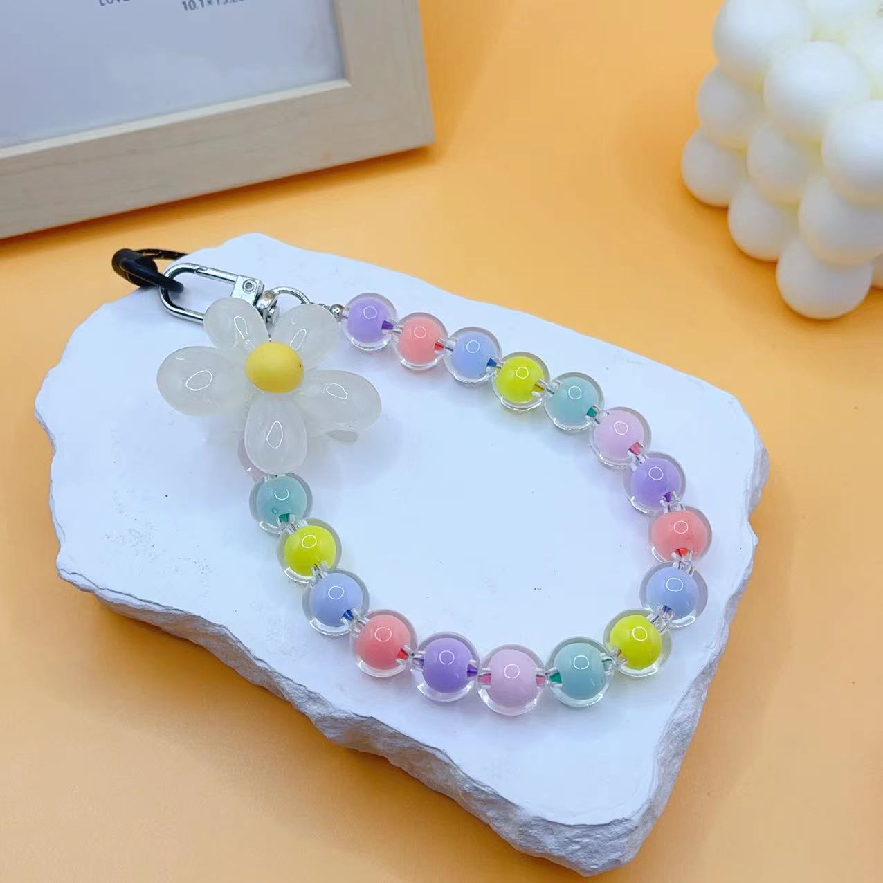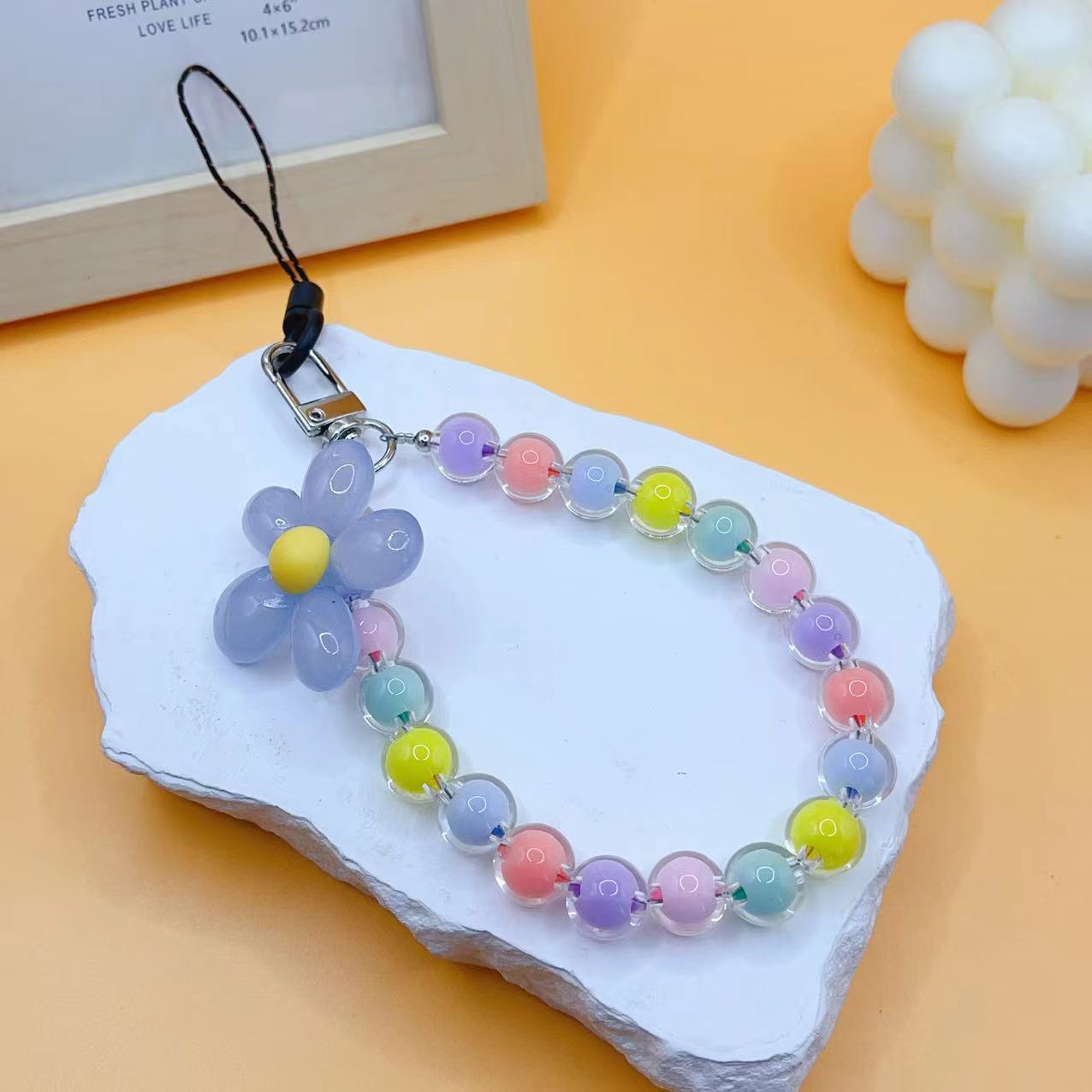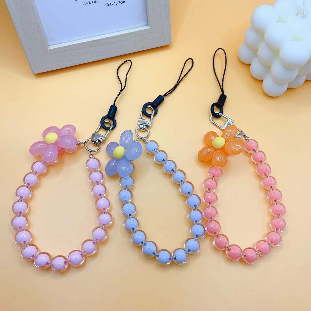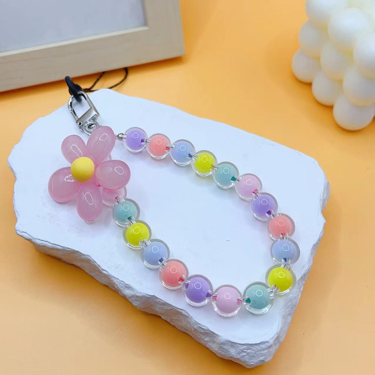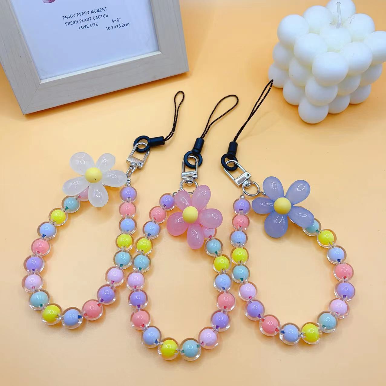 Cadena para teléfono móvil con flores japonesas y coreanas, cuentas de colores macarrón, colgante para teléfono móvil, funda anticaída, cordón para la muñeca