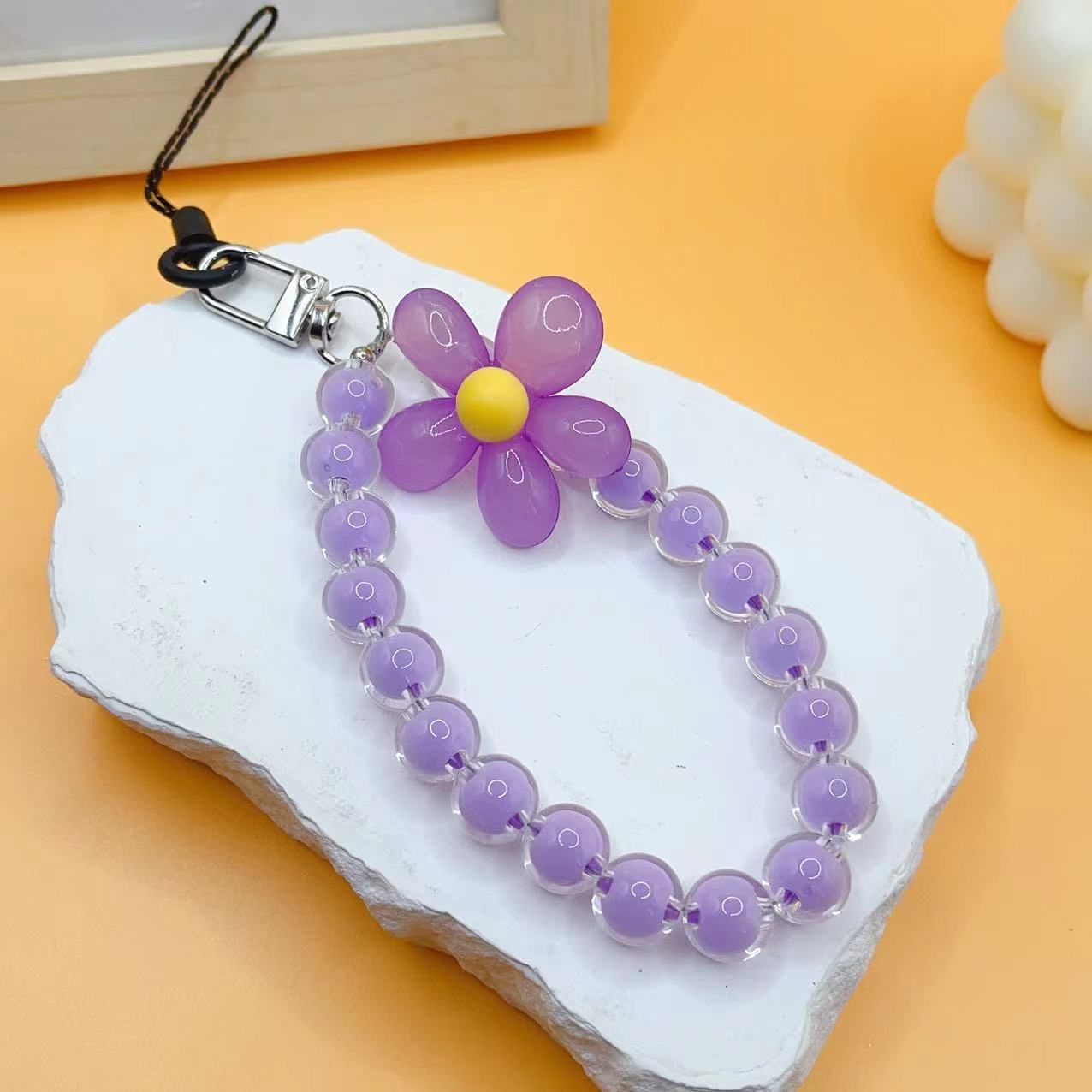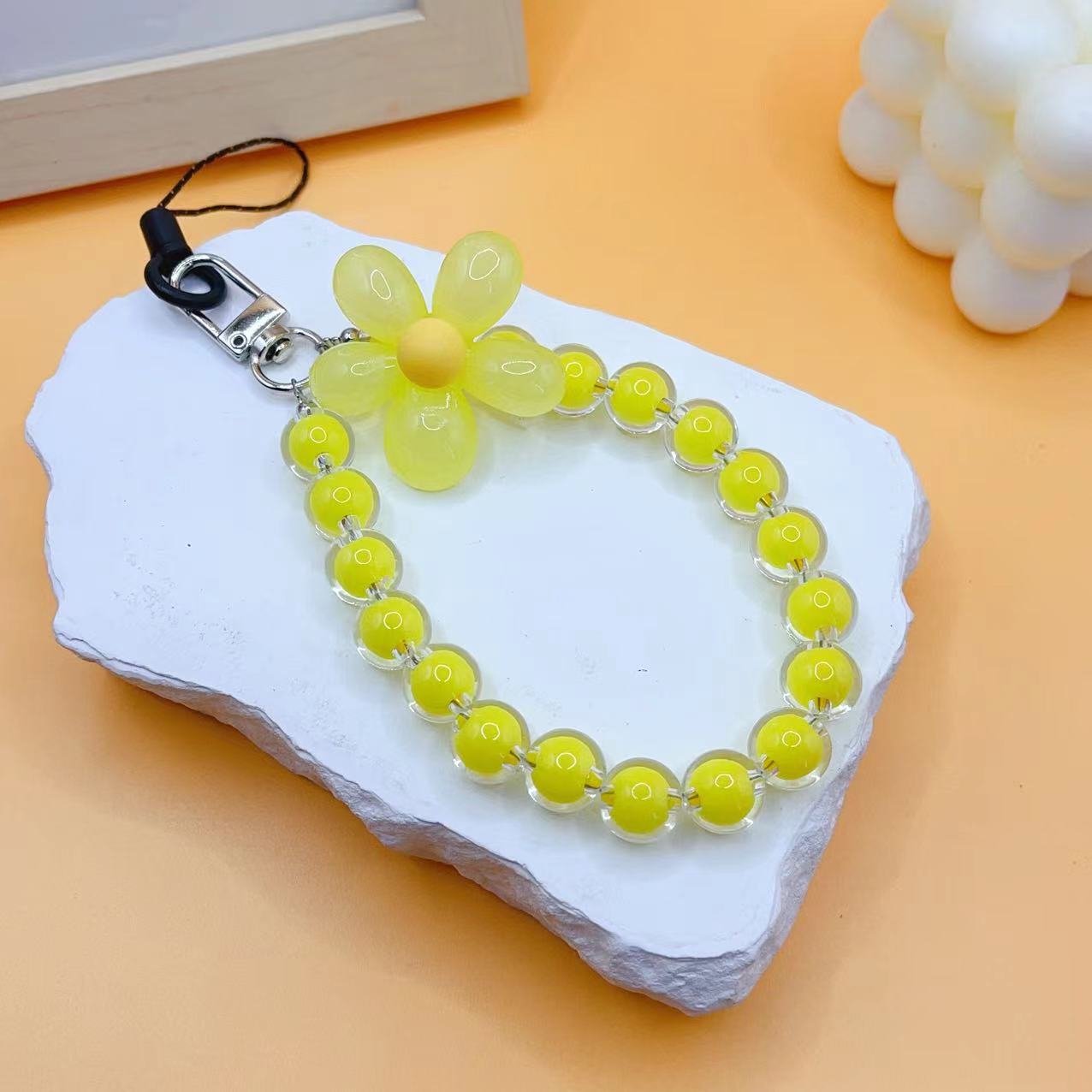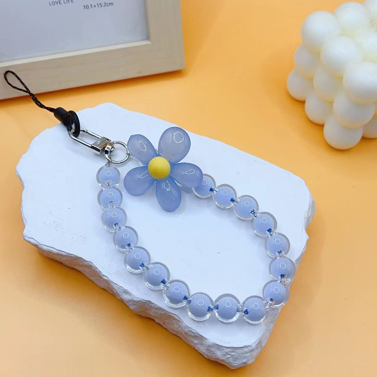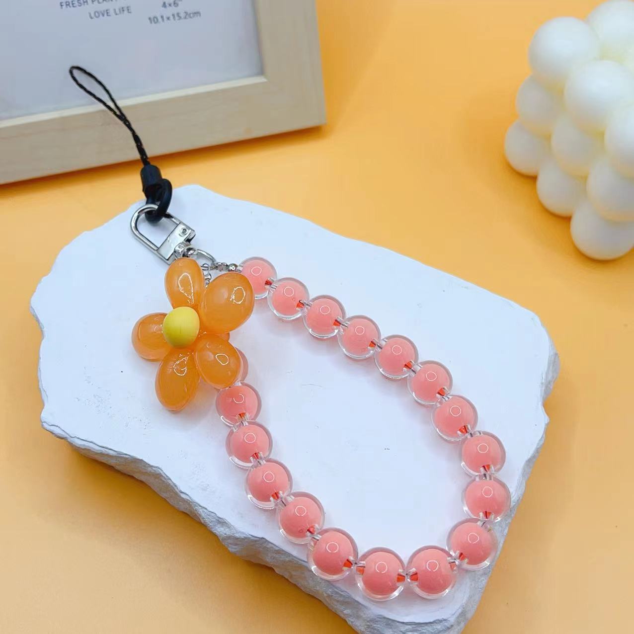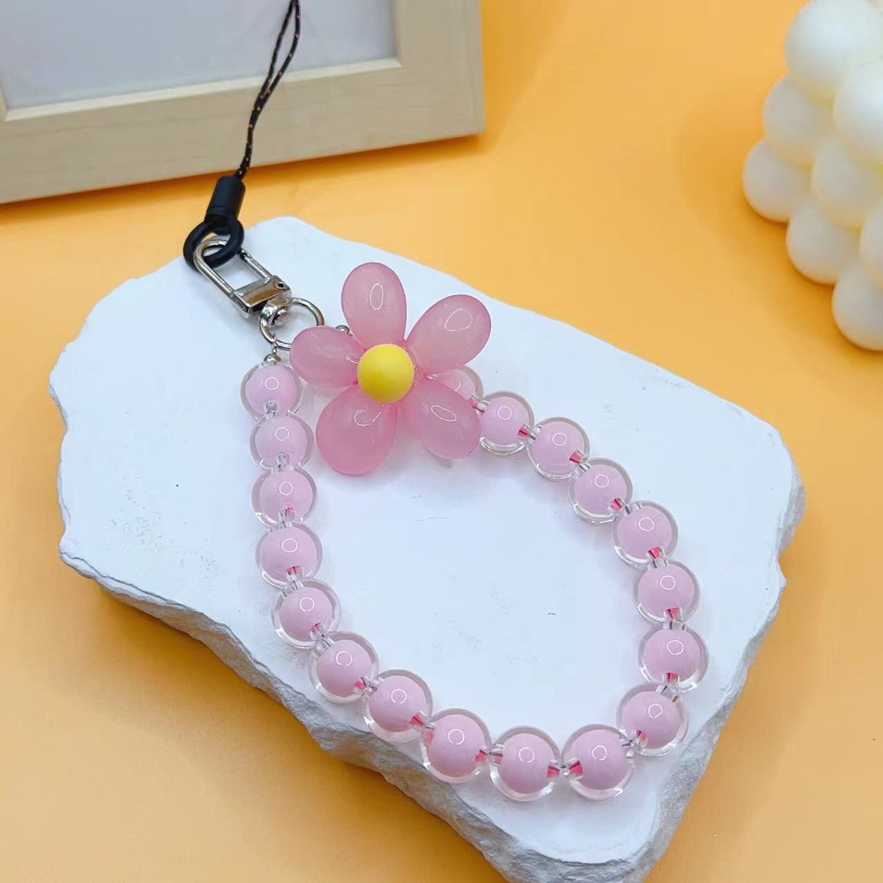 Cadena para teléfono móvil con flores japonesas y coreanas, cuentas de colores macarrón, colgante para teléfono móvil, funda anticaída, cordón para la muñeca