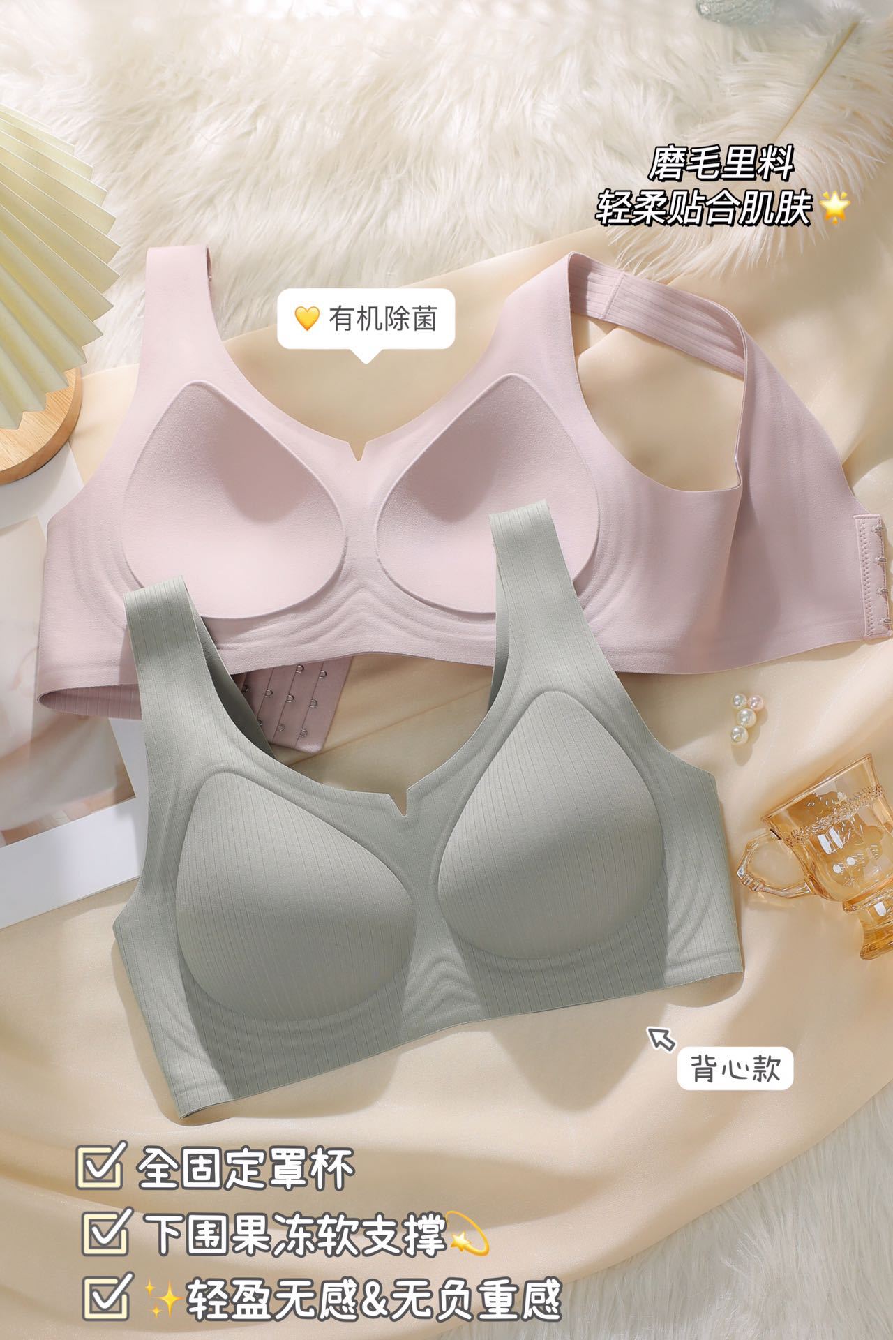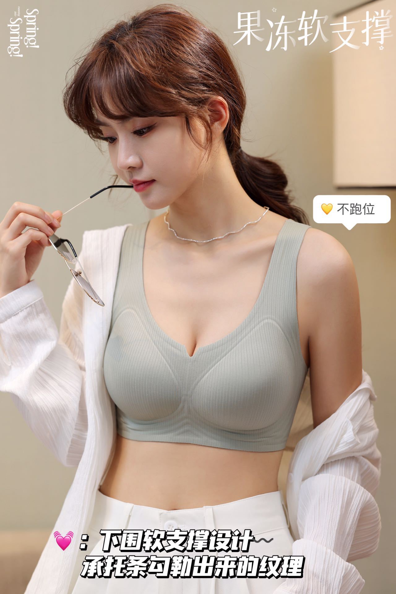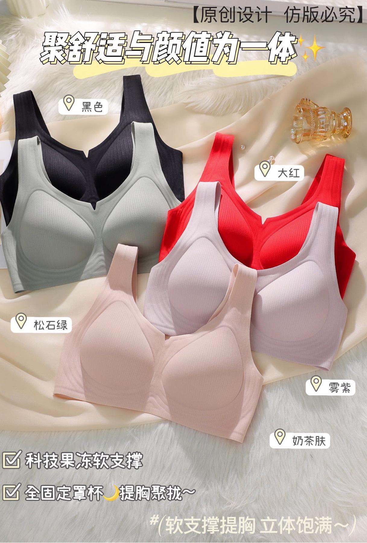 Nuevo sujetador de soporte suave con tira de gelatina, cómodo, push up, sin costuras, cepillado, anti-flacidez, para realzar el busto, con copa fija, ropa interior para mujer