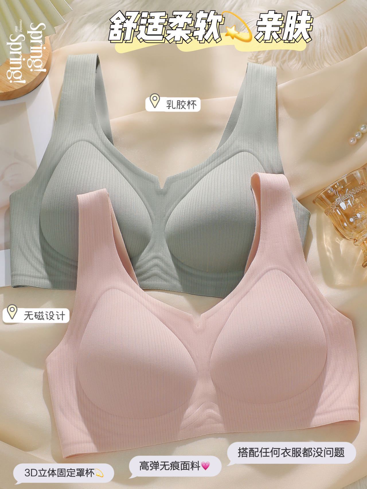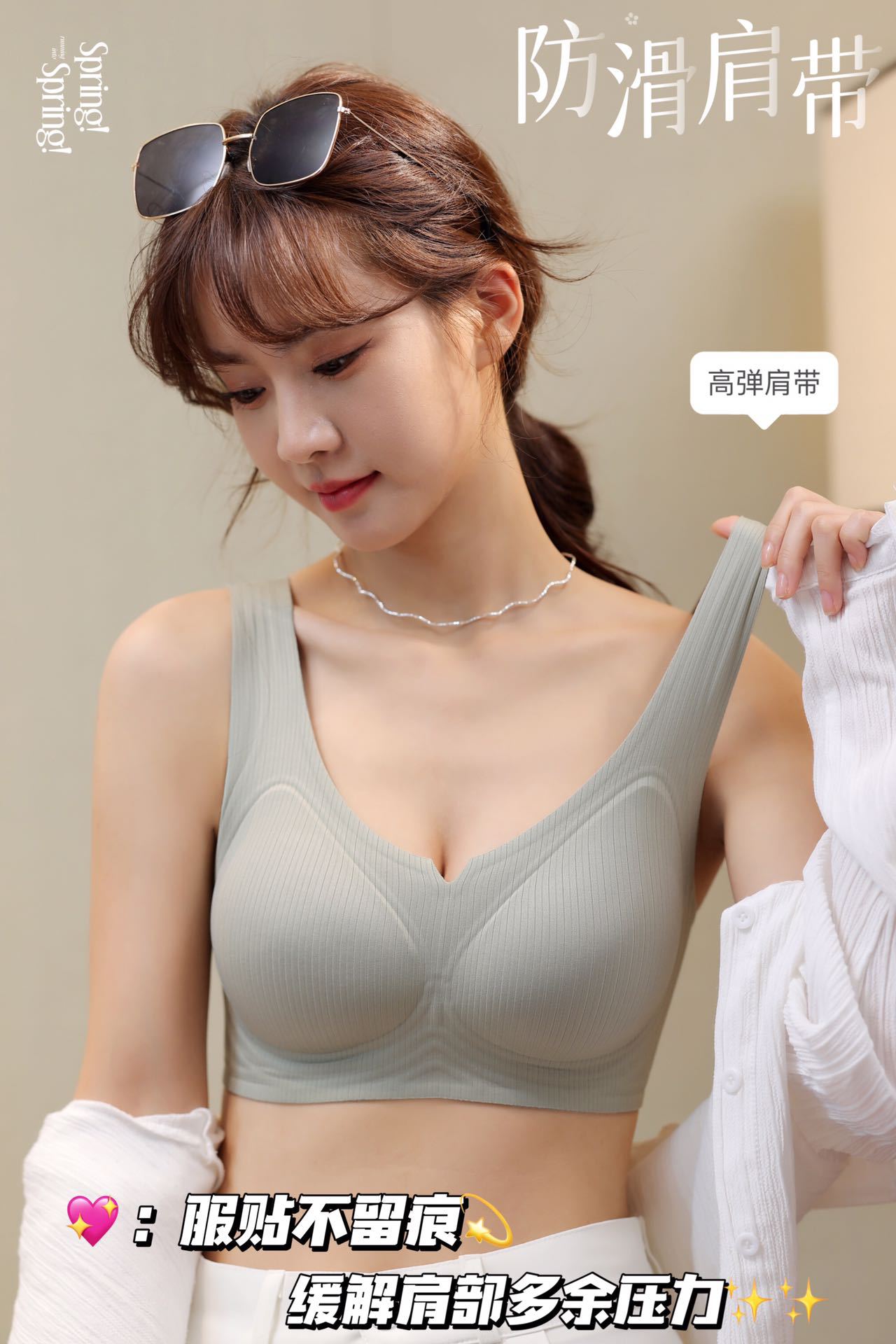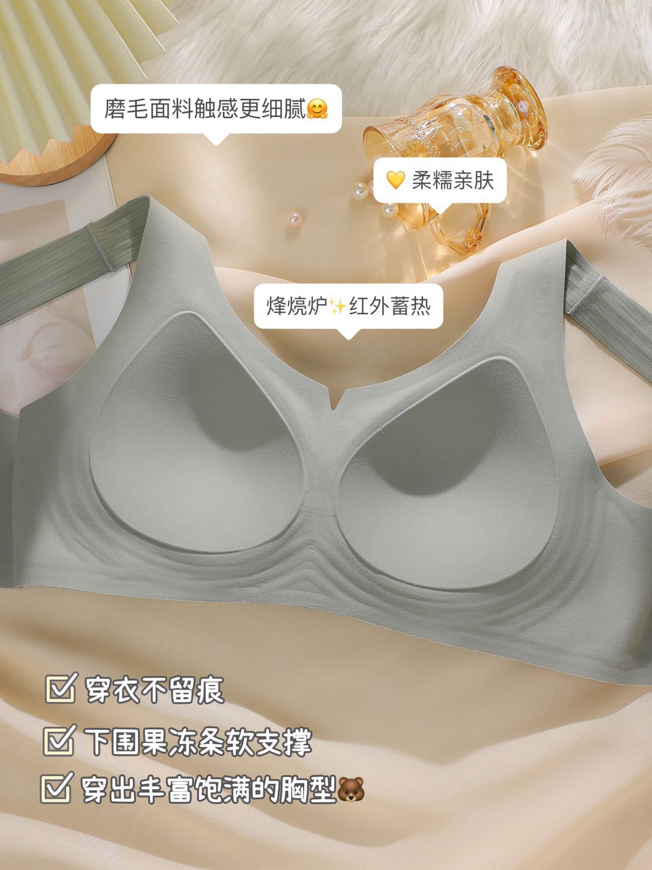 Nuevo sujetador de soporte suave con tira de gelatina, cómodo, push up, sin costuras, cepillado, anti-flacidez, para realzar el busto, con copa fija, ropa interior para mujer