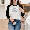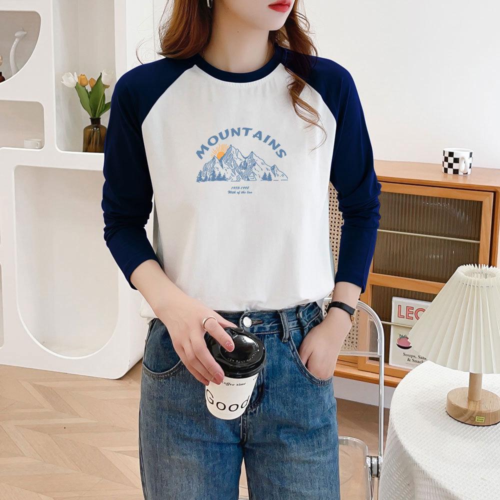95% Algodón + 5% Spandex Alta Calidad Cuello Redondo Holgada Joker Slim Otoño Manga Larga Camiseta Chaqueta Estudiante Femenina