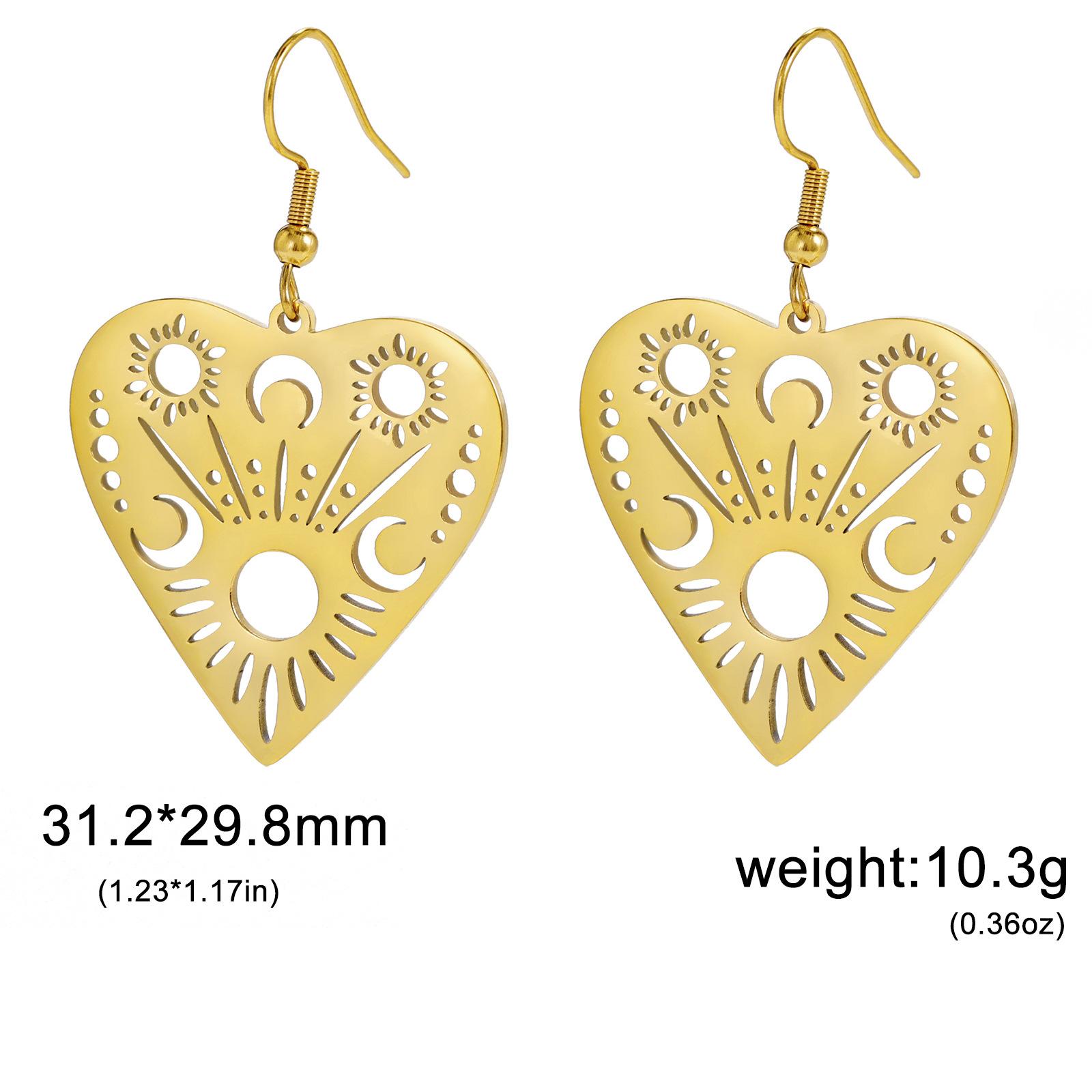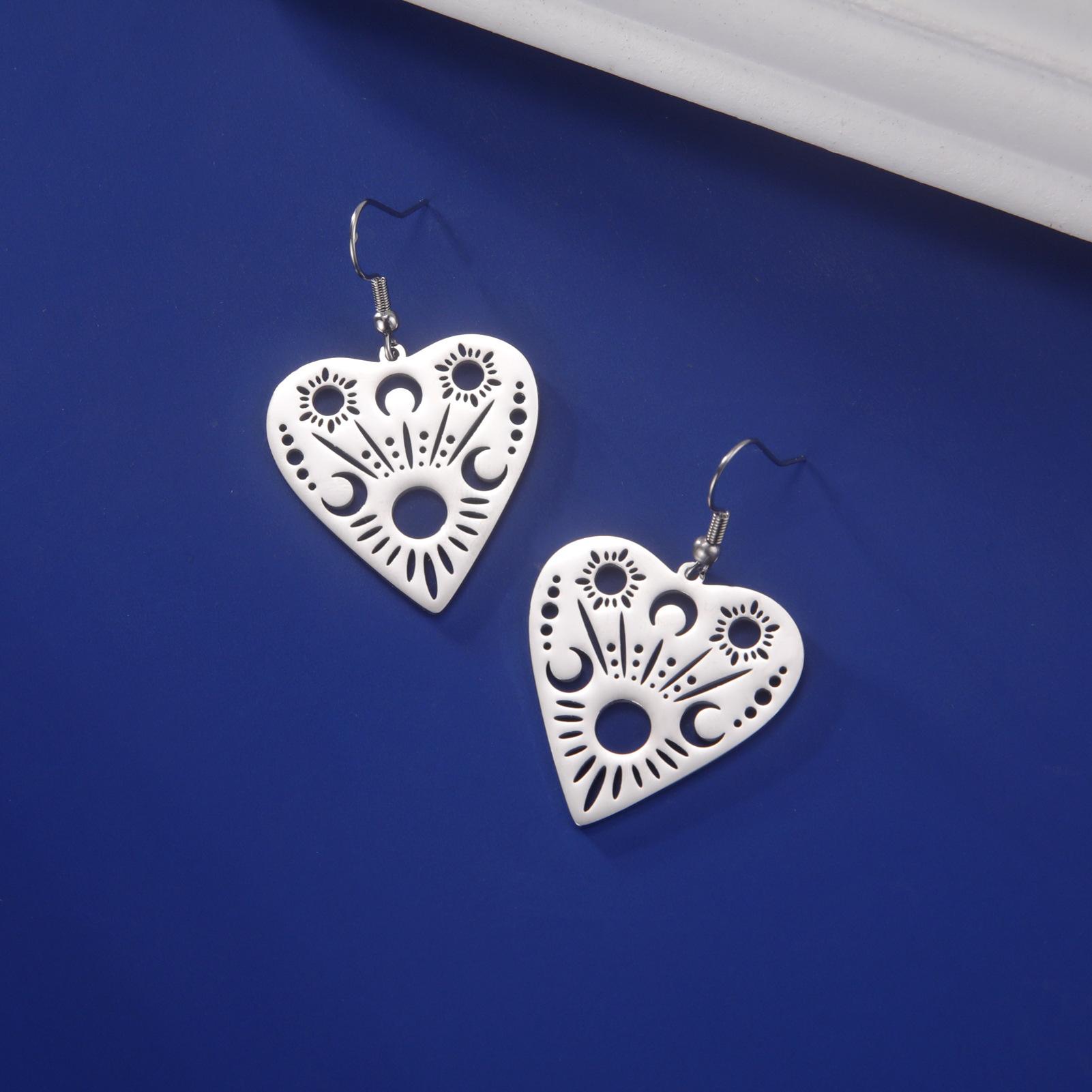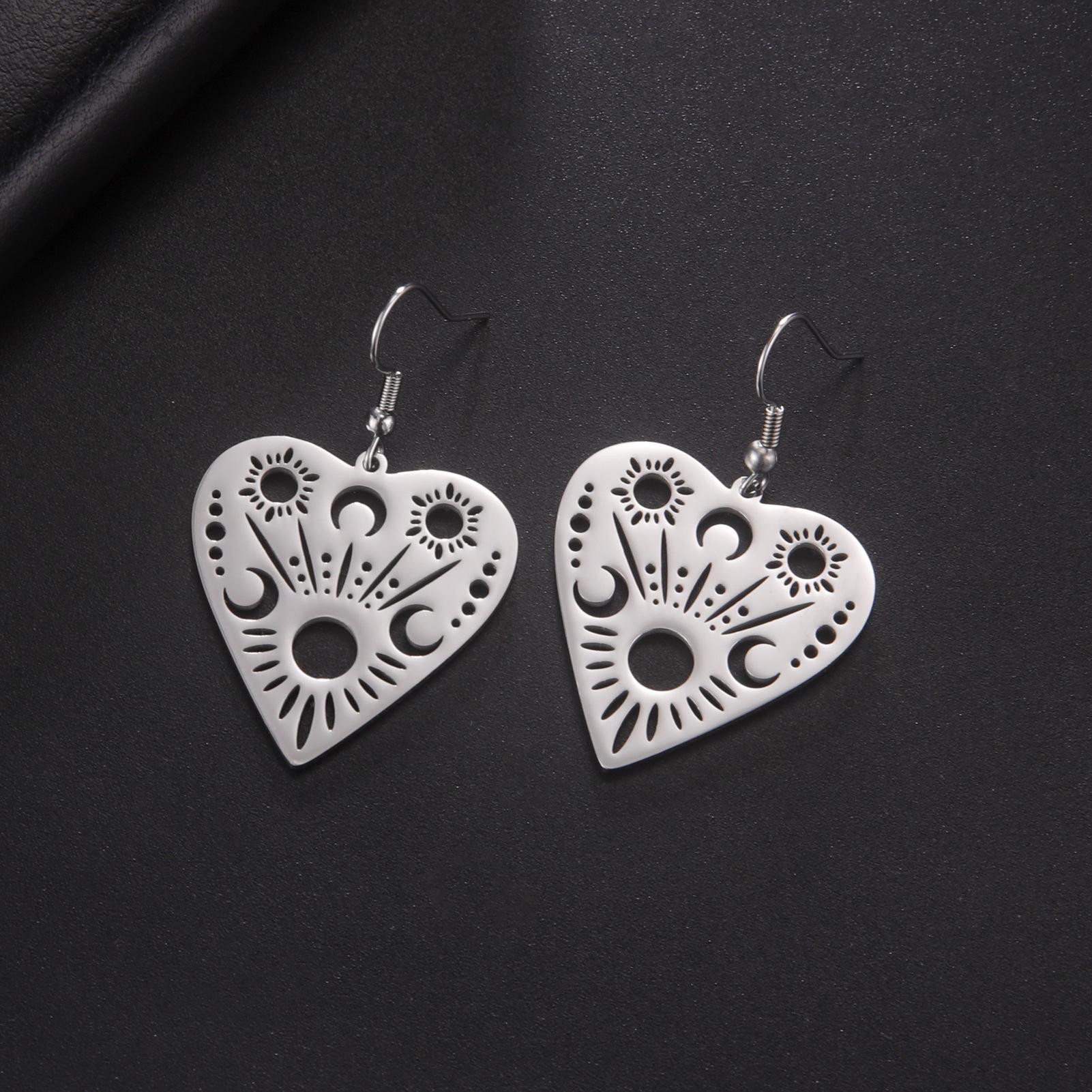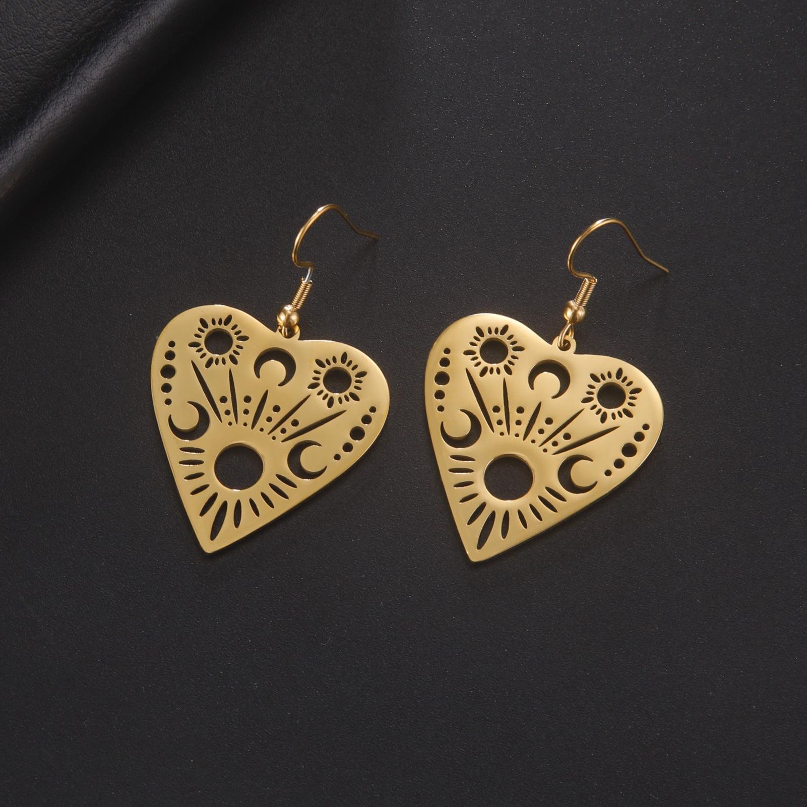 Pendientes colgantes de amor de sol y luna transfronterizos de acero inoxidable, pendientes vintage de luna y estrella hueca, joyería, regalo para pareja