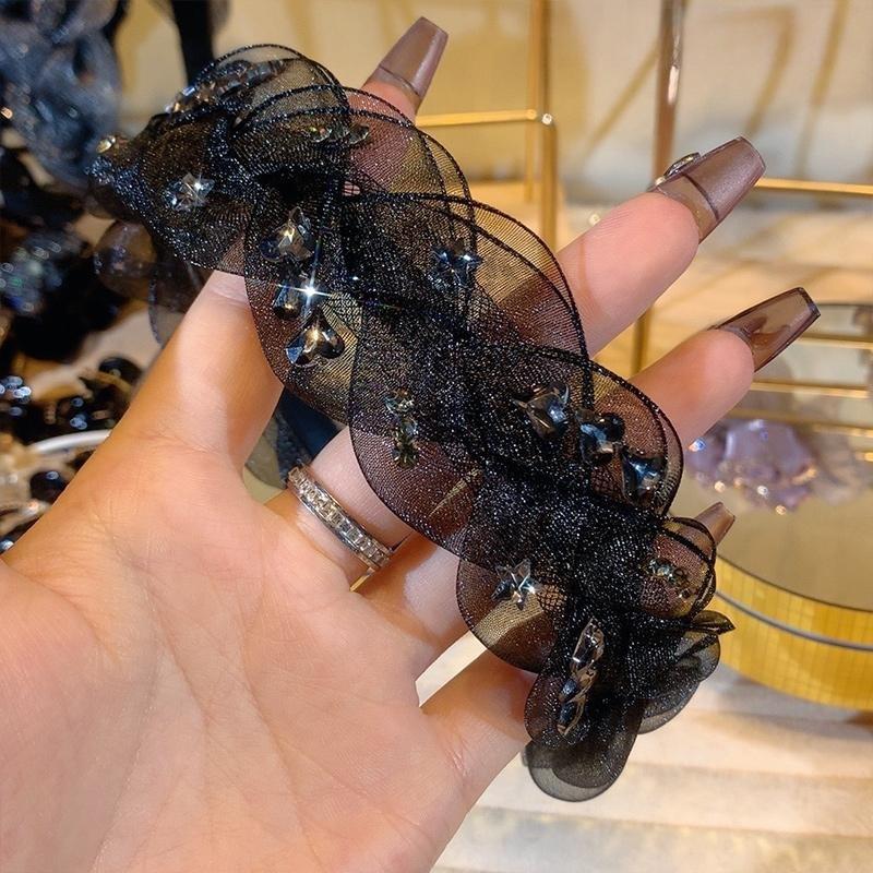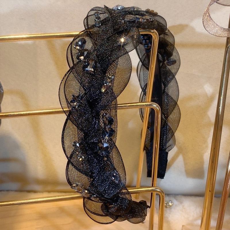 1# Mesh Rhinestone Twist Hair Hoop-Black