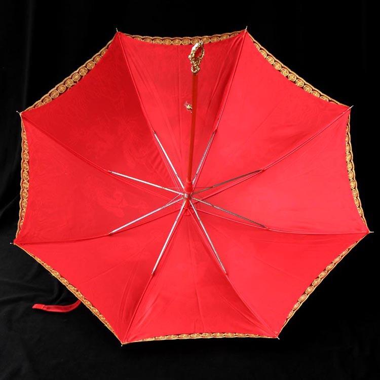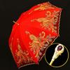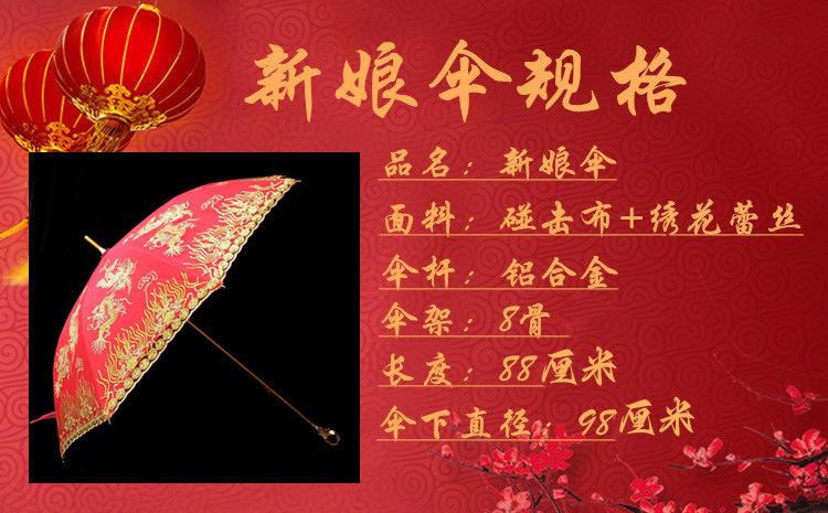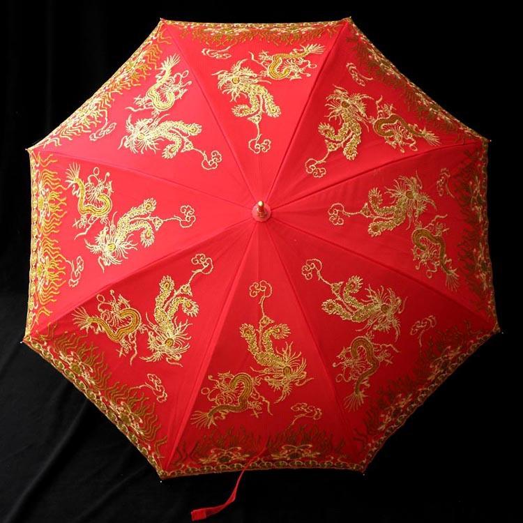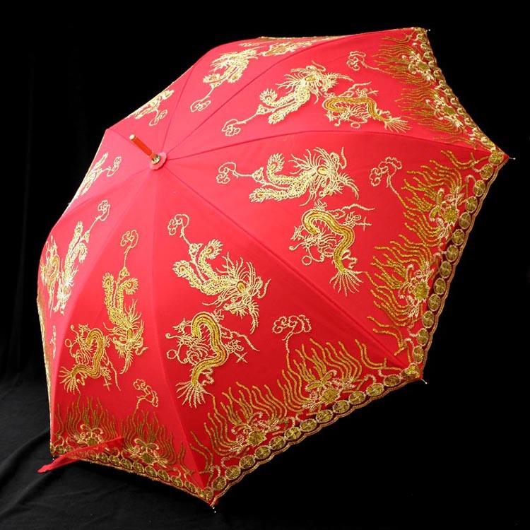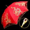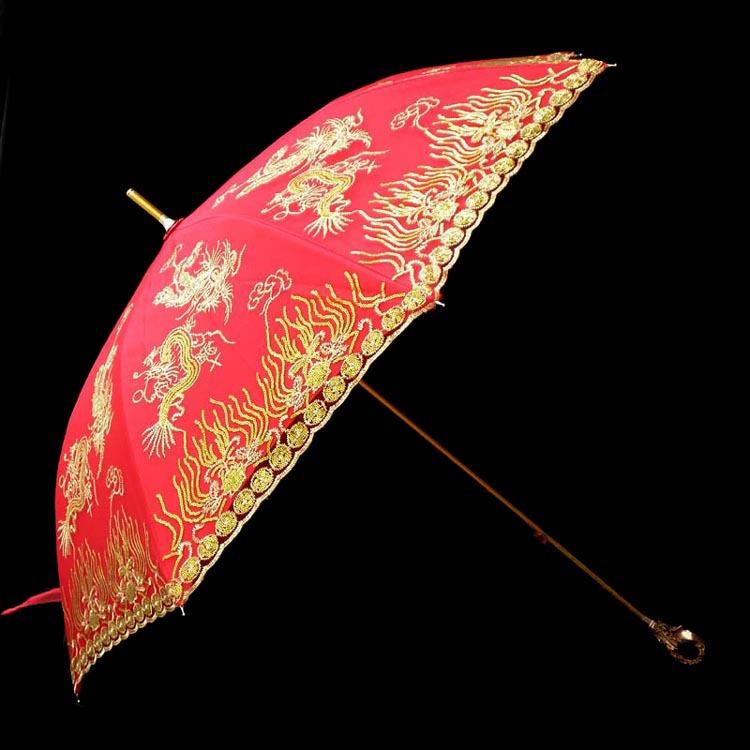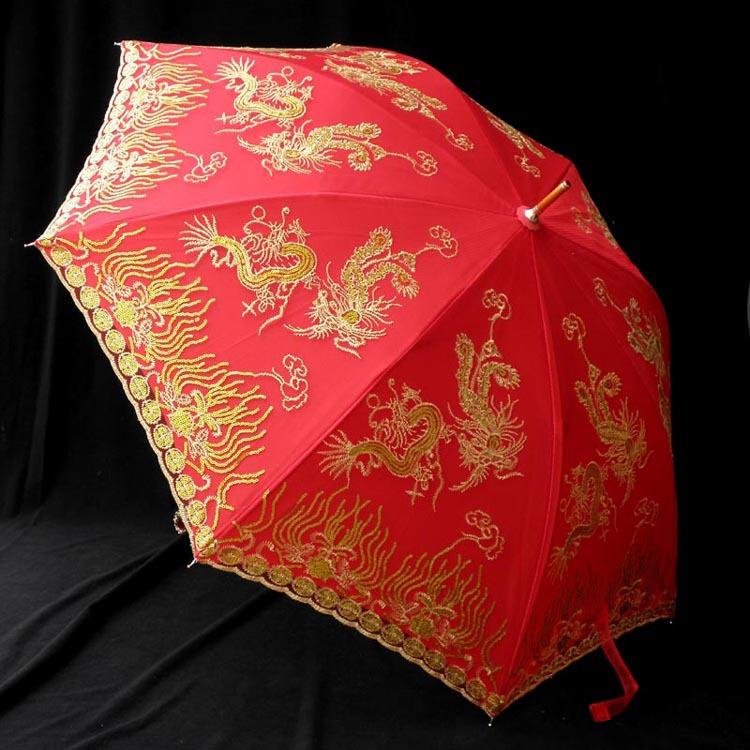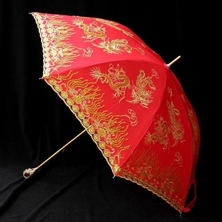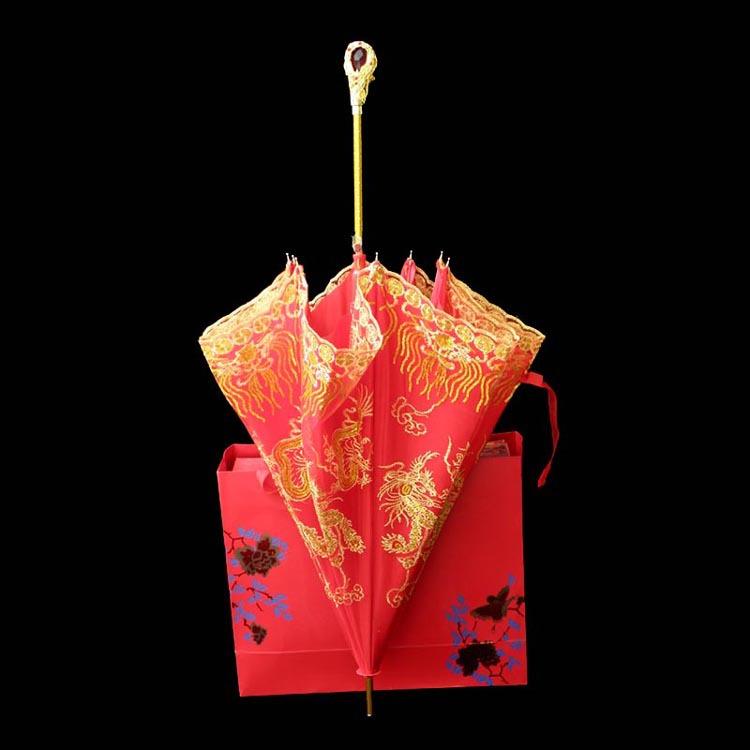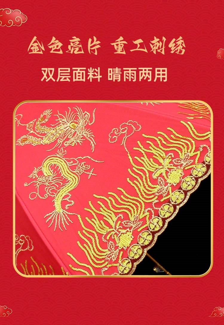 Paraguas rojo, paraguas de novia para boda, boda, boda china, estilo antiguo, paraguas de boda de mango largo, paraguas de boda de doble capa con bordado de dragón y fénix.