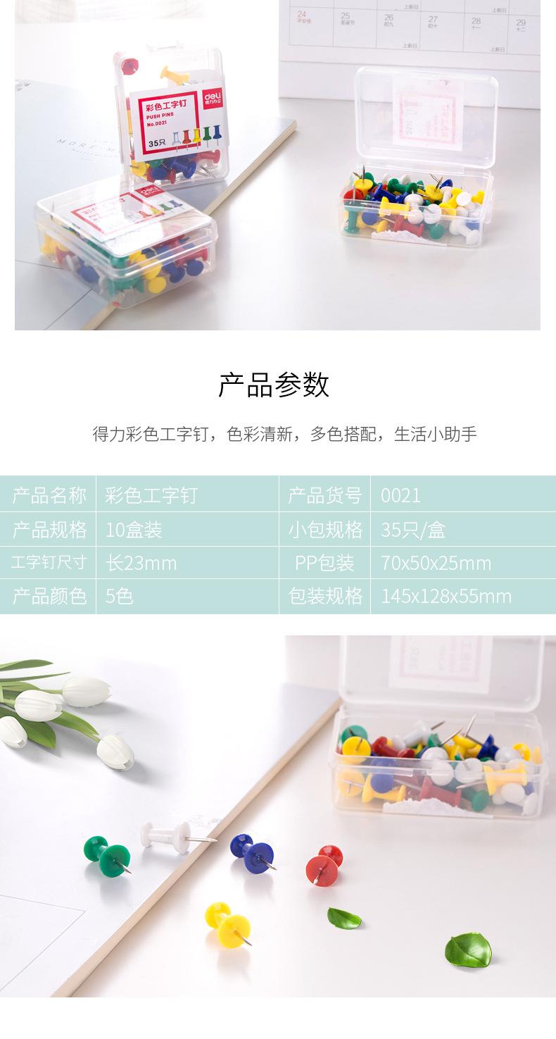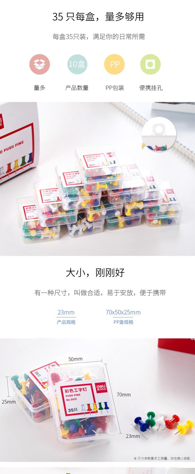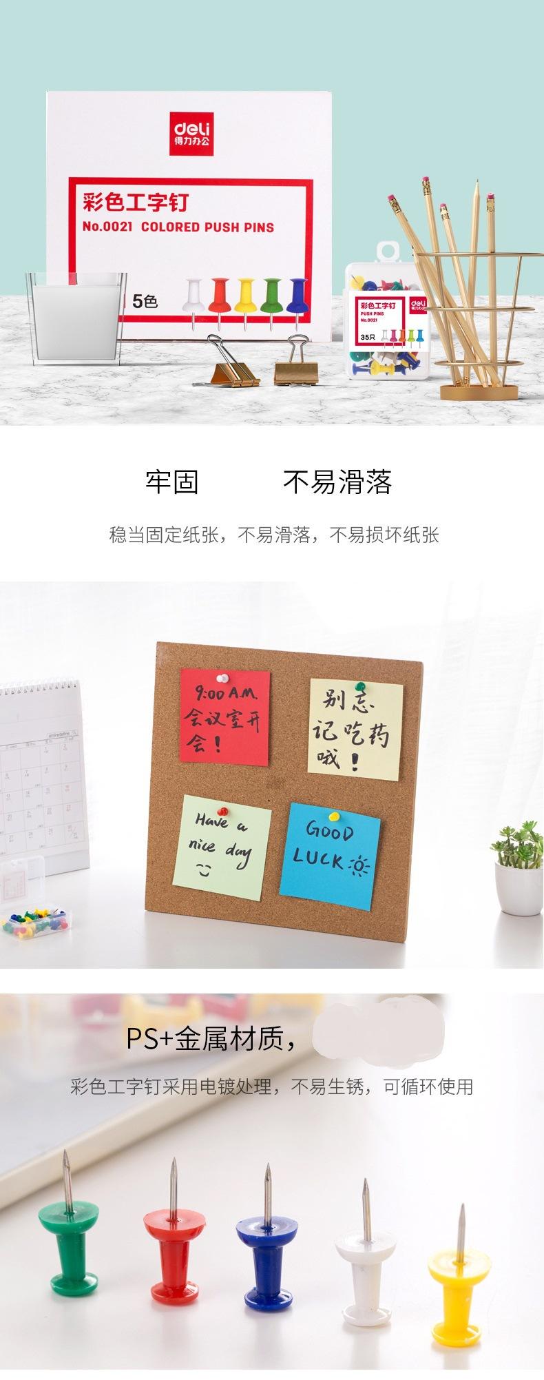 Deli 0021 alfileres de colores en forma de I, tachuelas, papelería para aprendizaje y suministros de oficina 35 piezas/caja al por mayor