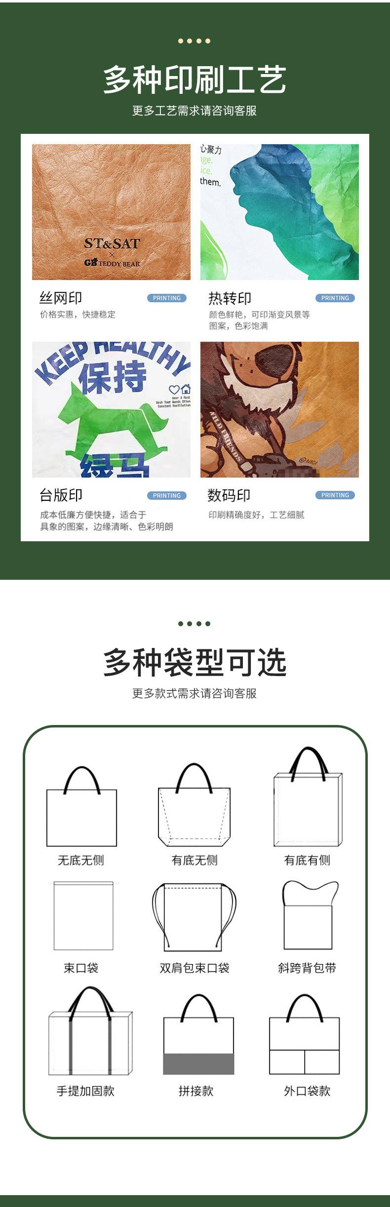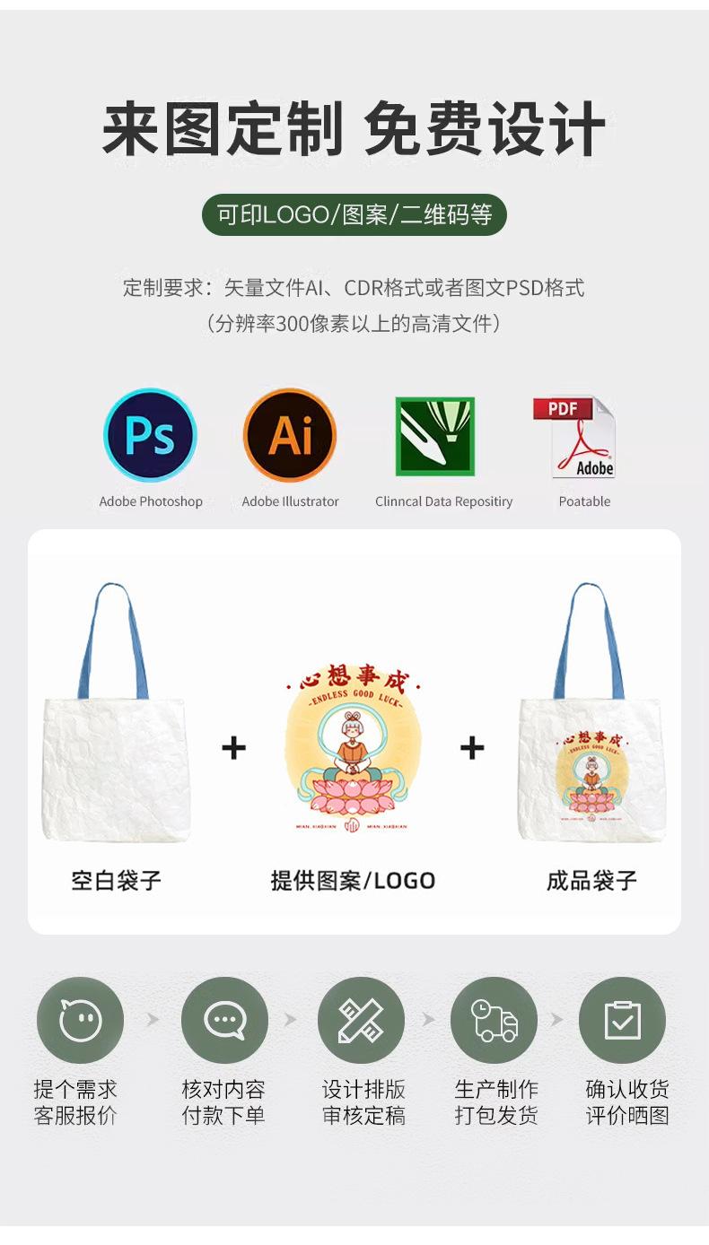 Bolsa de Papel Dupont Lavable Bolsa Tote de Papel Kraft Bolsa de Compras Embalaje Bolsa de Papel Dupont Logo Personalizado Bolsa de Papel para Boda