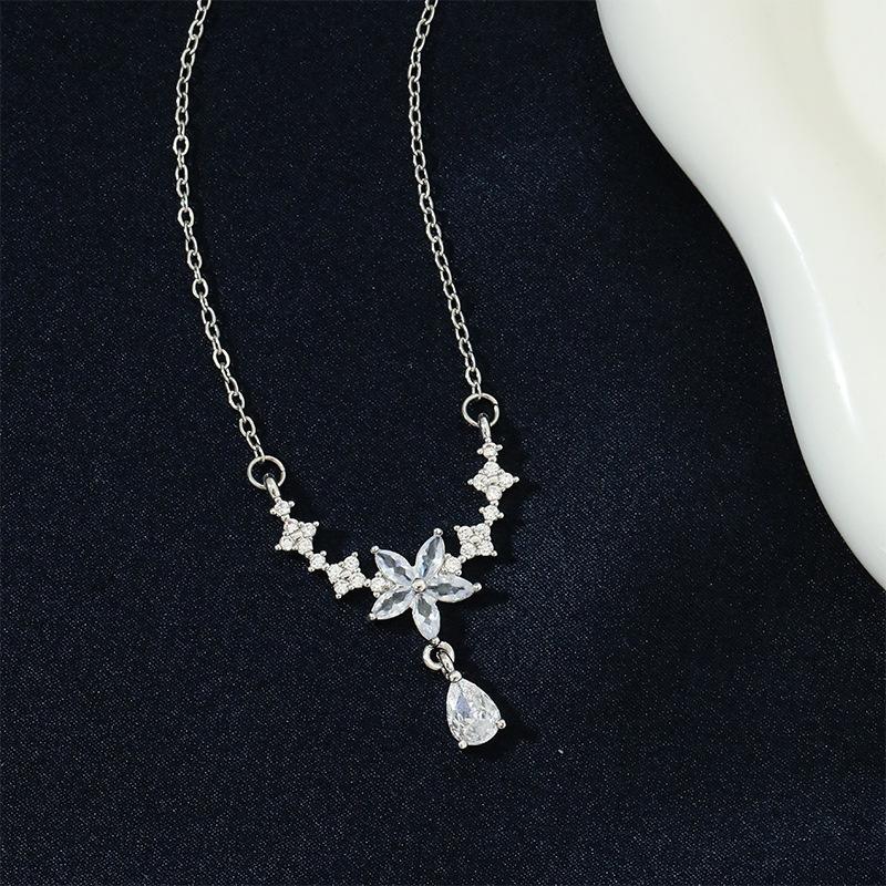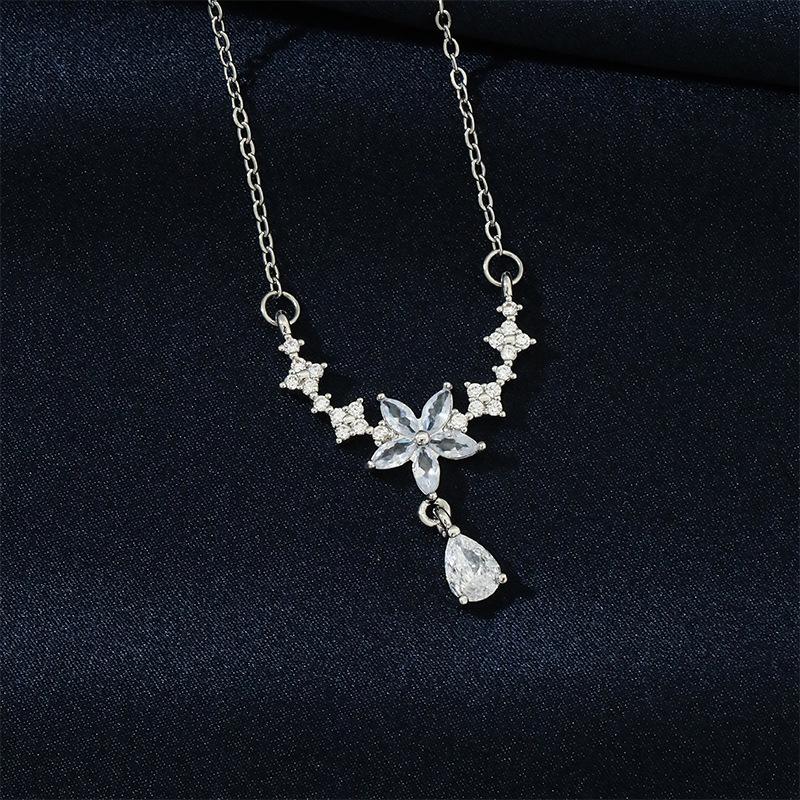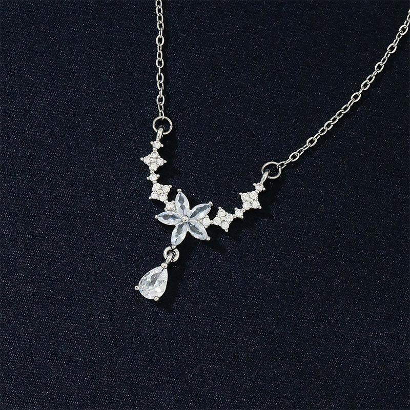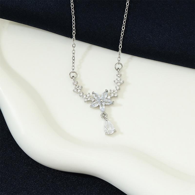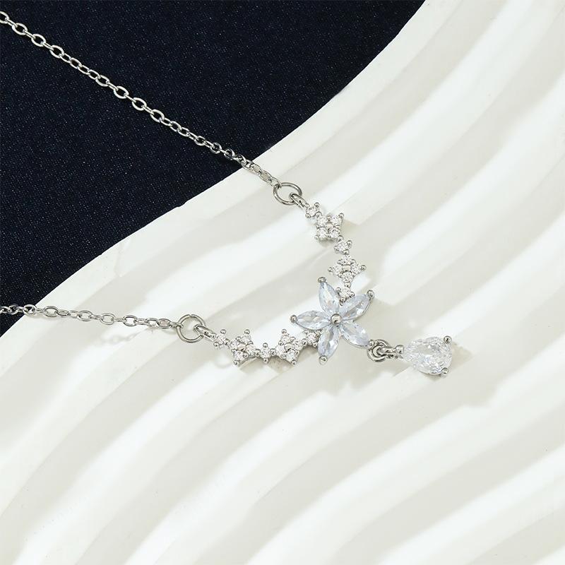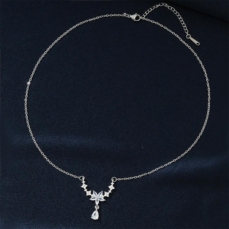 Collar con borlas de flores, joyería femenina, diseño de nicho, de alta calidad, ligero, de lujo, de moda, simple, gota de agua, cadena de clavícula de acero de titanio.
