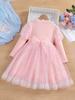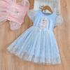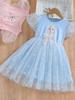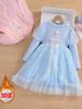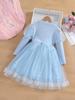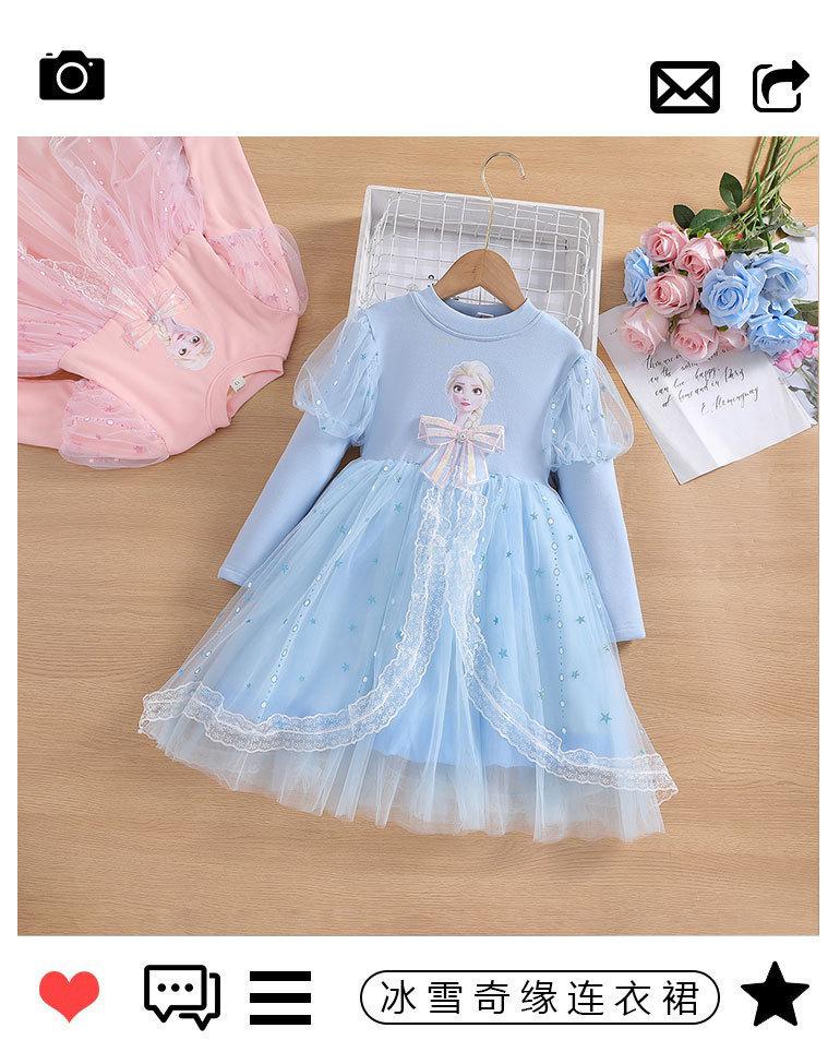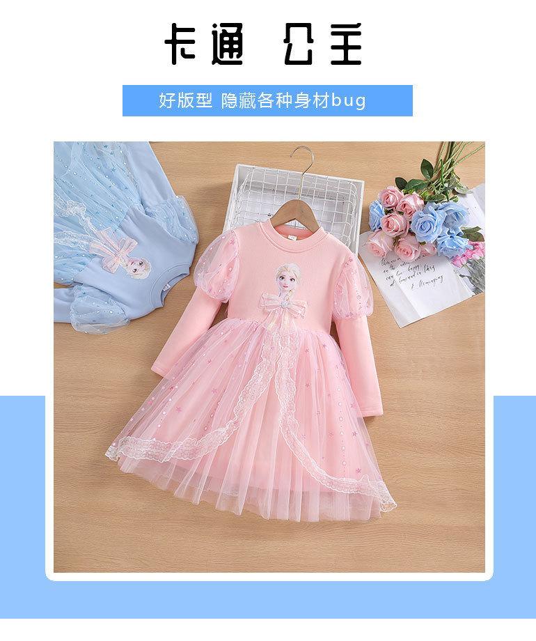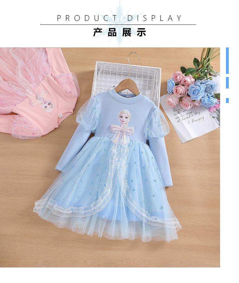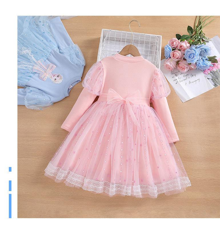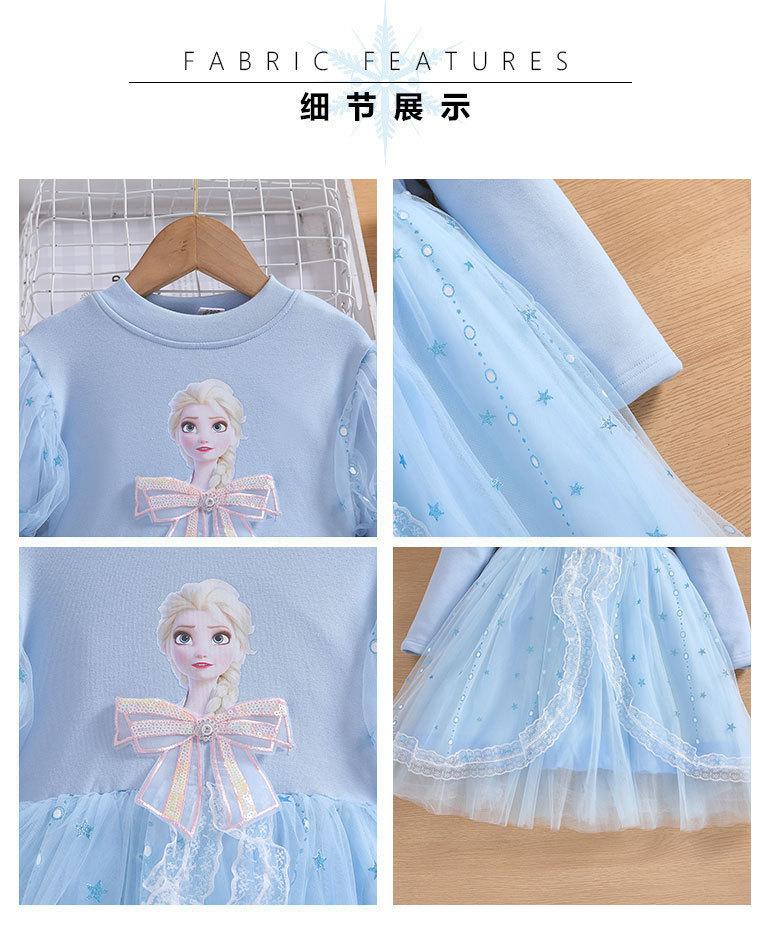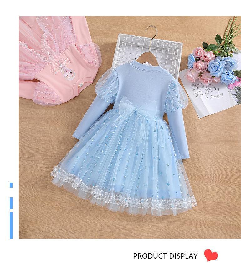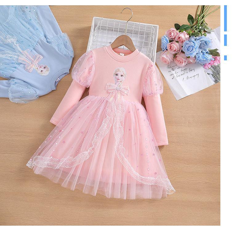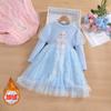 Vestido Nuevo Otoño 2025 para Niñas Vestido de Princesa Elsa Manga Larga Frozen Hada Malla Falda Abullonada