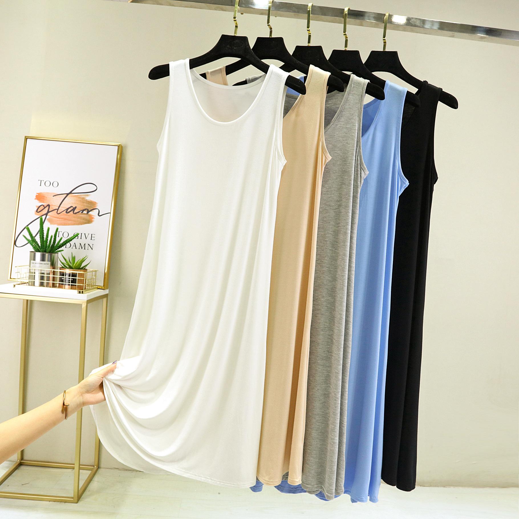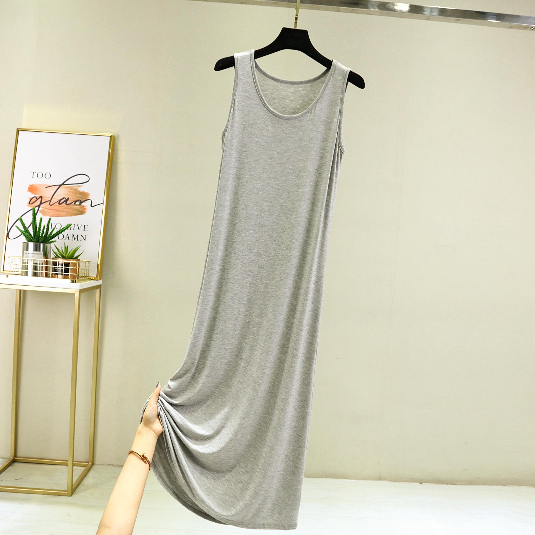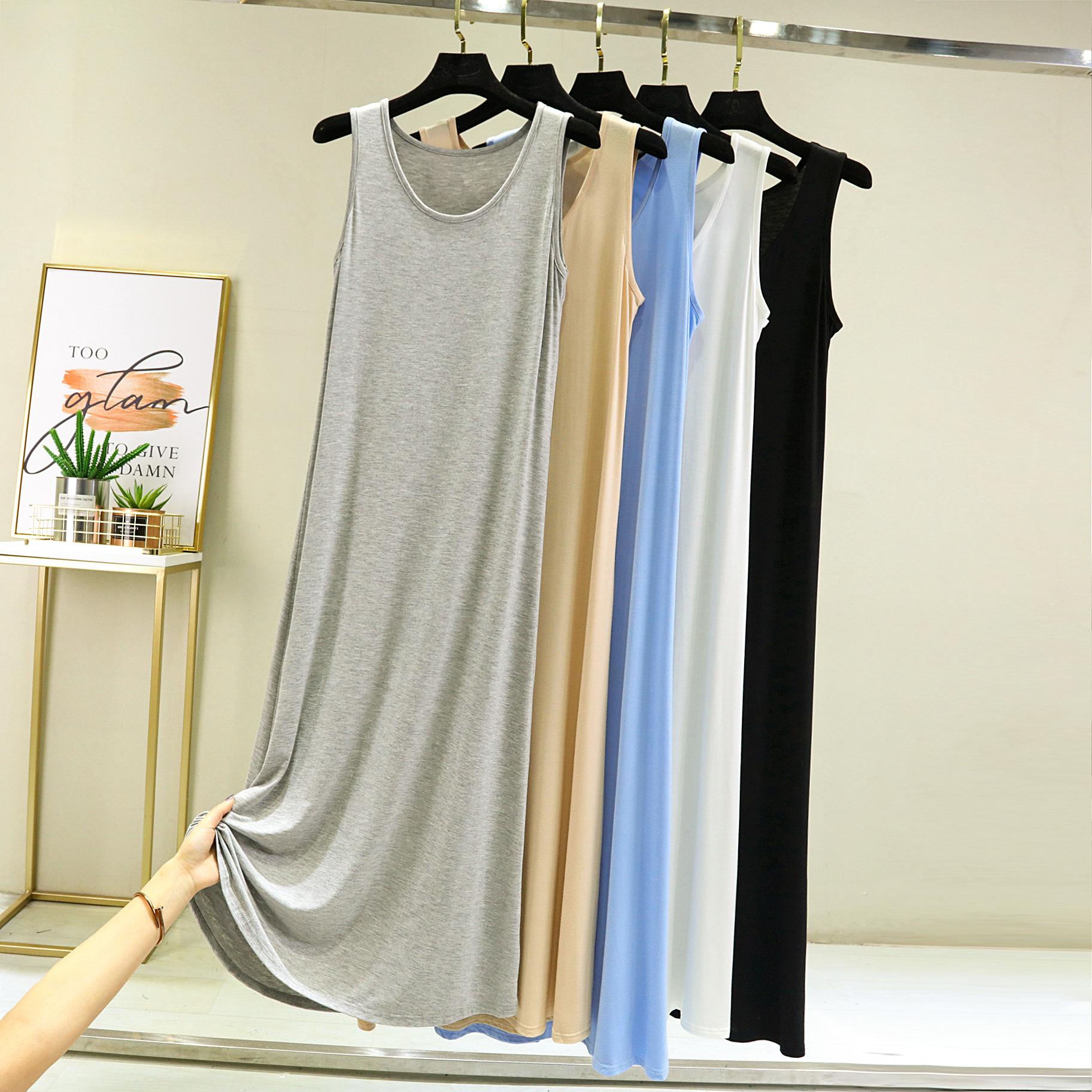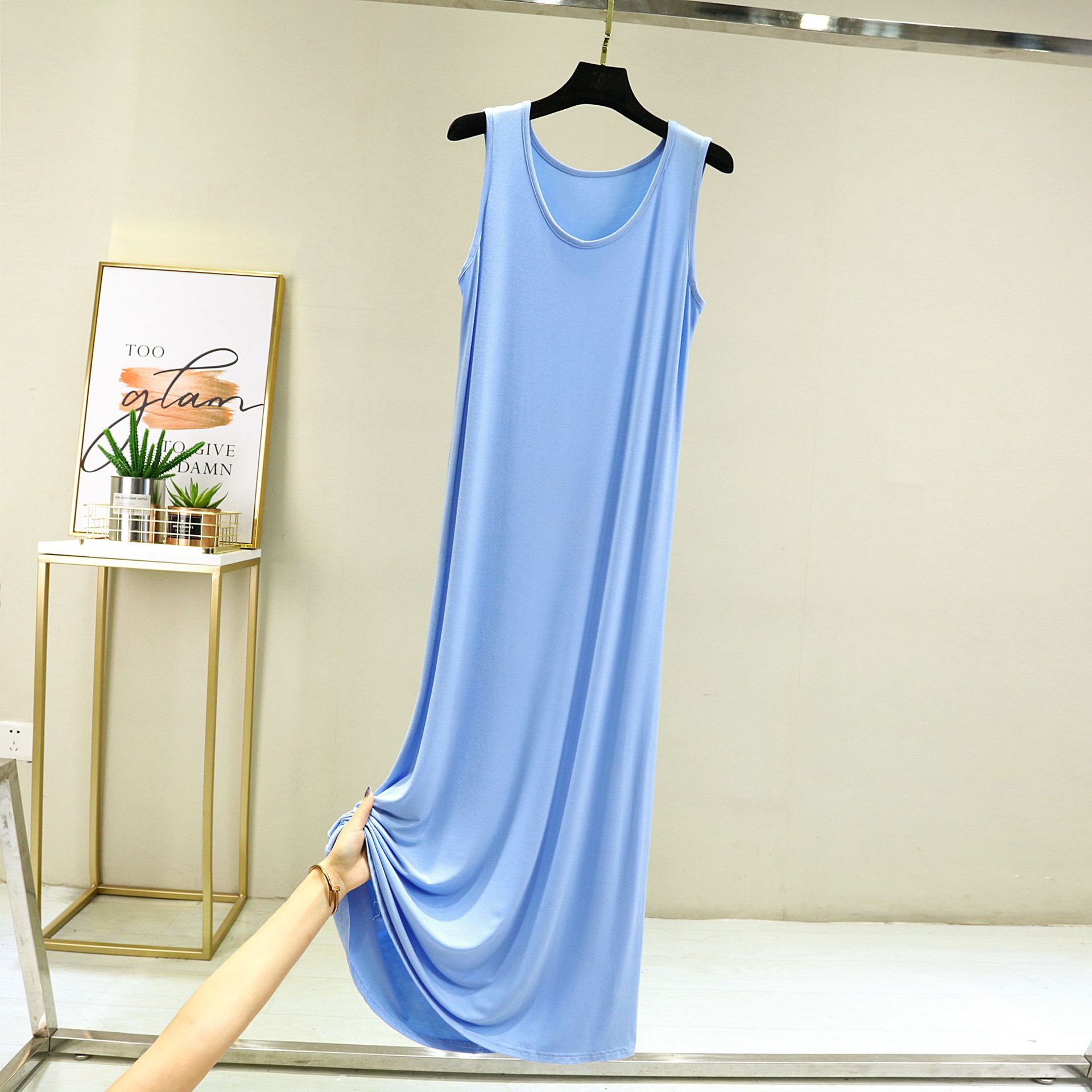 Falda camisola modal de verano, cuello redondo, sin mangas, falda de tres largos, informal, sencilla, fina, para estar en casa