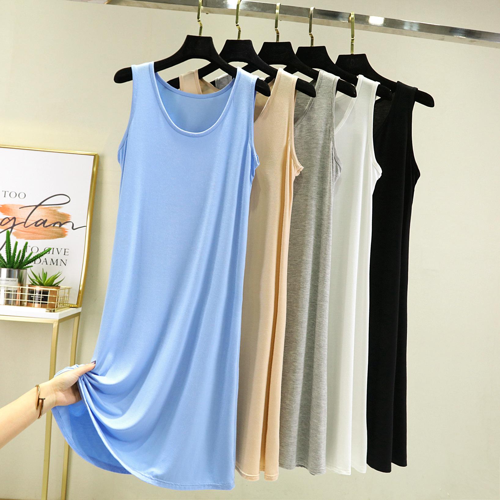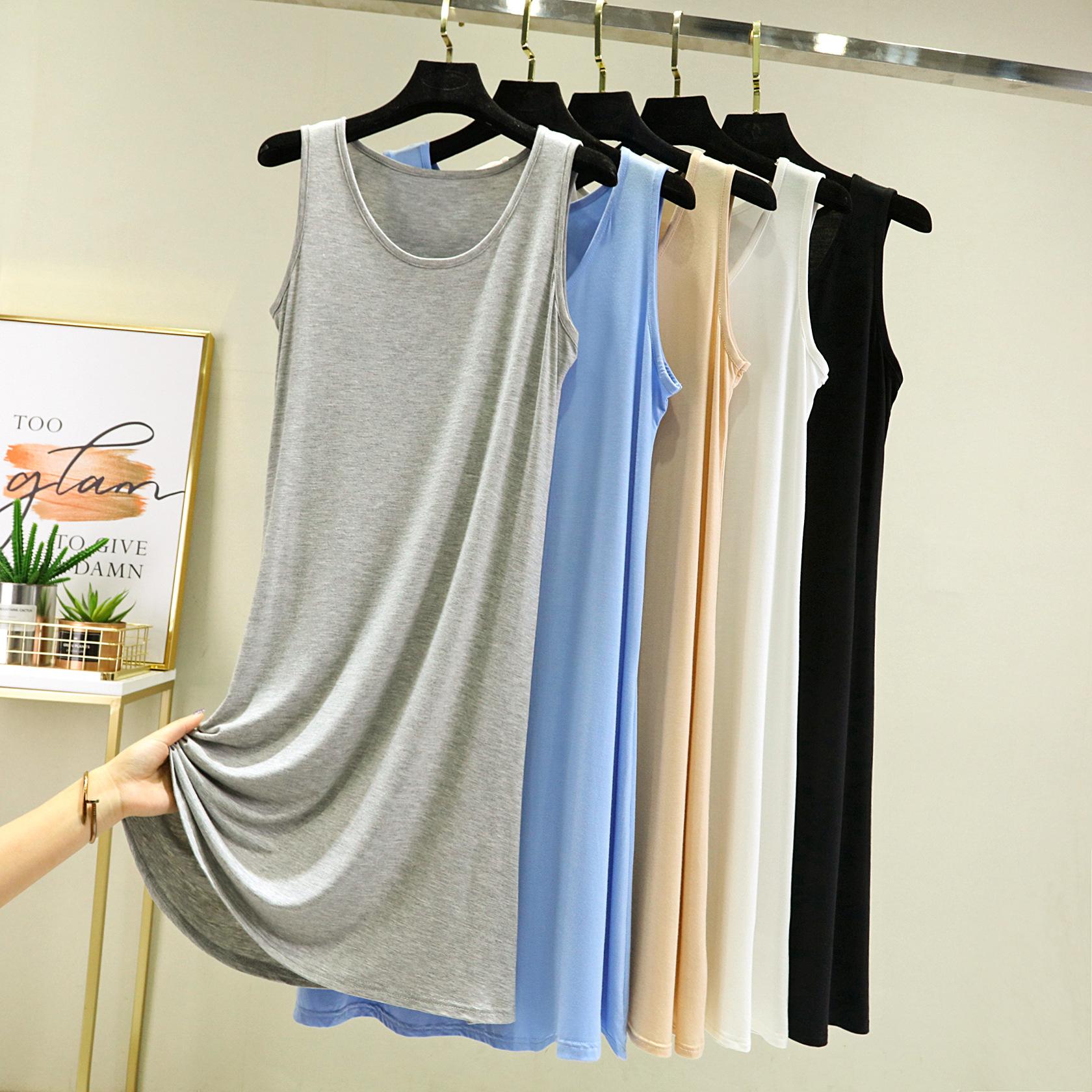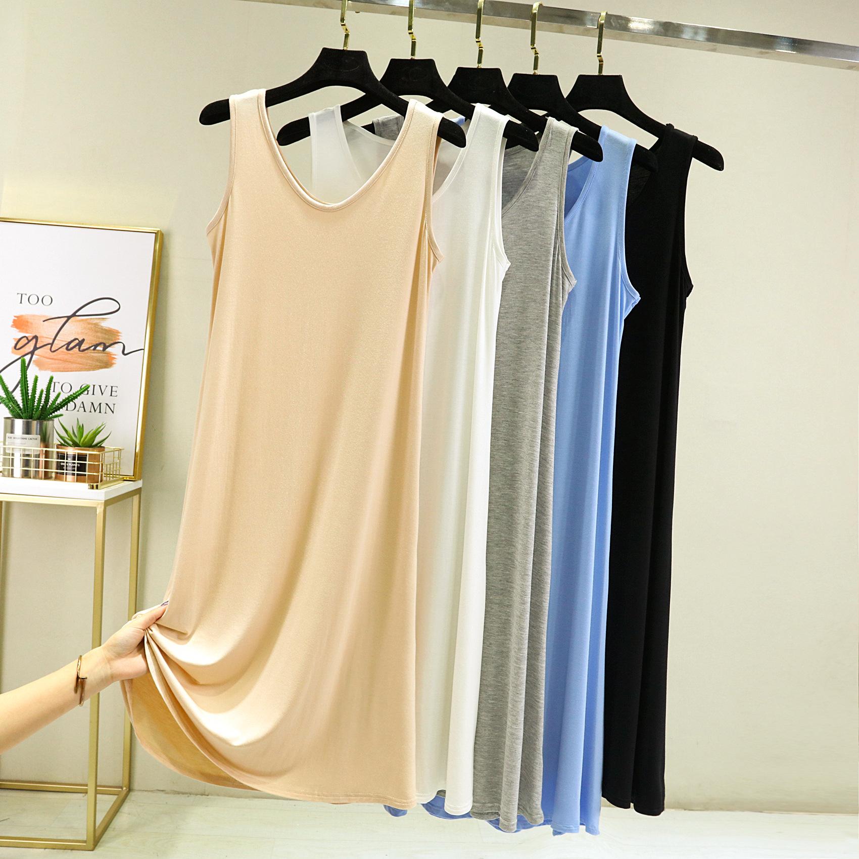 Falda camisola modal de verano, cuello redondo, sin mangas, falda de tres largos, informal, sencilla, fina, para estar en casa