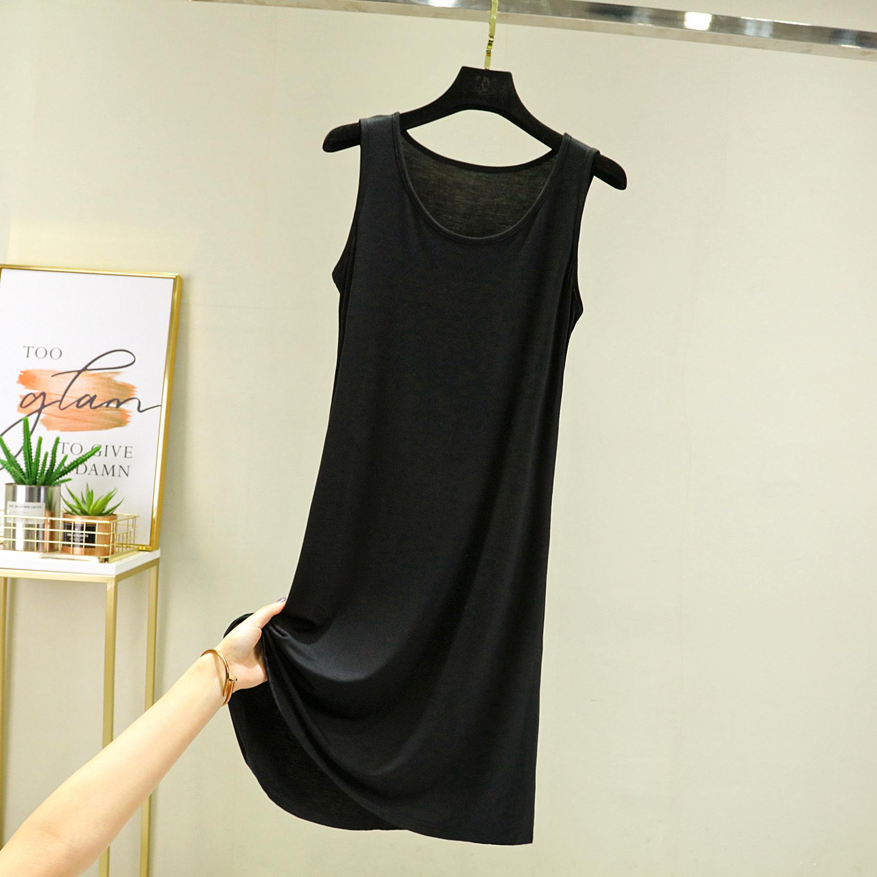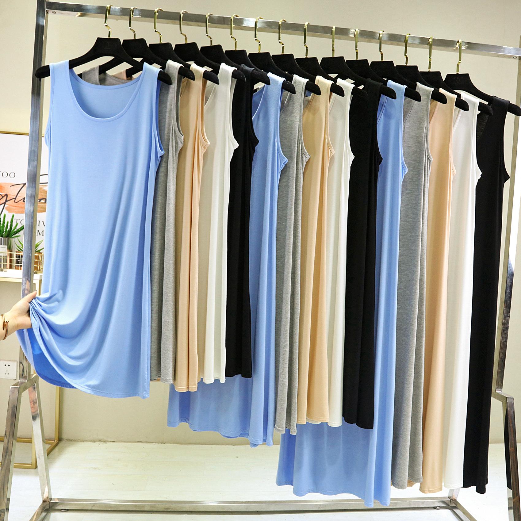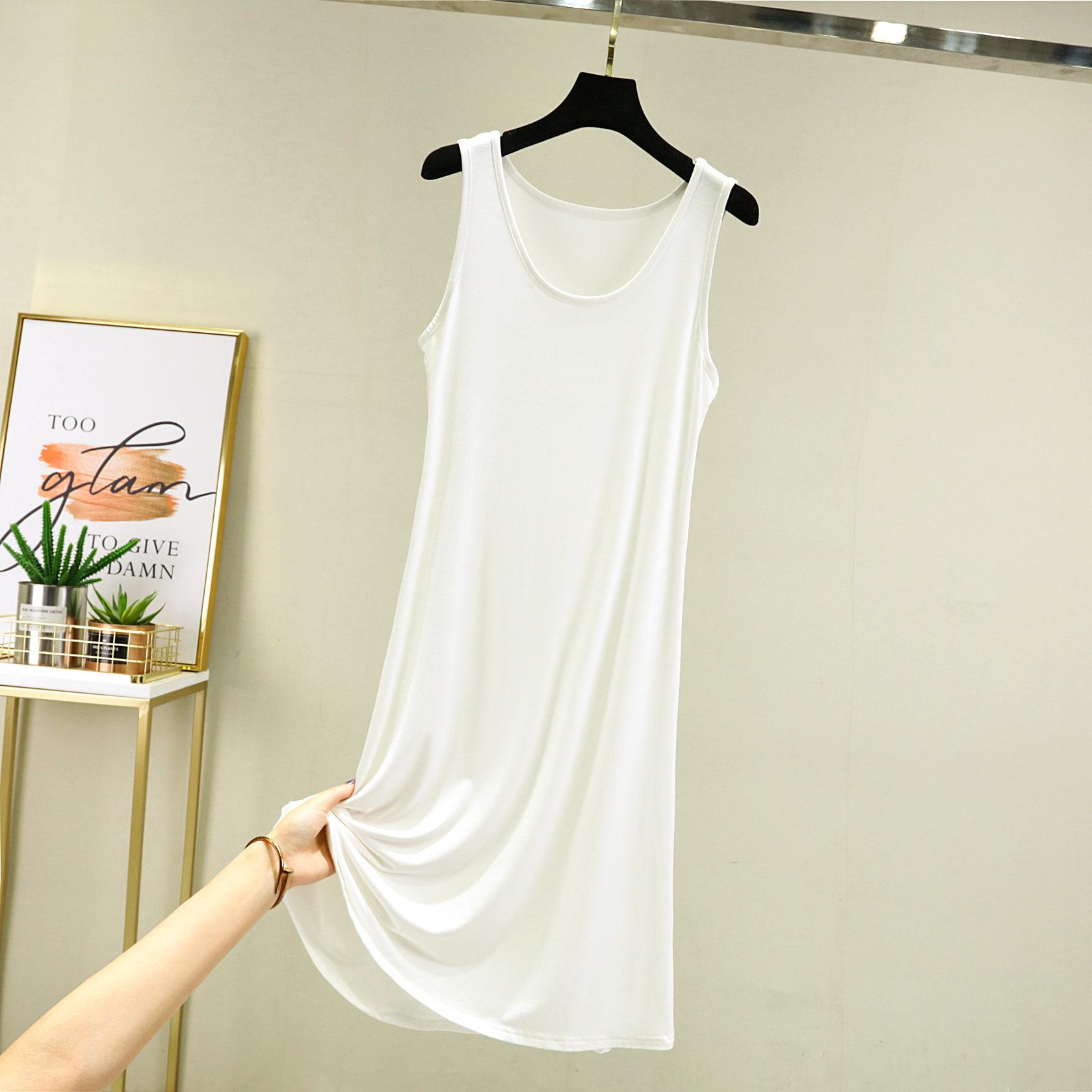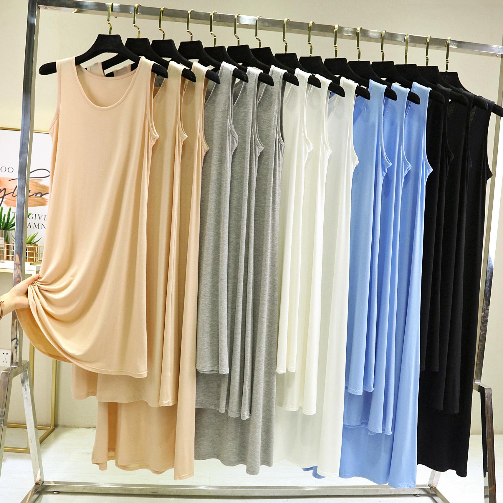 Falda camisola modal de verano, cuello redondo, sin mangas, falda de tres largos, informal, sencilla, fina, para estar en casa