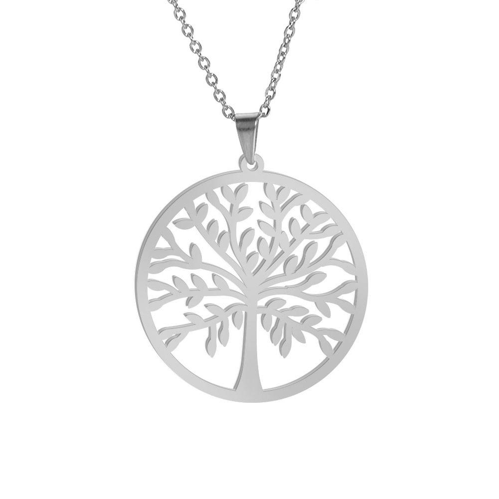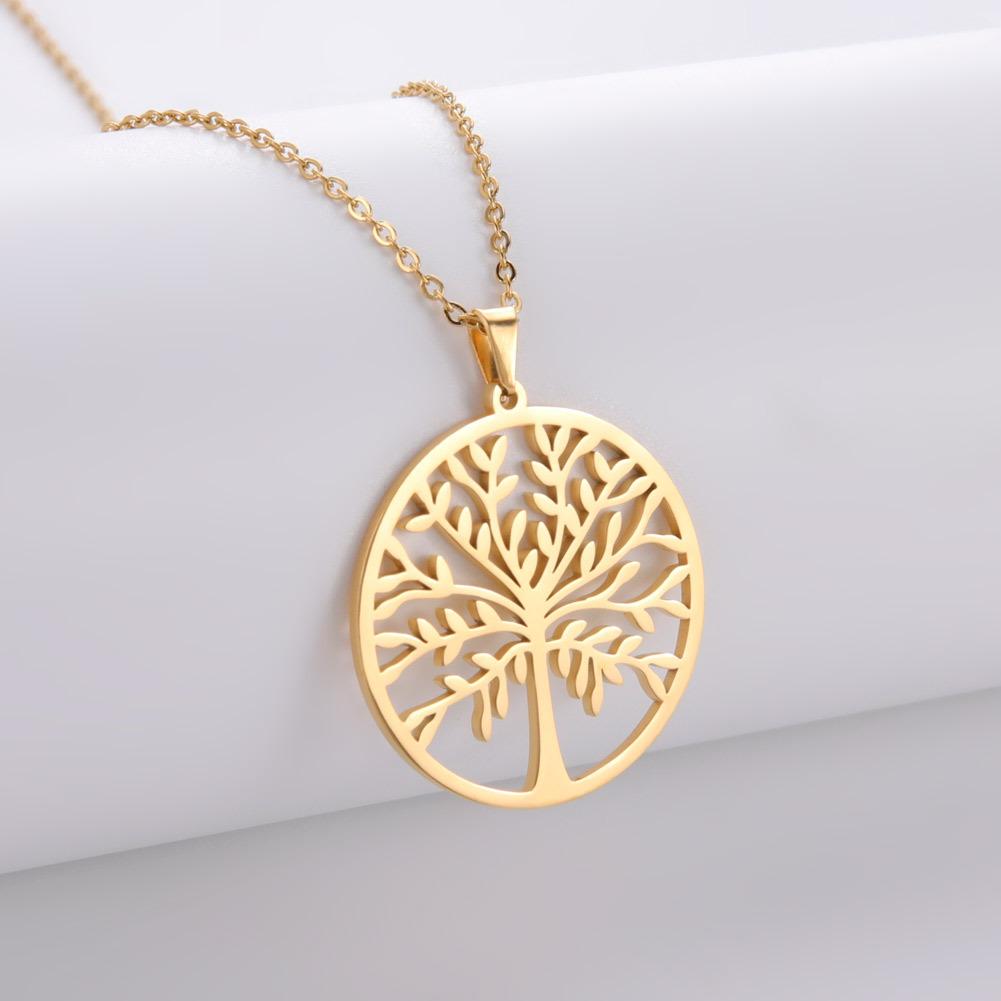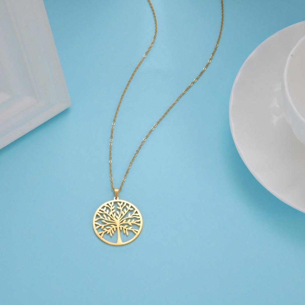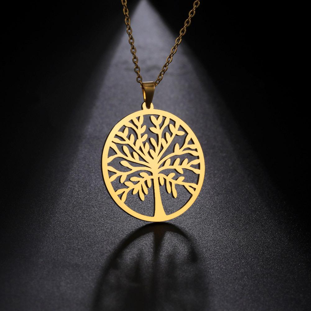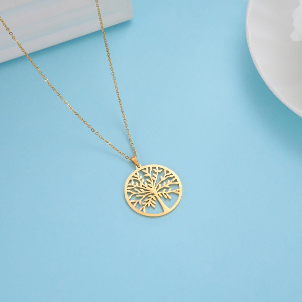Europa y Estados Unidos Transfronterizo Caliente Diseño Hueco Colgante Árbol del Mundo Collar para Hombre y Mujer Moda Comodín Collar de Acero Inoxidable