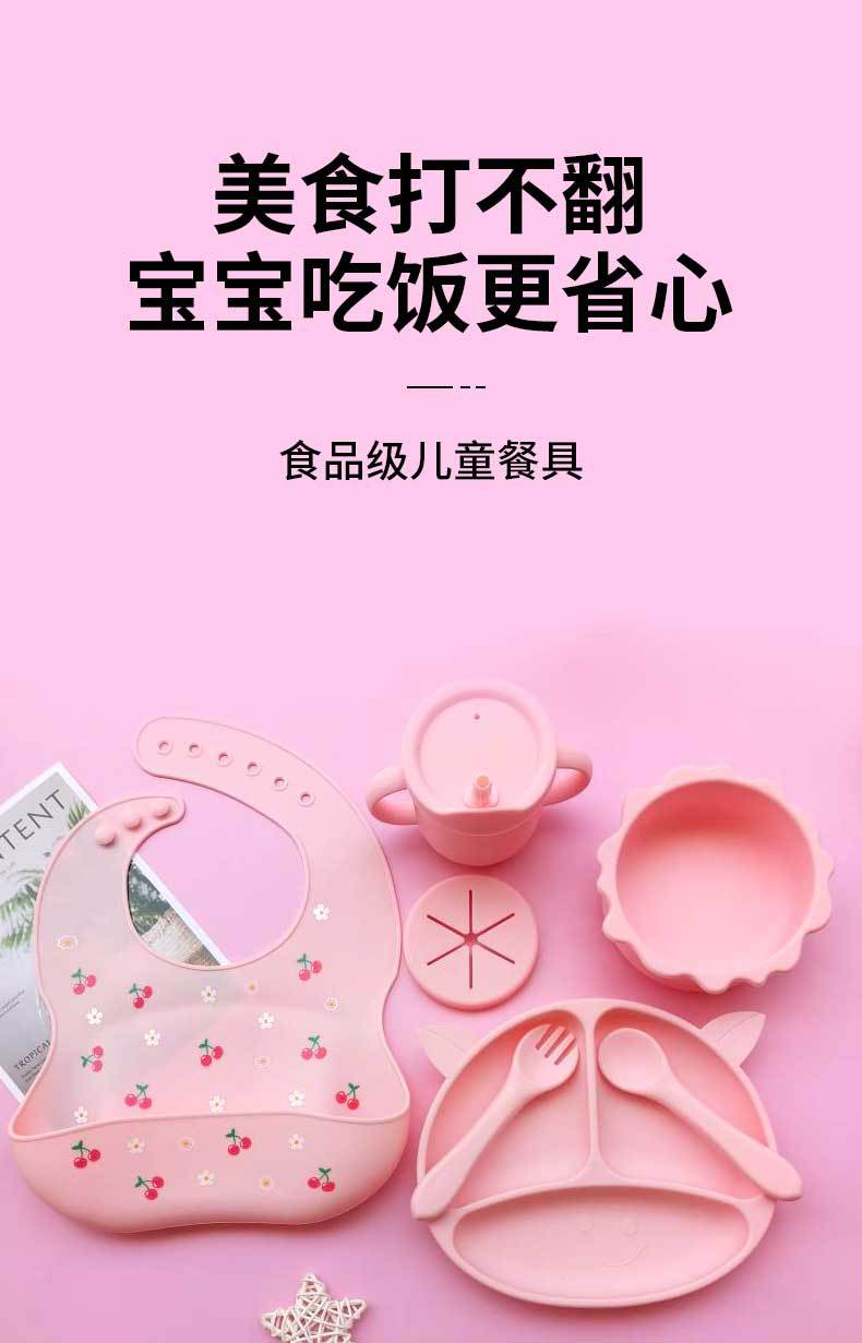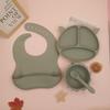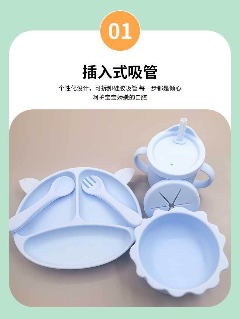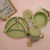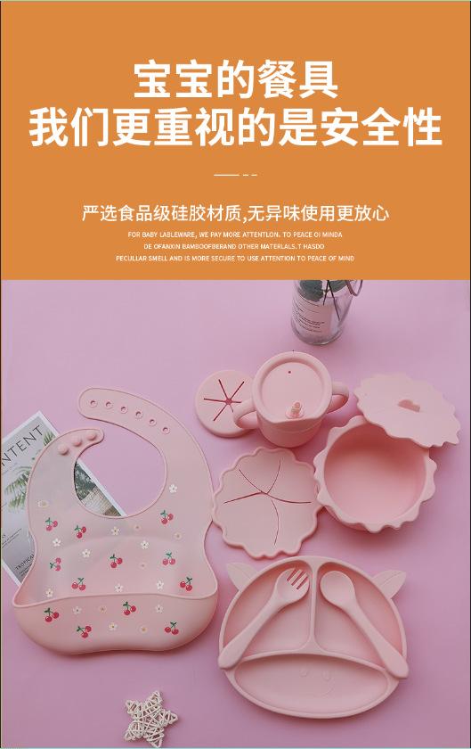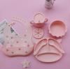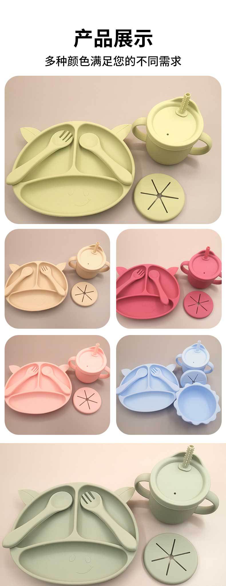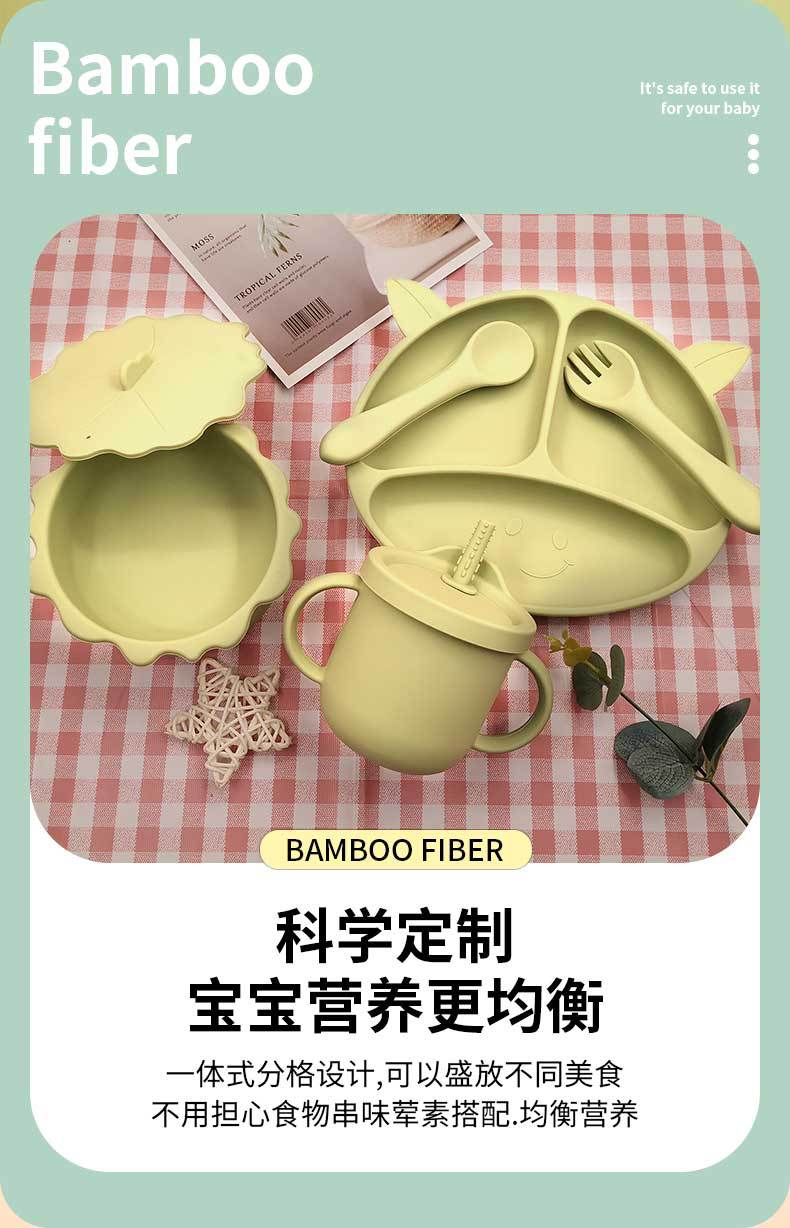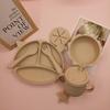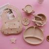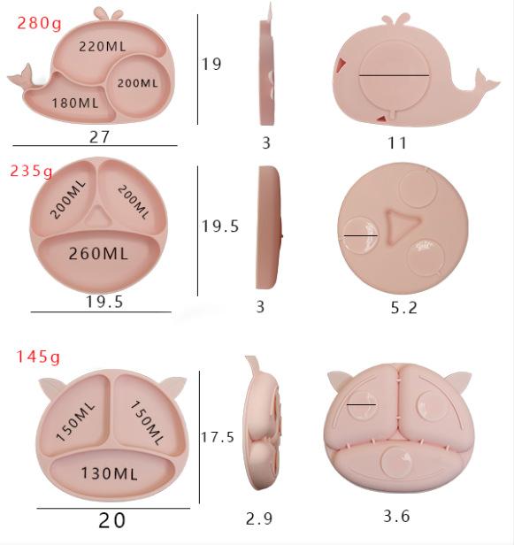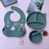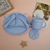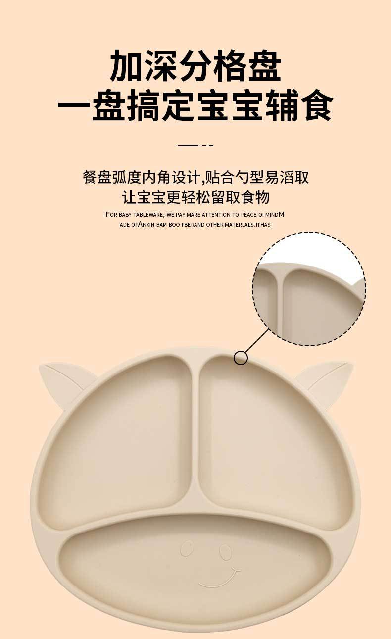 Juego de platos de silicona para niños con diseño de ciervo transfronterizo, suministros para bebés, tazón para bebé de grado alimenticio con compartimento todo en uno, suplemento alimenticio