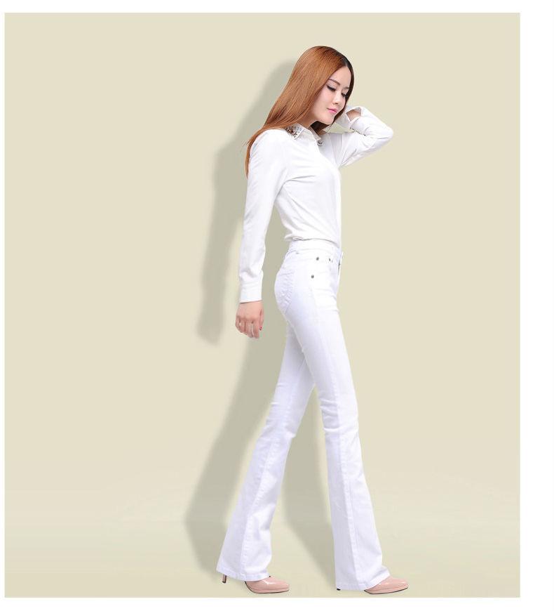 Pantalones vaqueros blancos microblare para mujer, de verano 2024, finos, de cintura alta, elásticos, sueltos, adelgazantes, combinables, pequeños, acampanados.