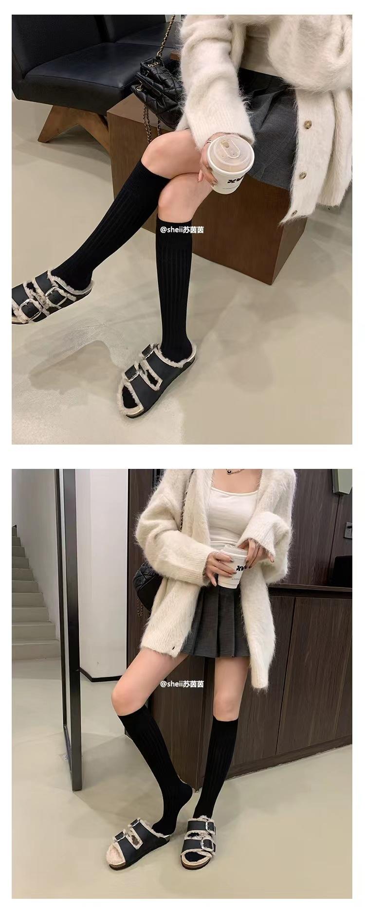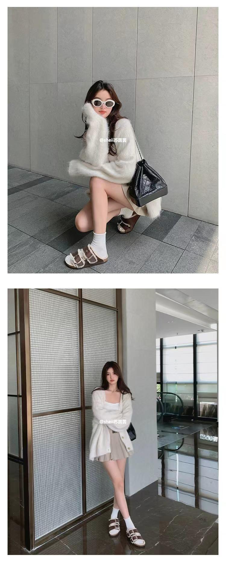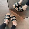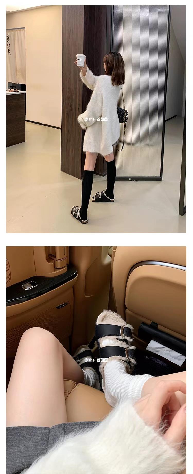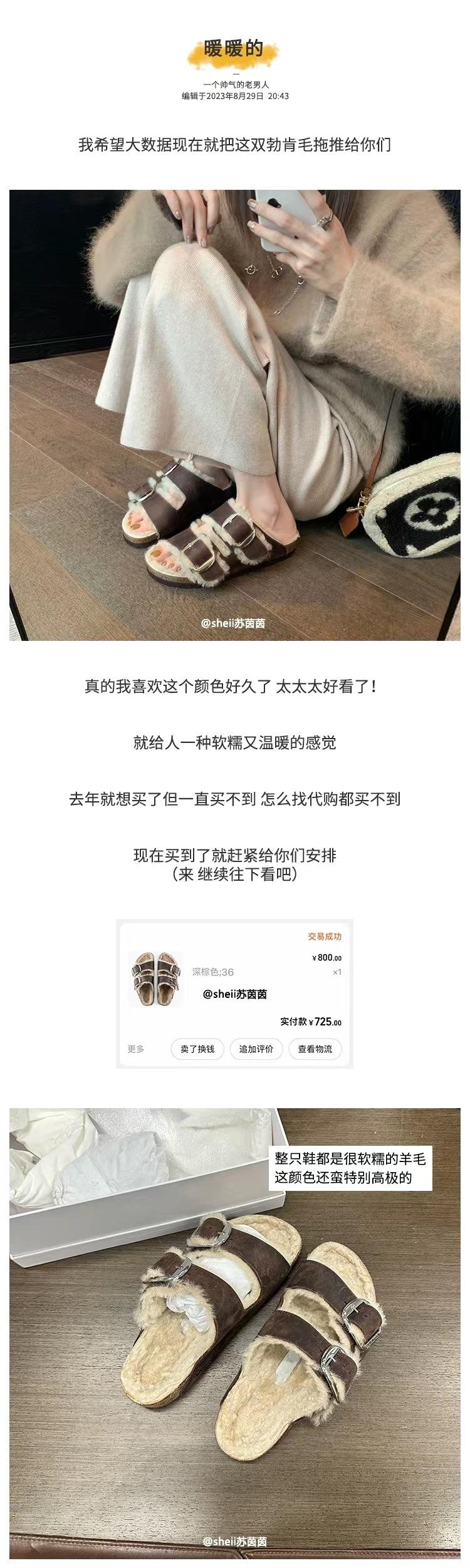 2023 nuevo estilo hebilla cálido otoño grueso lana vintage doble hebilla forro polar suela gruesa Boken pantuflas peludas para mujer para uso exterior