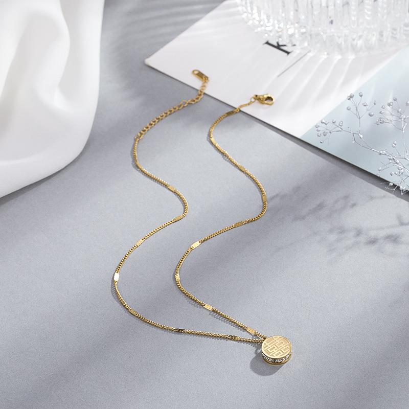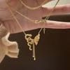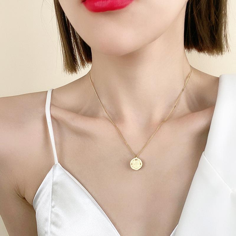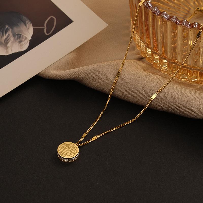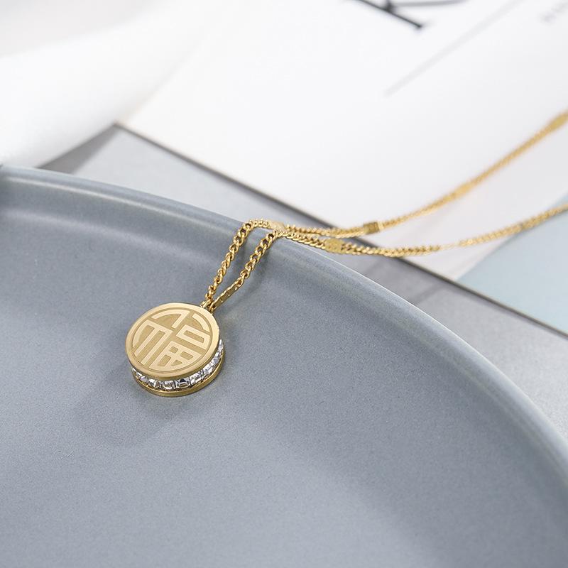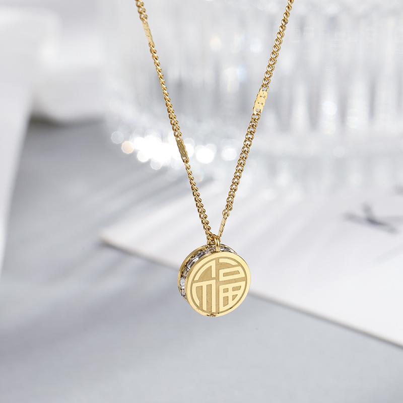 Collar con colgante Fuzi de acero de titanio para mujer, novedad de 2022, joyería de diamantes brillantes, diseño de nicho, cadena de clavícula de doble cara.