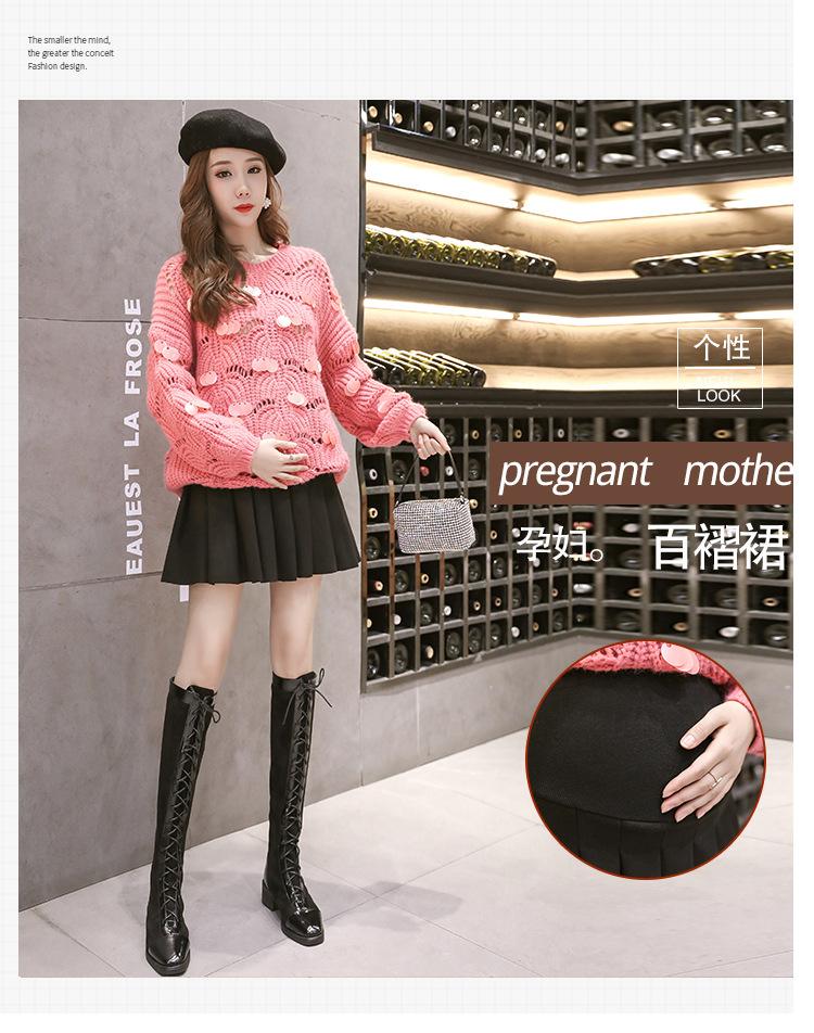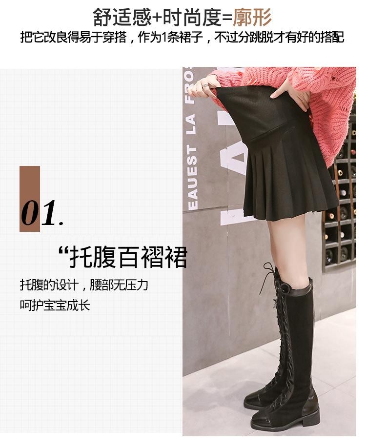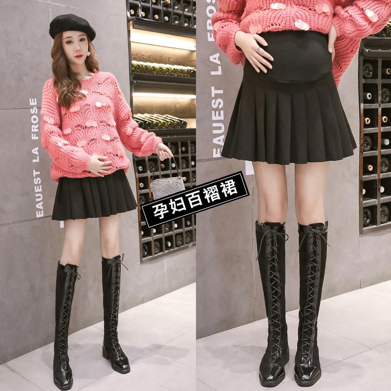 En stock, ropa de maternidad, otoño e invierno, falda plisada de lana de color sólido, falda para embarazadas, falda para embarazadas.